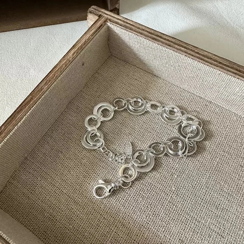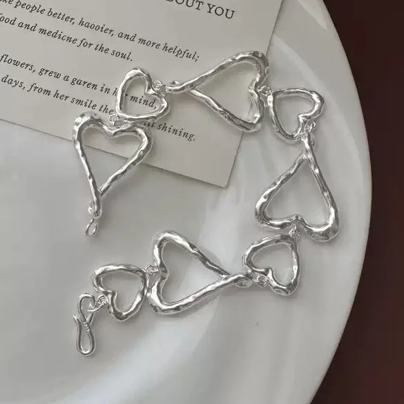 Silver Heart Link 925 Sterling Silver Adjustable Bracelets