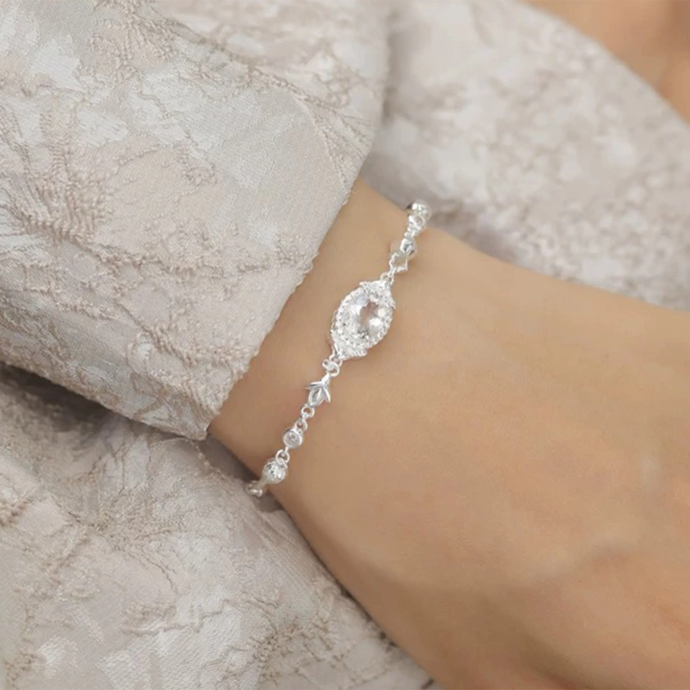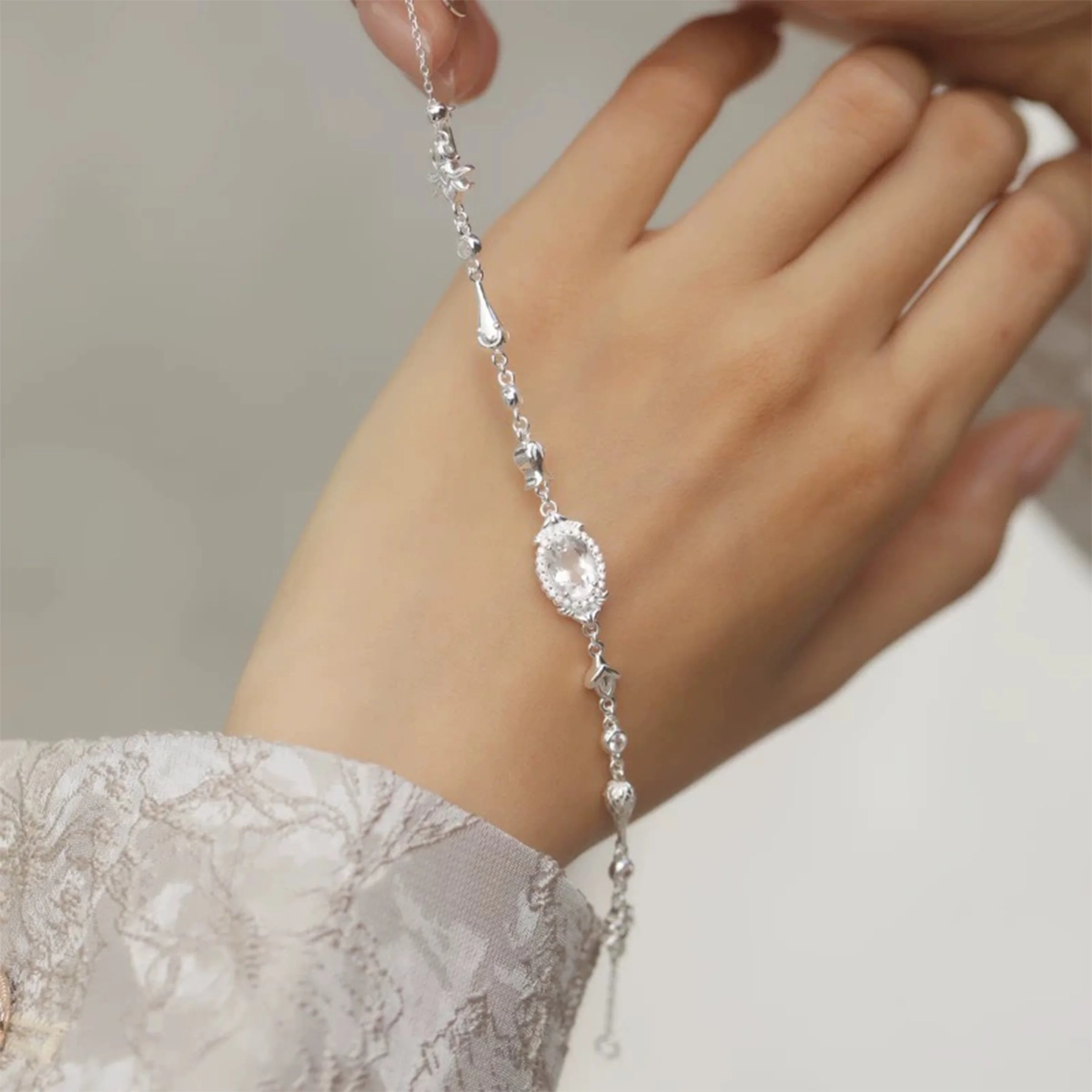 Aqua Heart Chain 925 Sterling Silver Adjustable Bracelets