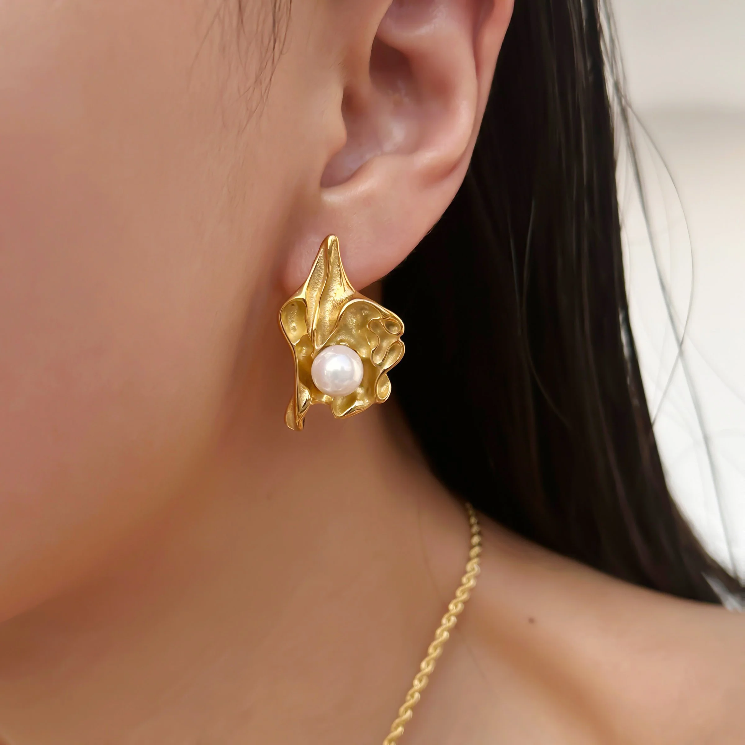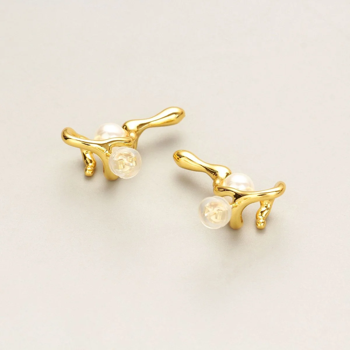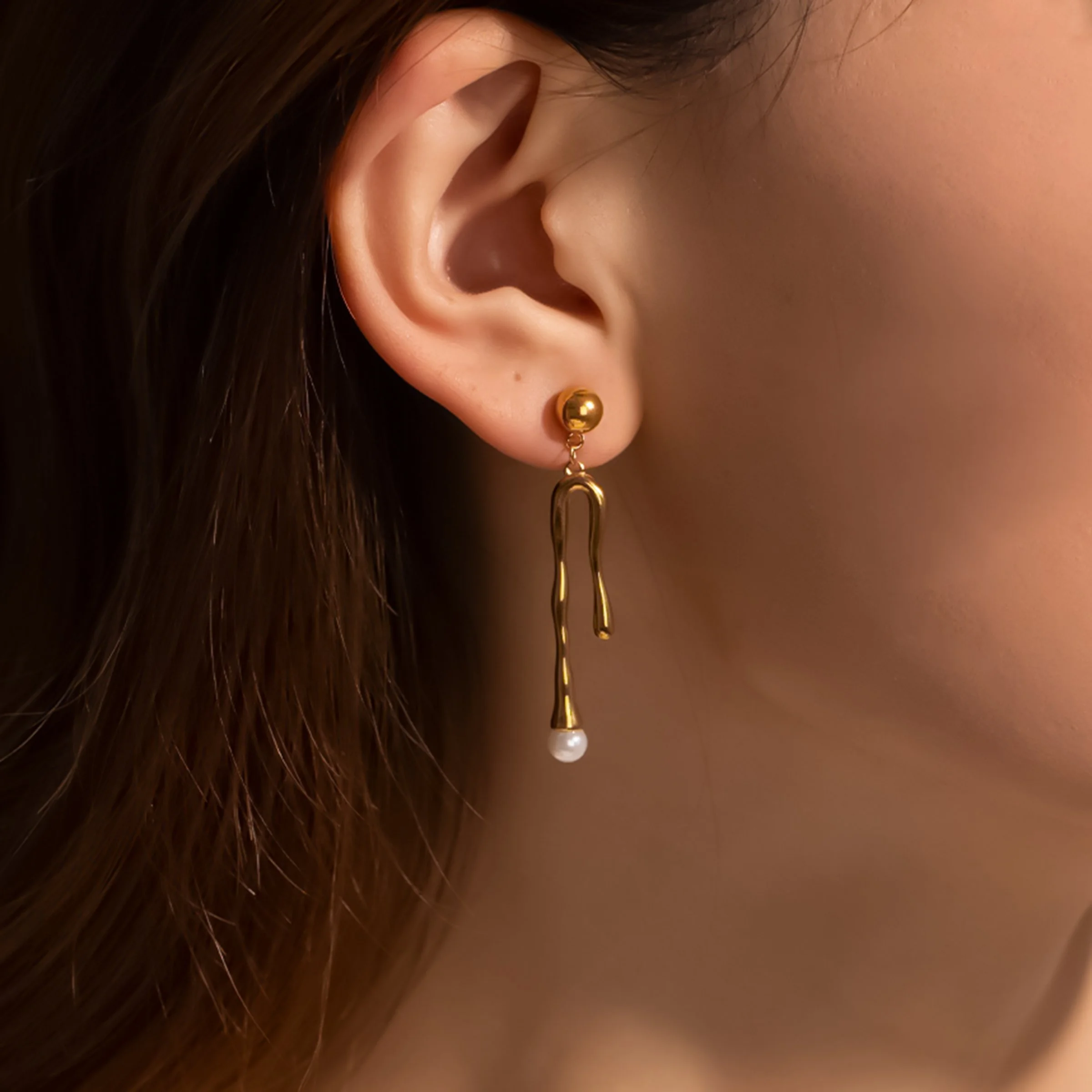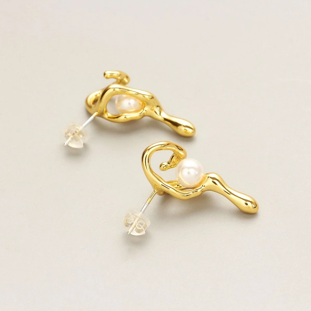 Pretzel 18K Gold Filled With Freshwater Pearl Handmade Earring
