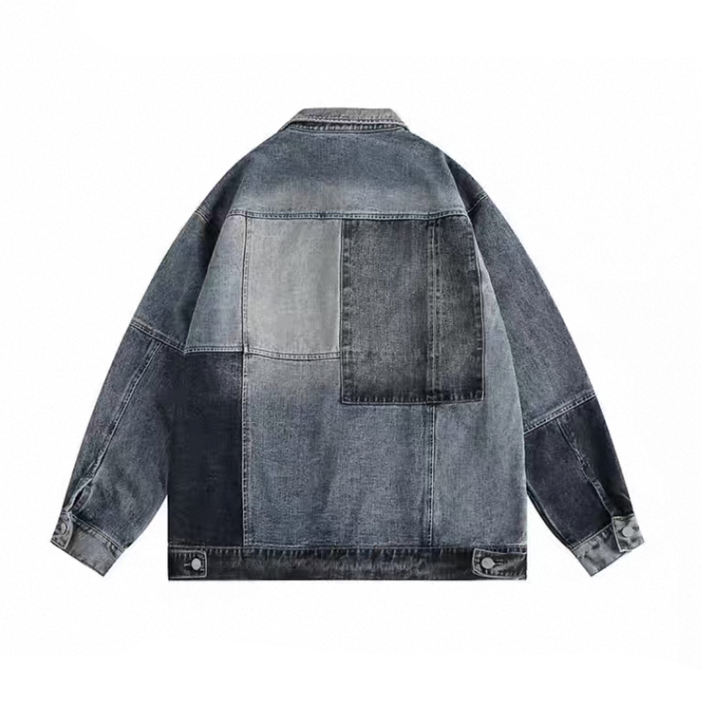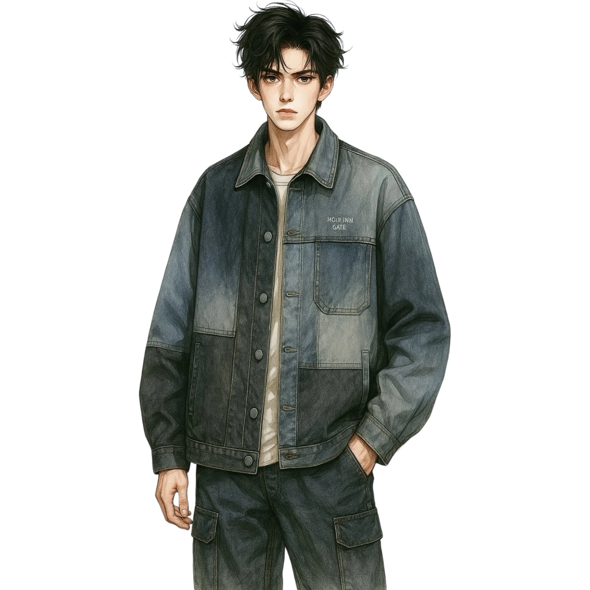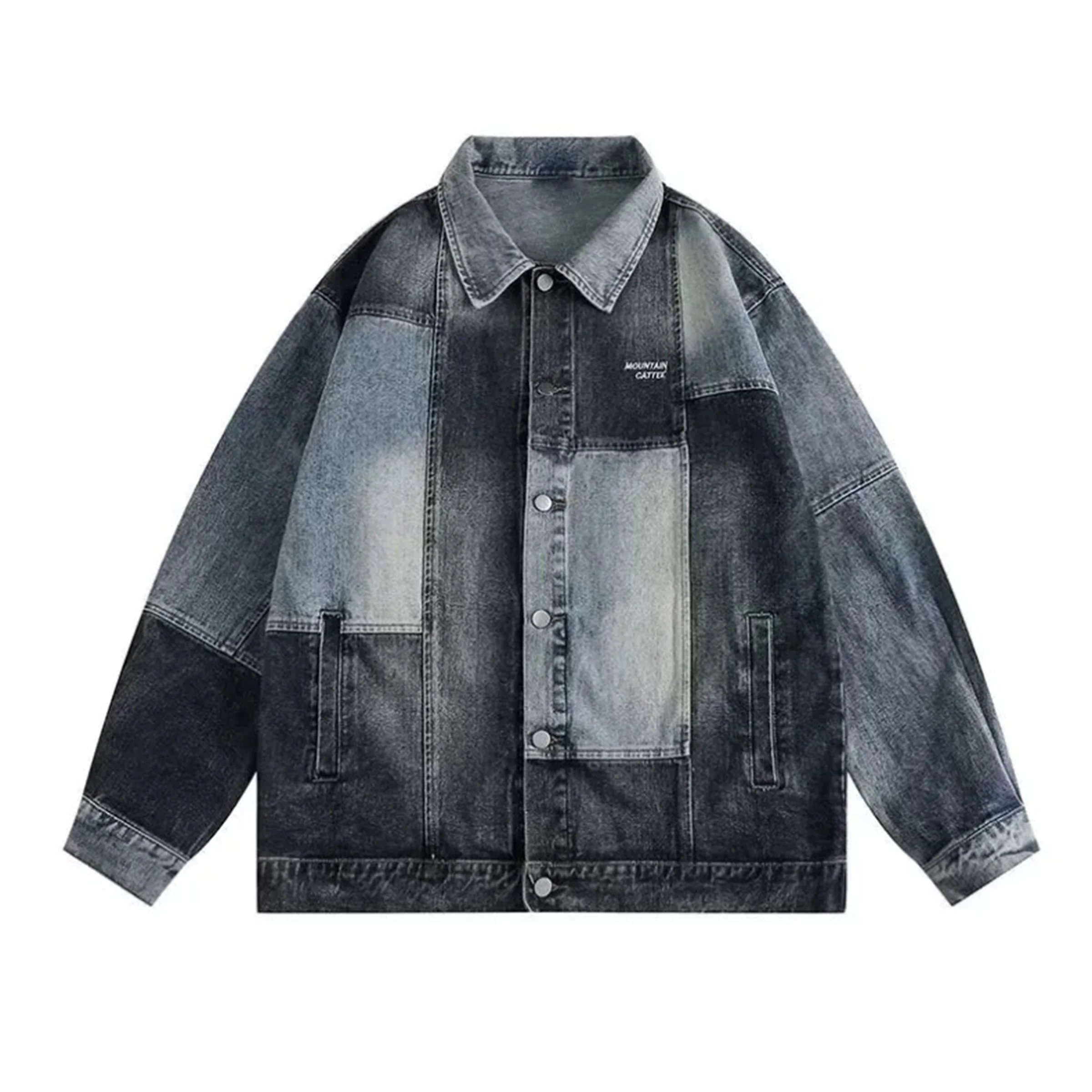 Men’s Washed Black Gradient Denim Jacket with Ripped Detail and Oversized Fit