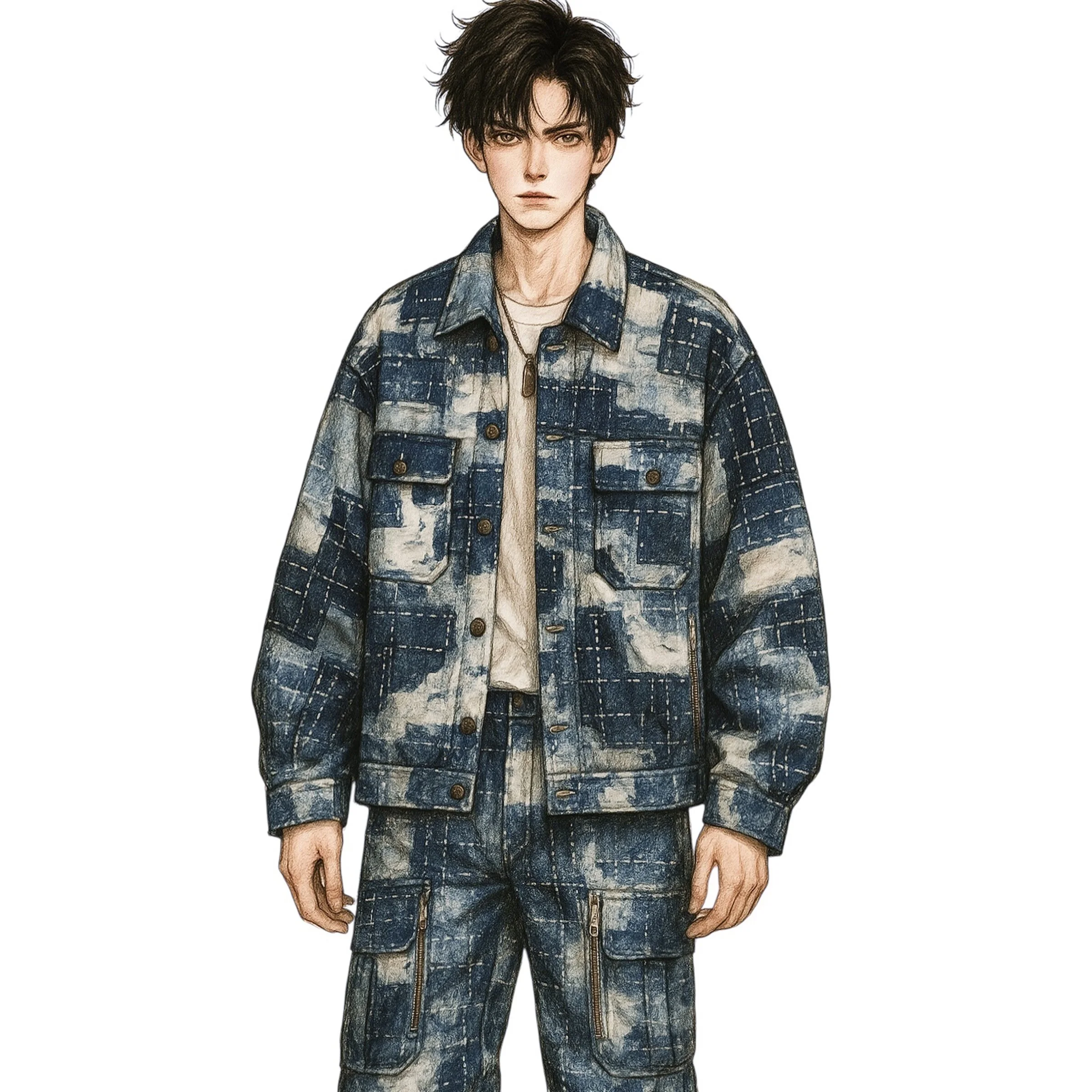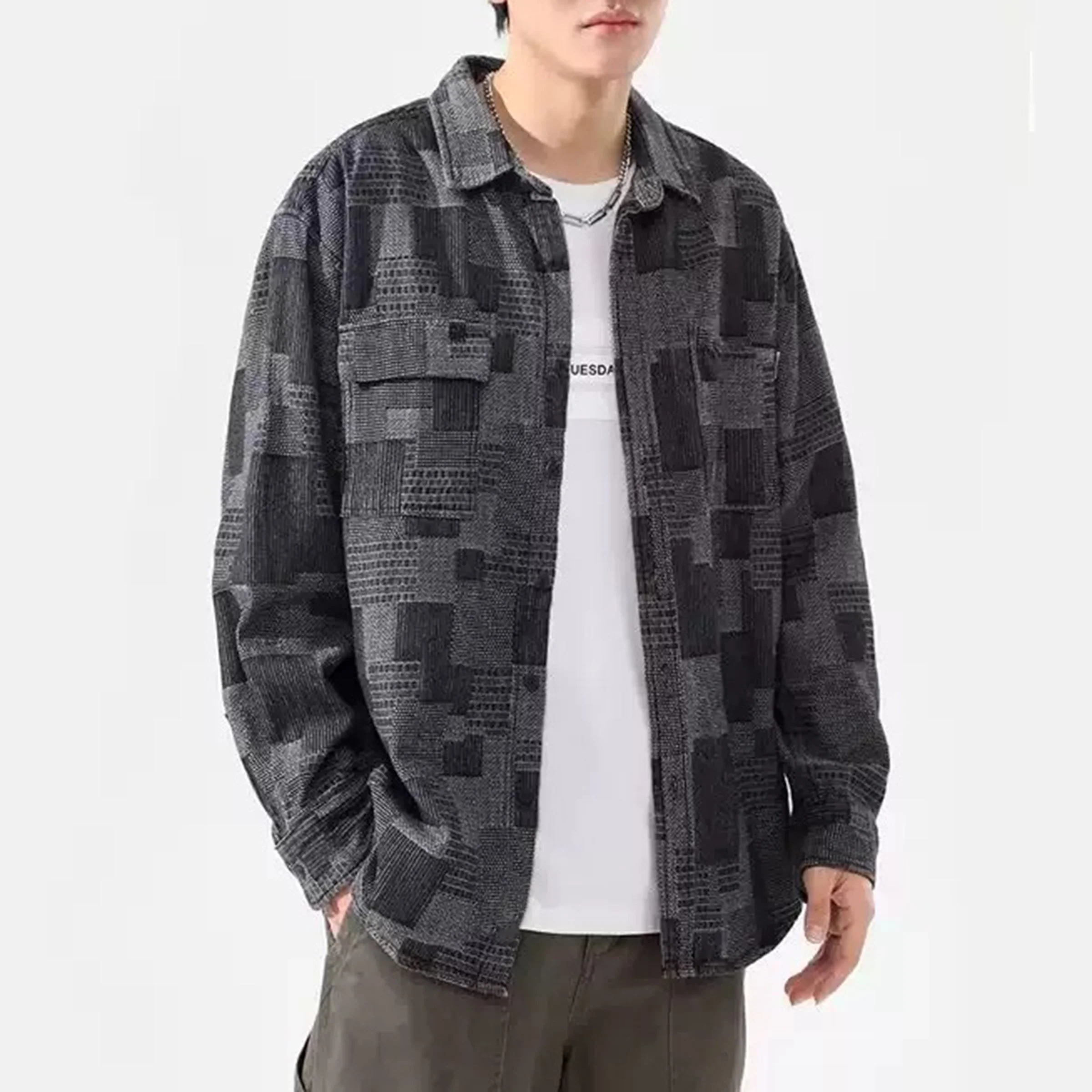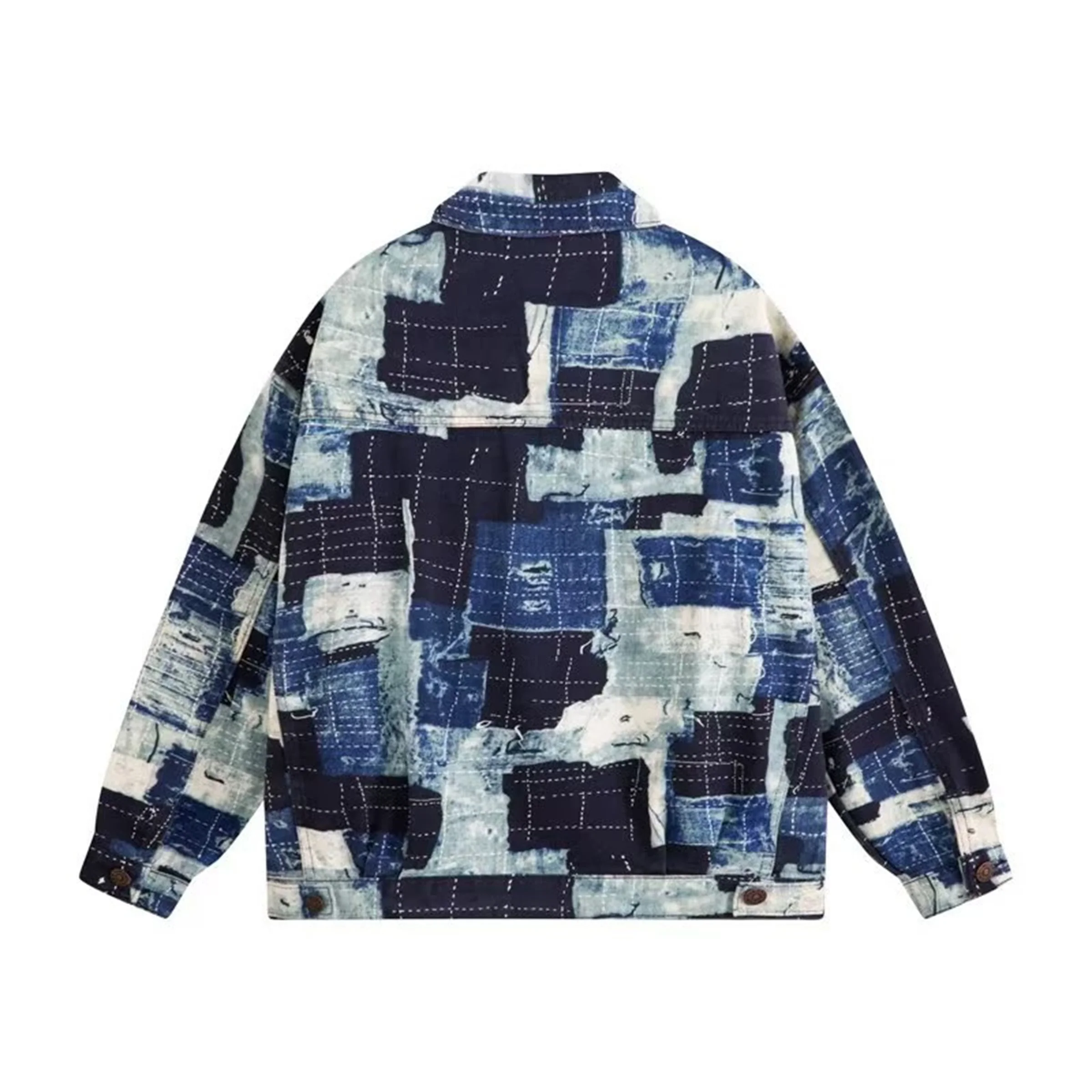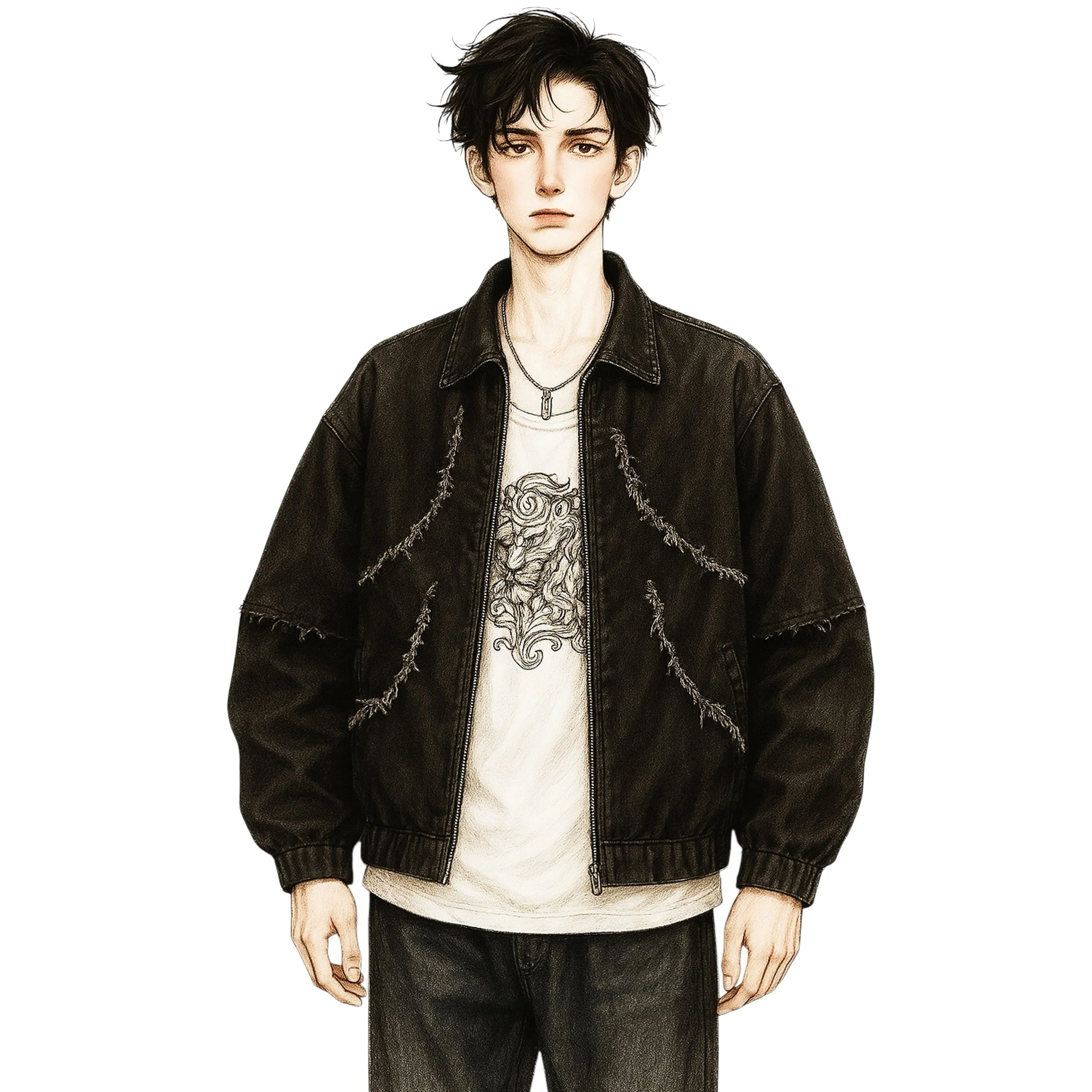 Men’s Washed Black Gradient Denim Jacket with Ripped Detail and Oversized Fit