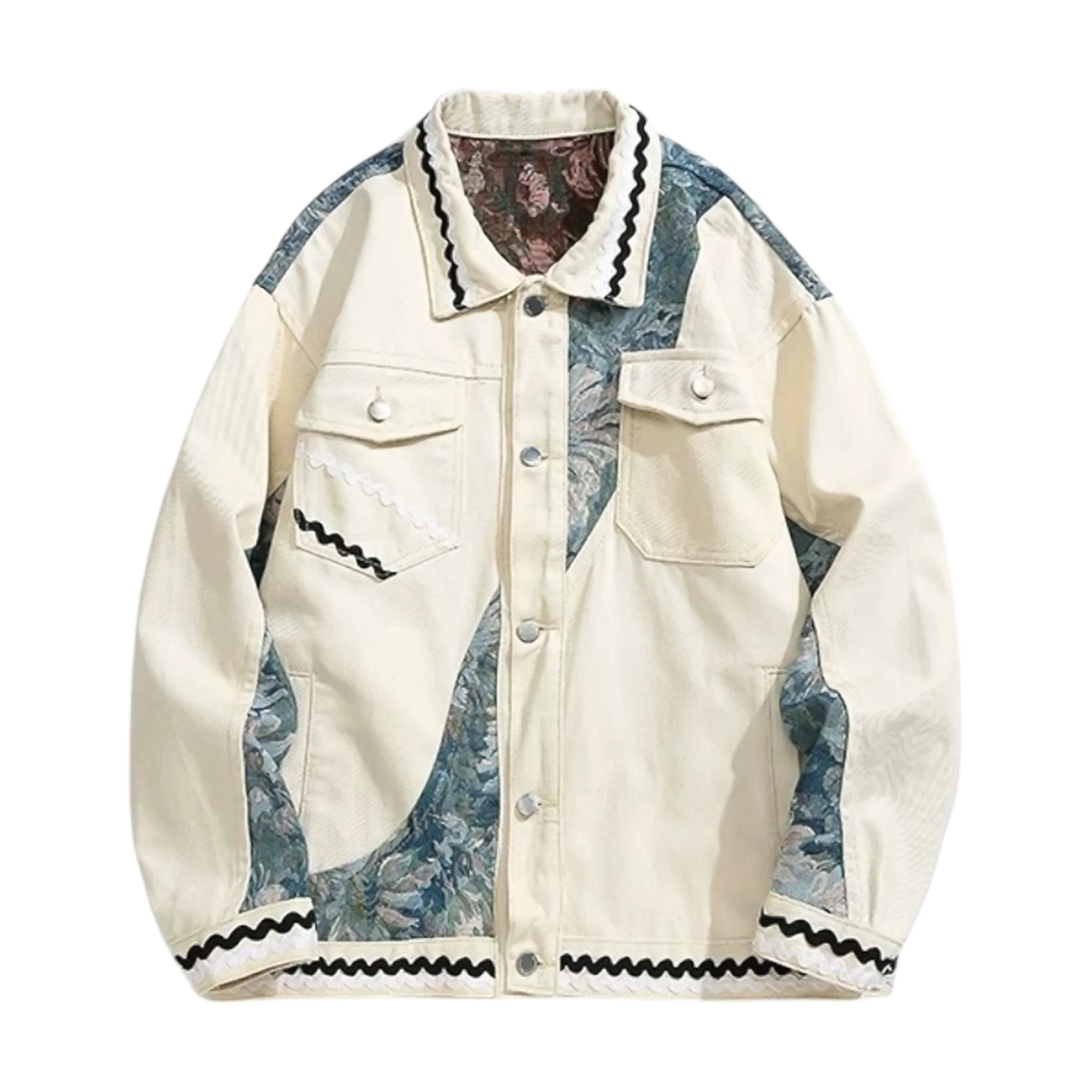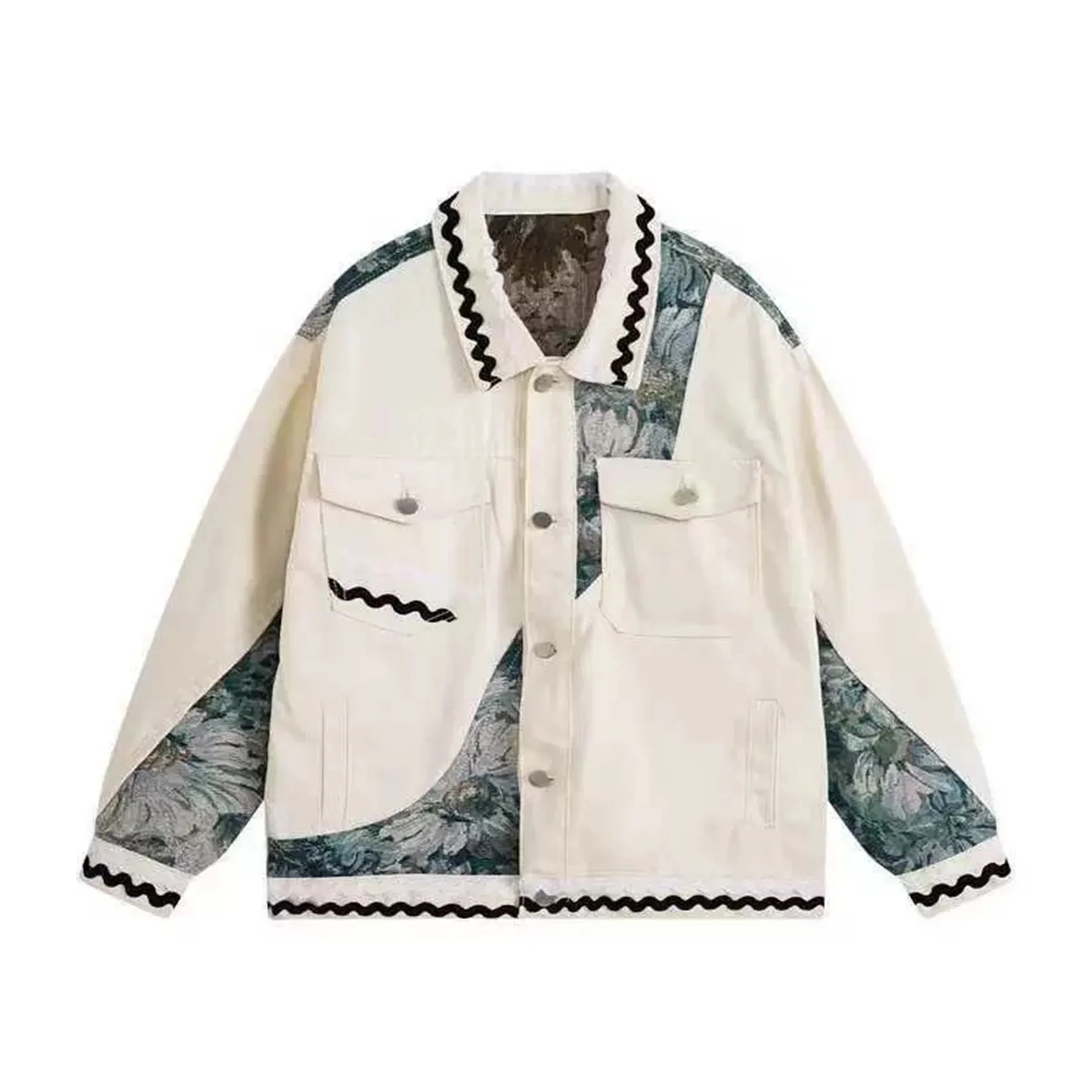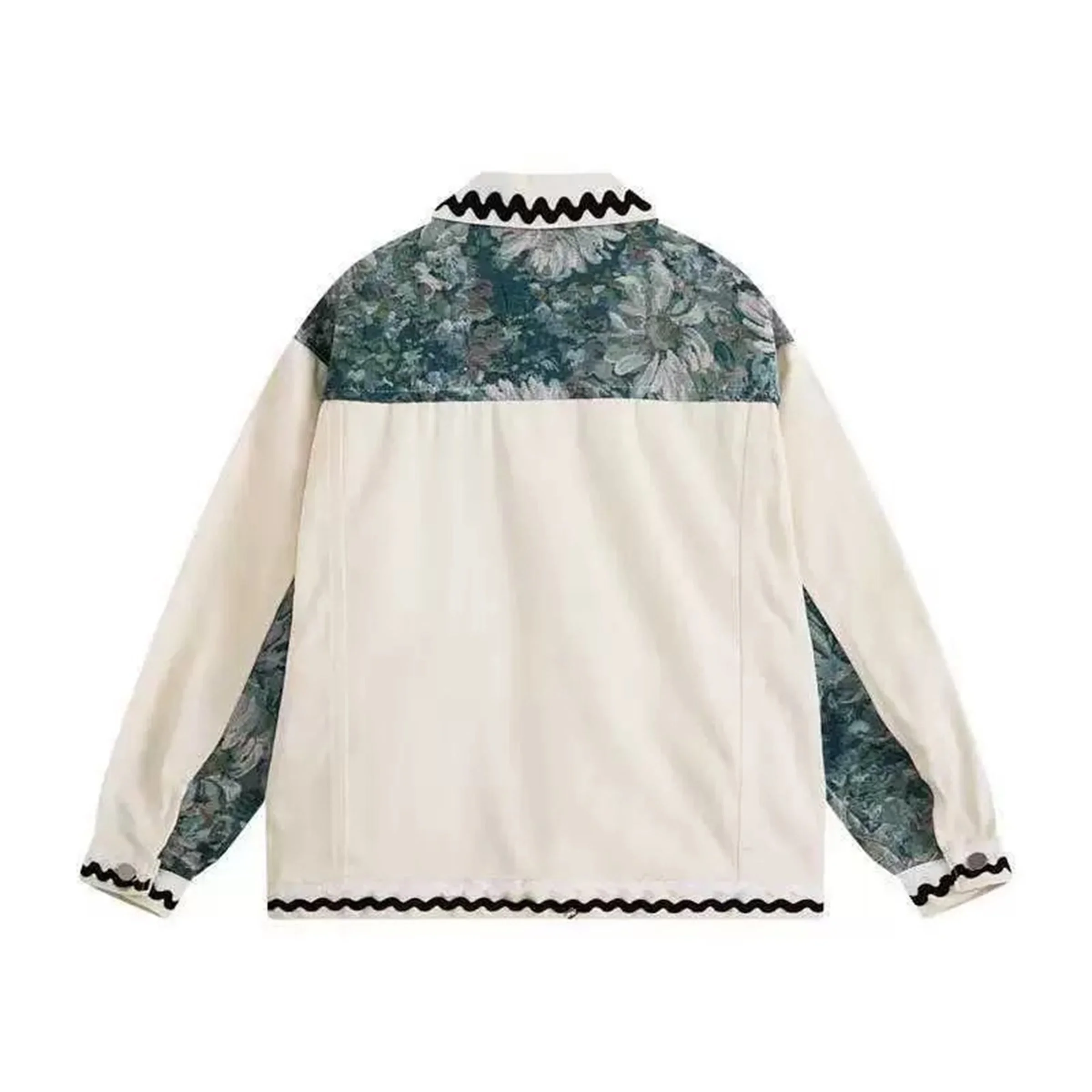 Cerberus Print Corduroy Collar Jacket - Beige Vintage Doberman Graphic Streetwear Coat