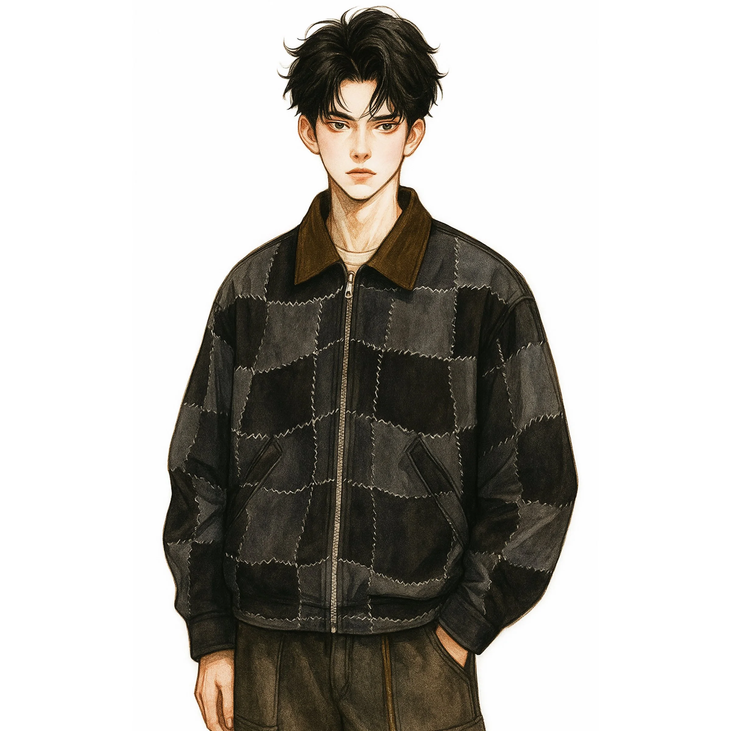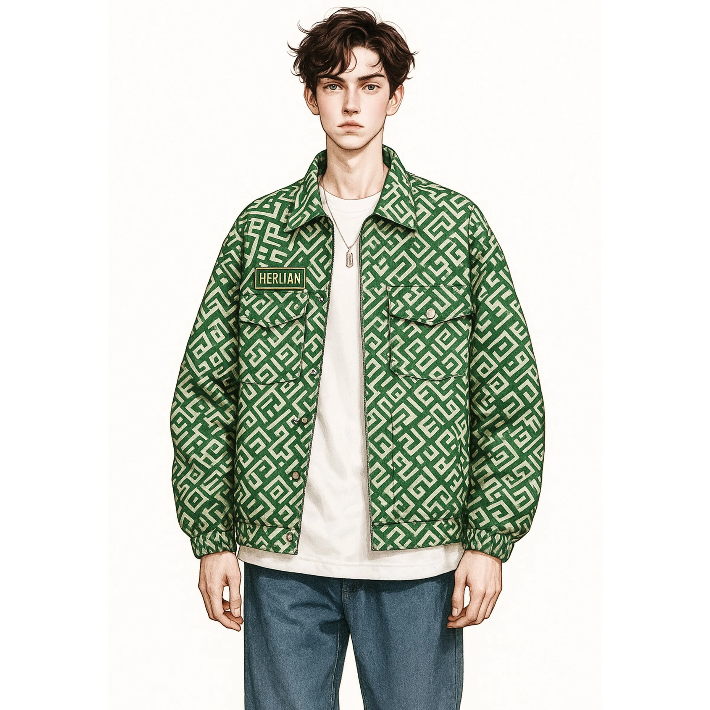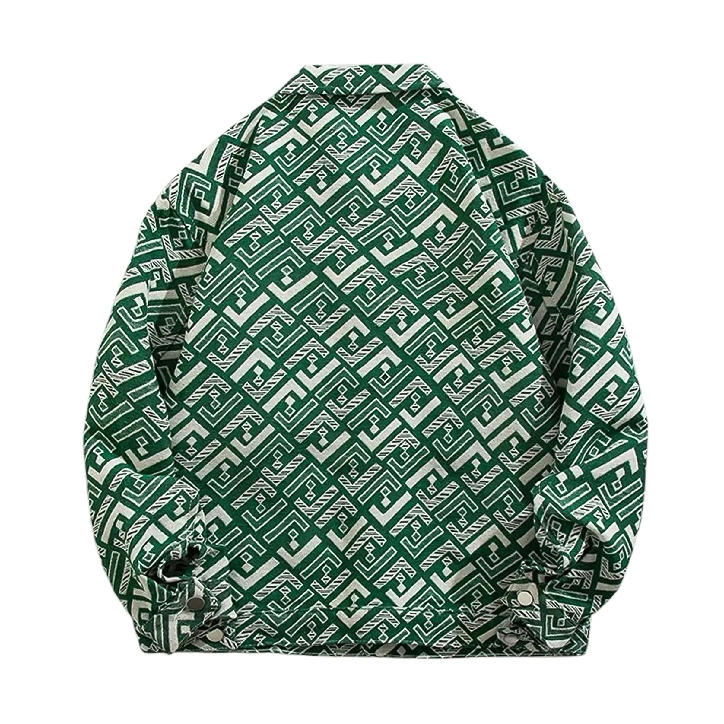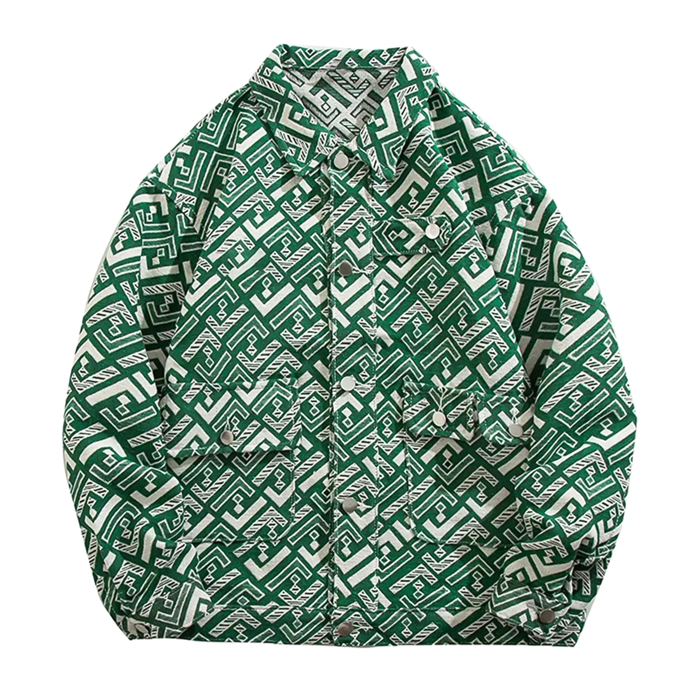 Cerberus Print Corduroy Collar Jacket - Beige Vintage Doberman Graphic Streetwear Coat