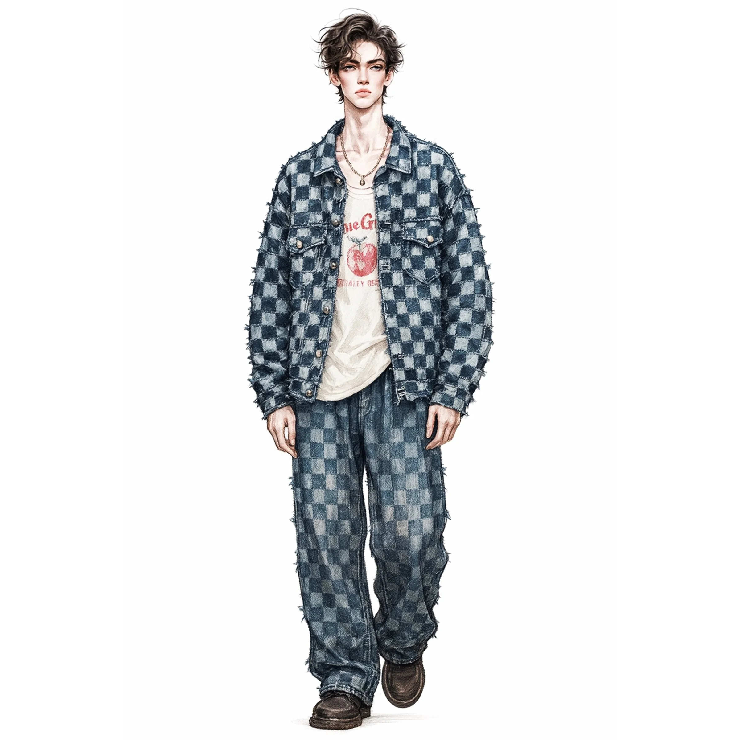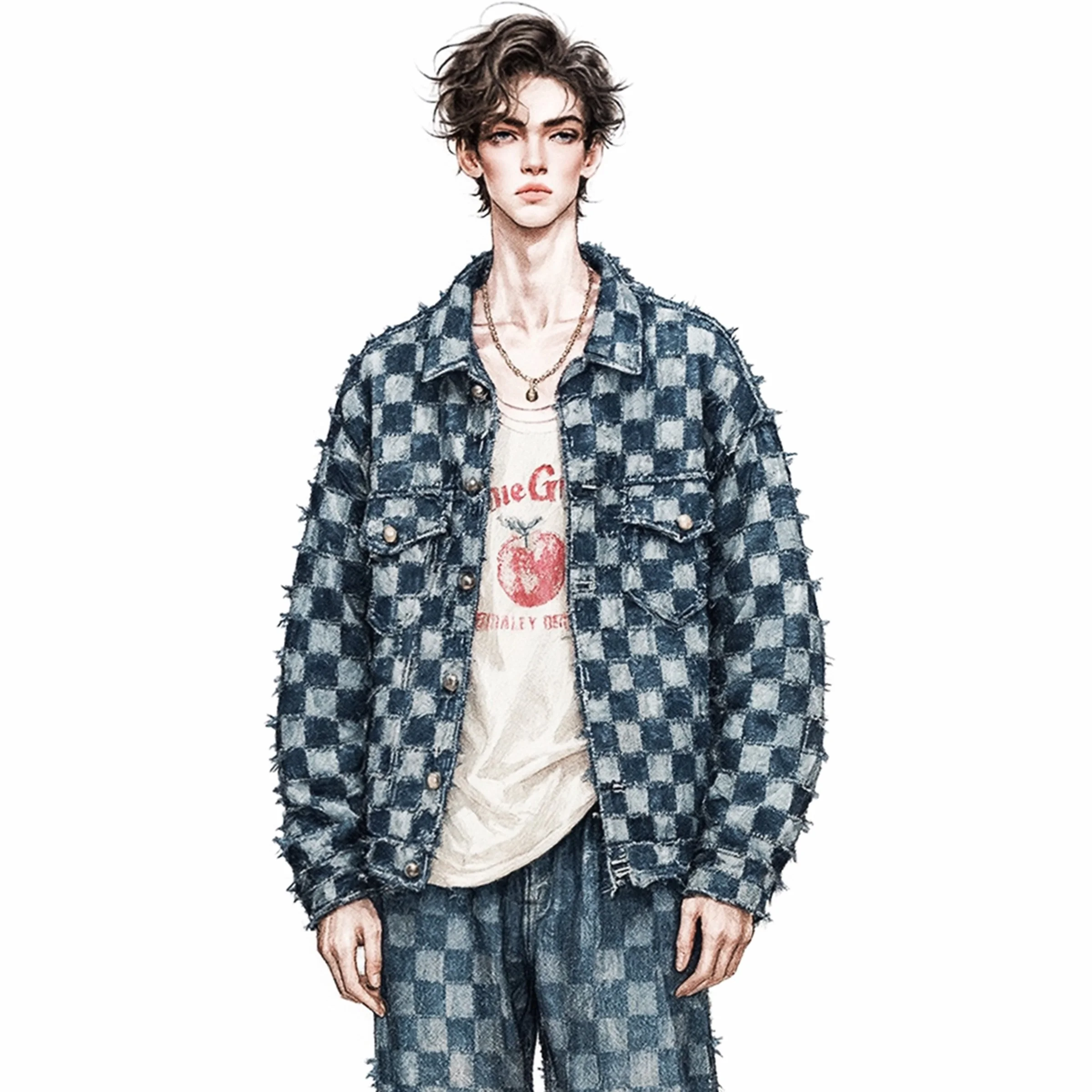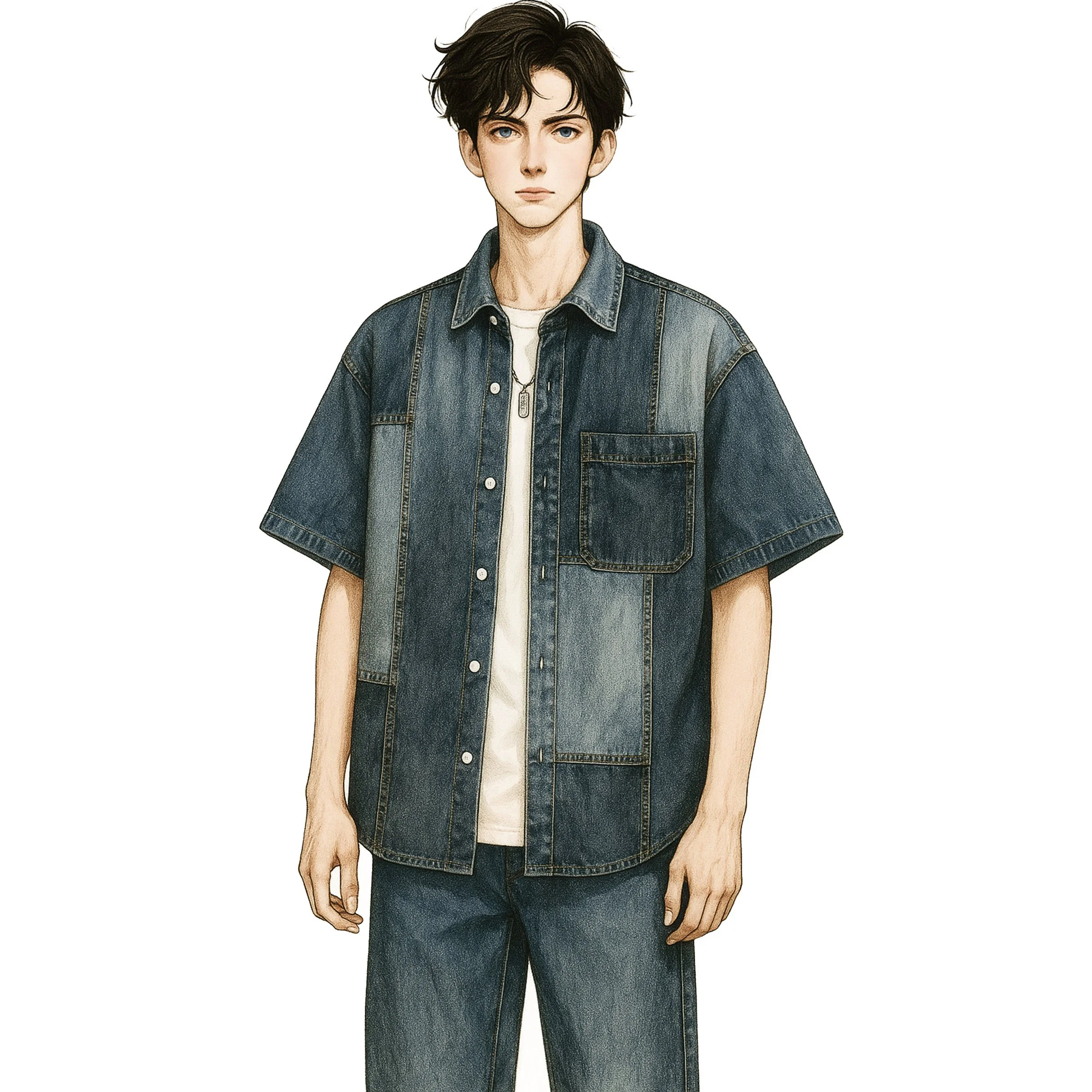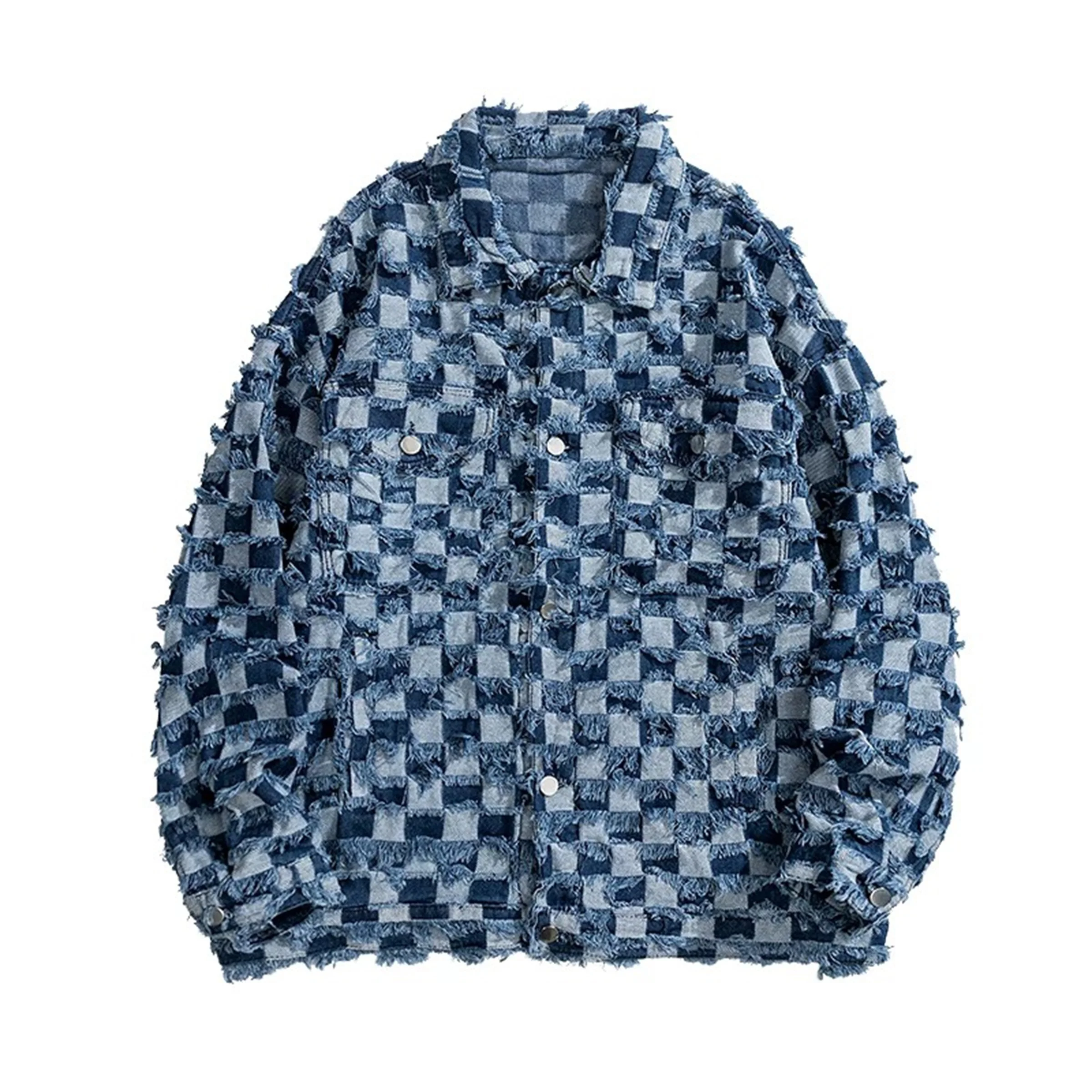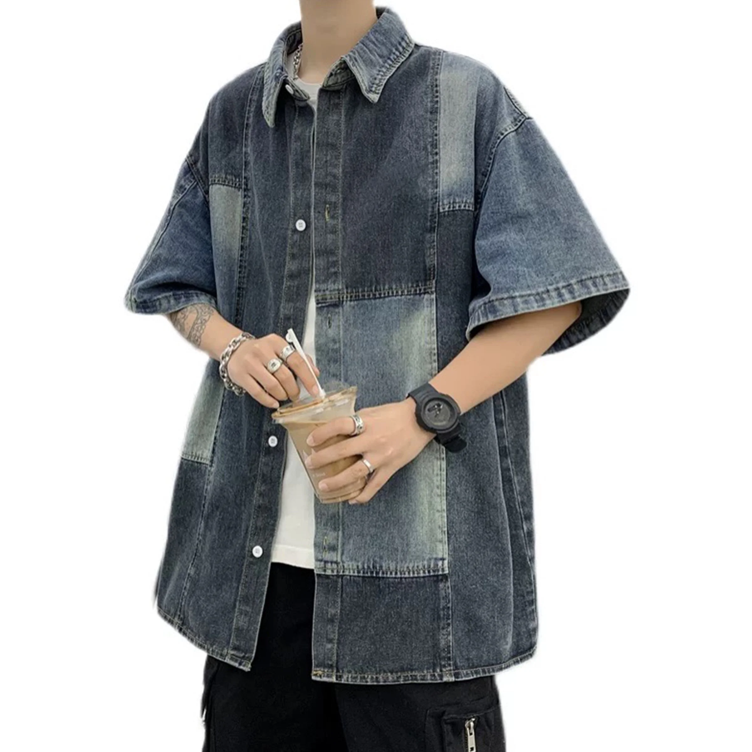 Frayed Short Sleeve Denim Vest Jacket - Grunge Layered Look