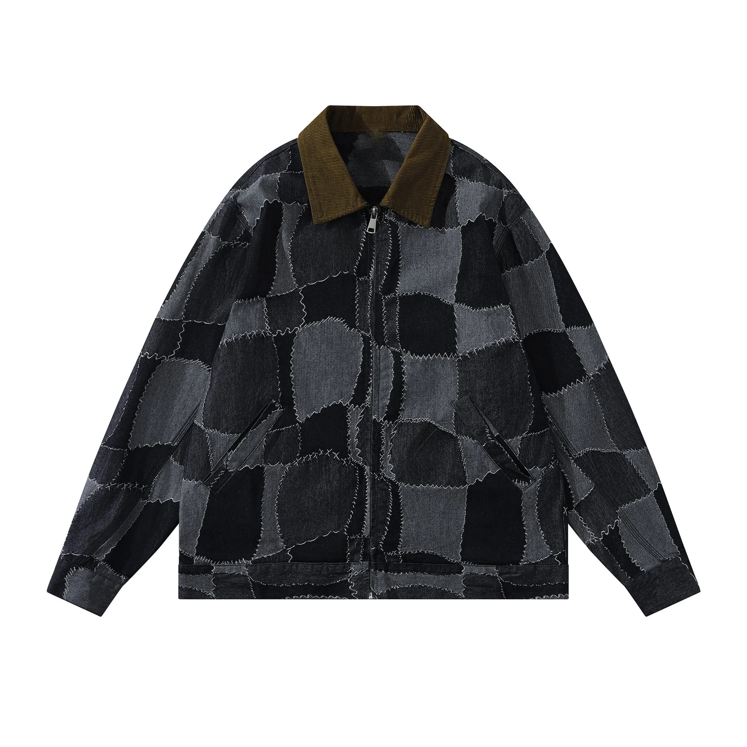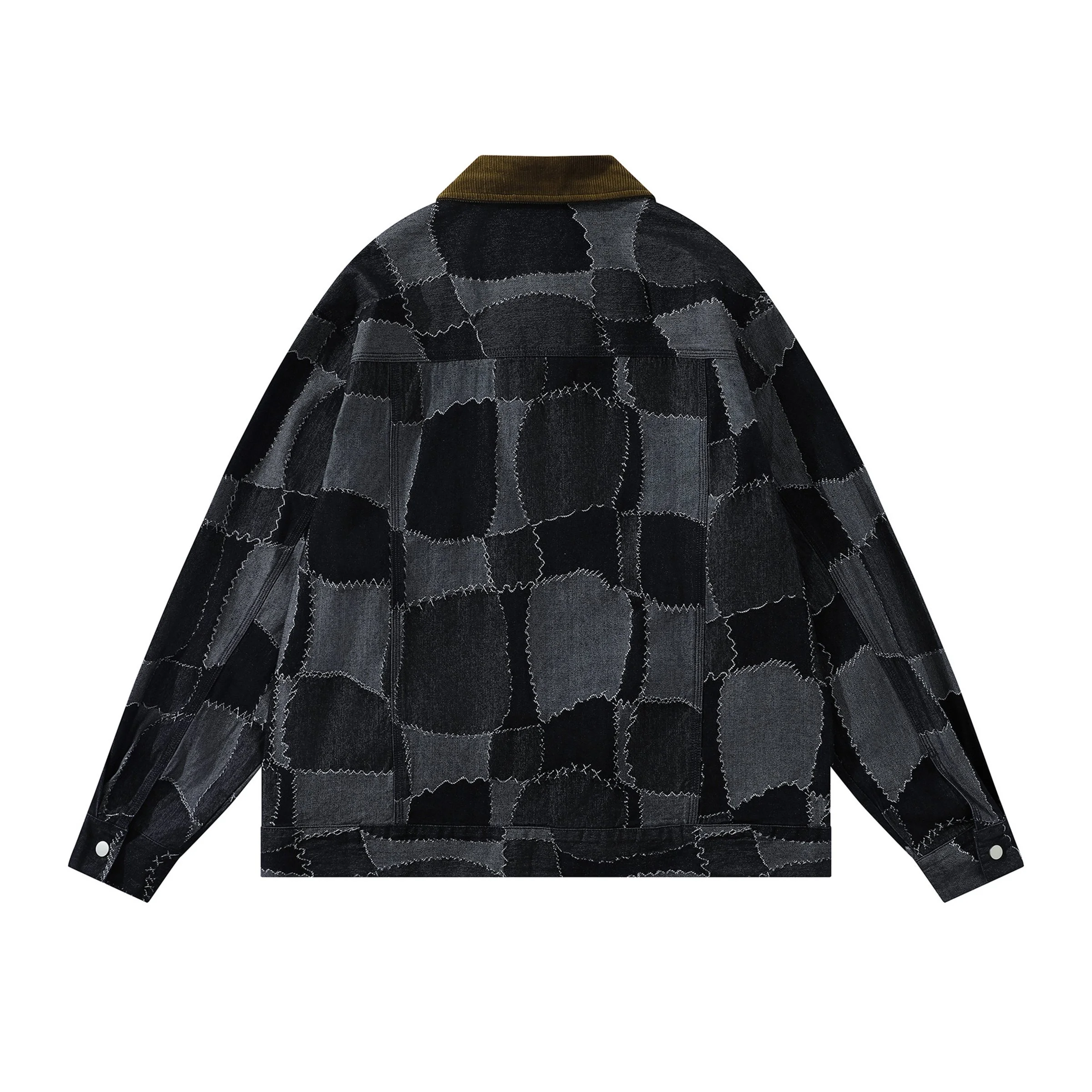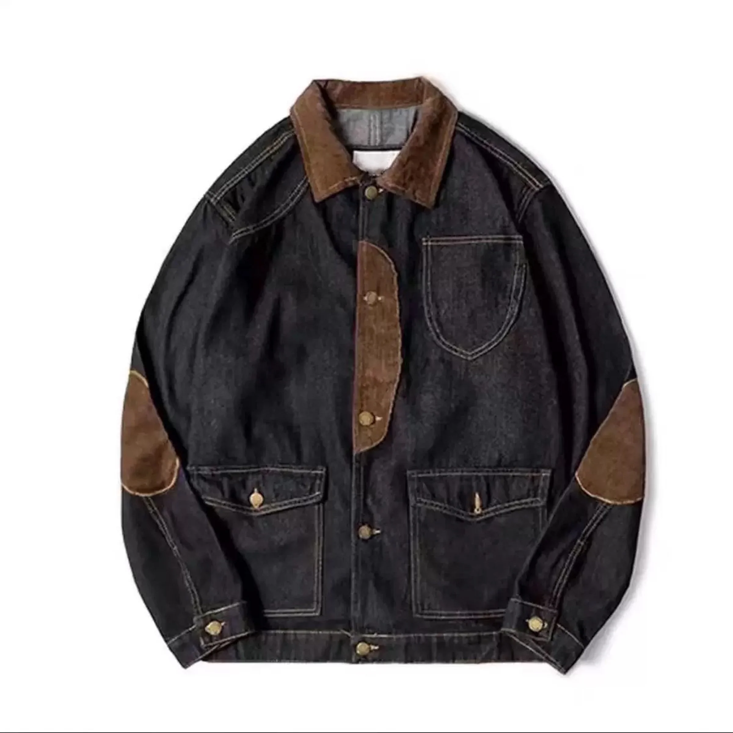 Vintage Workwear Denim Jacket - Dark Wash with Brown Corduroy Trim & Elbow Patches