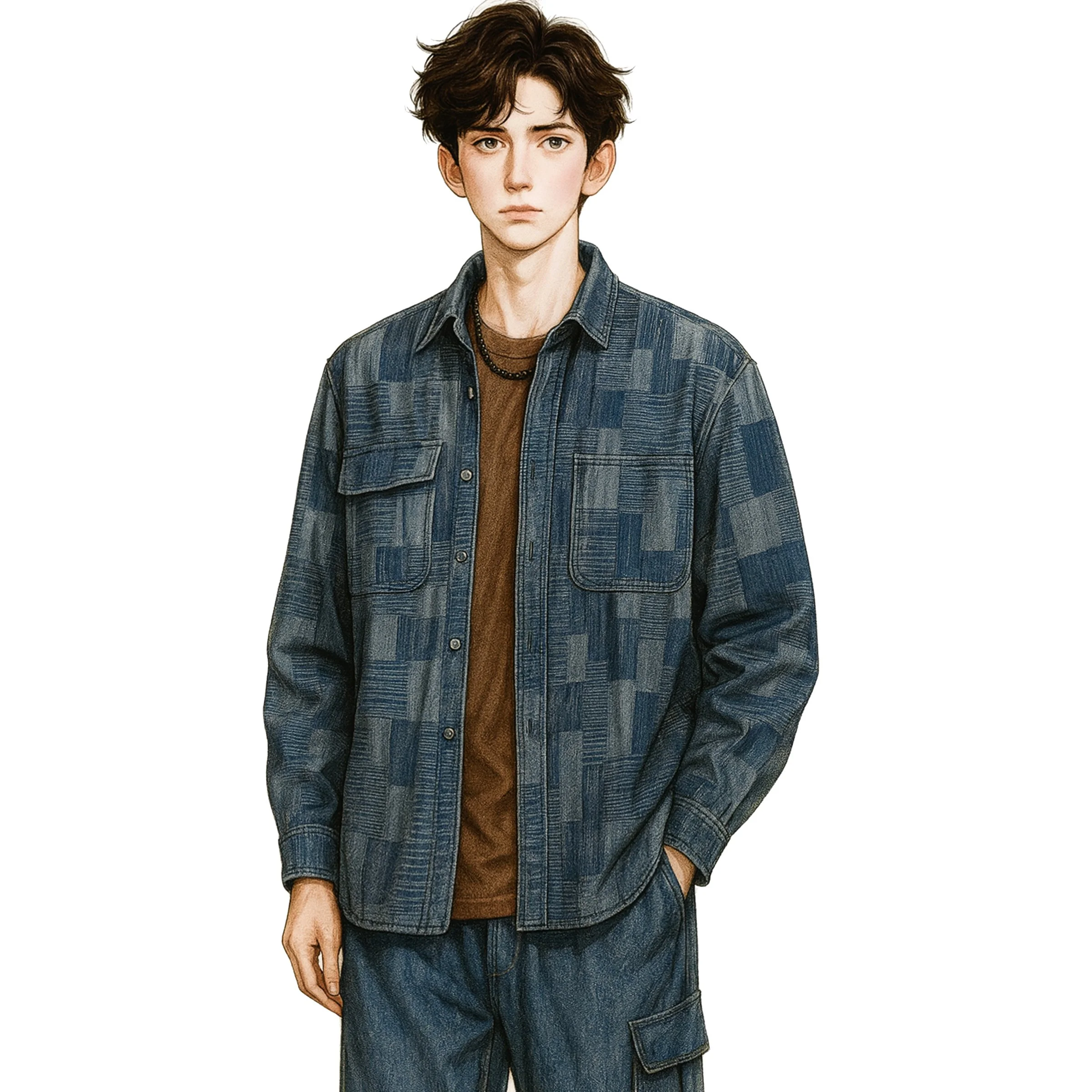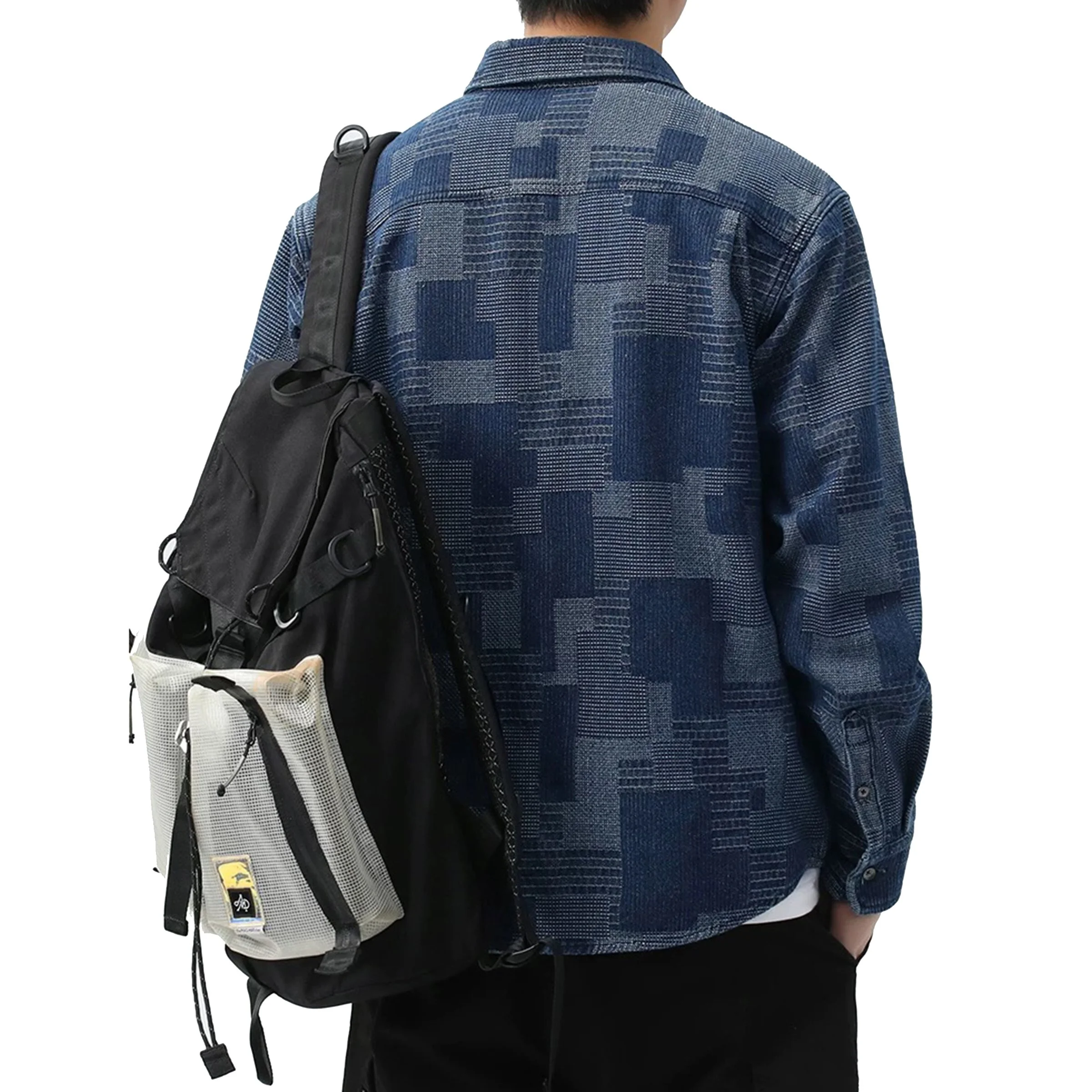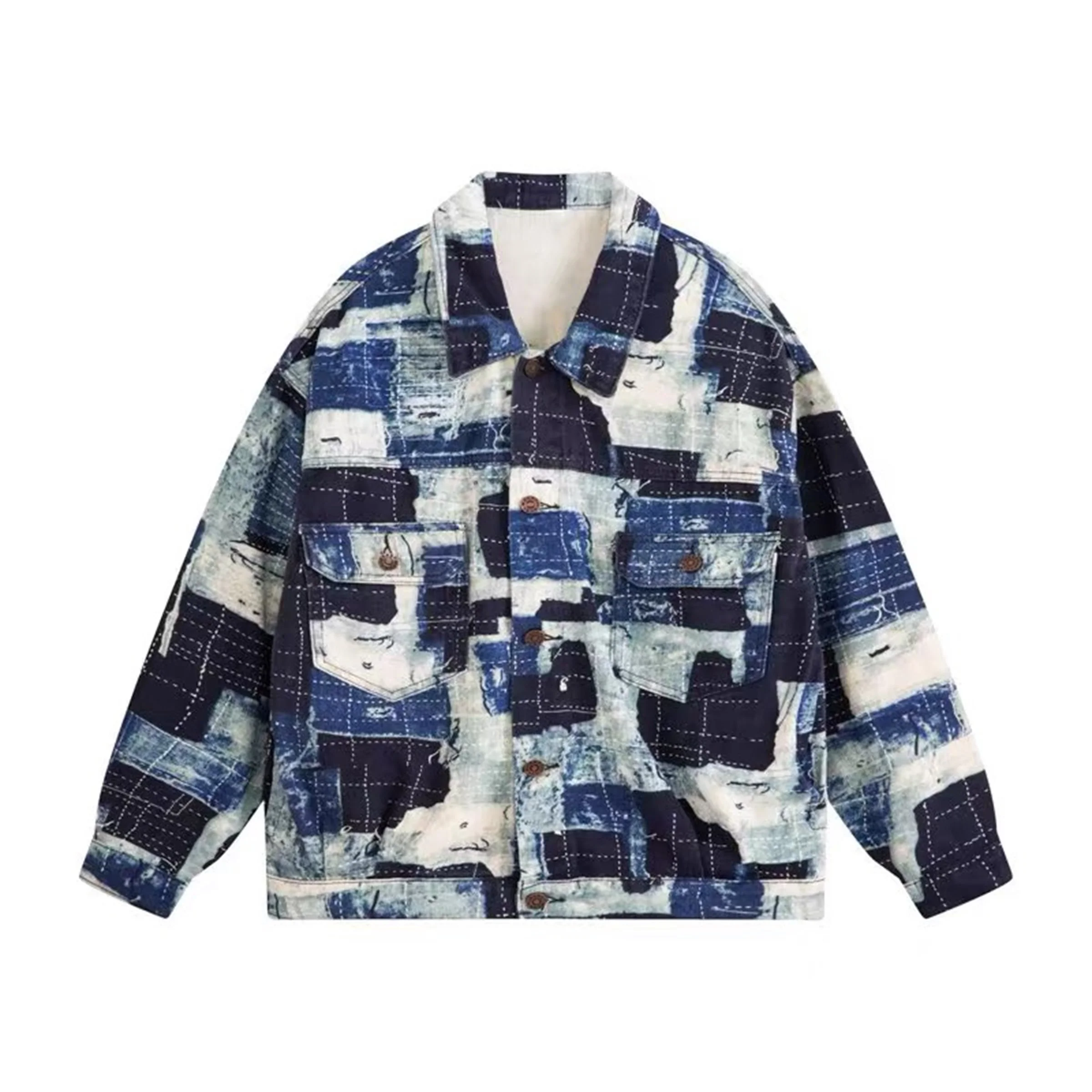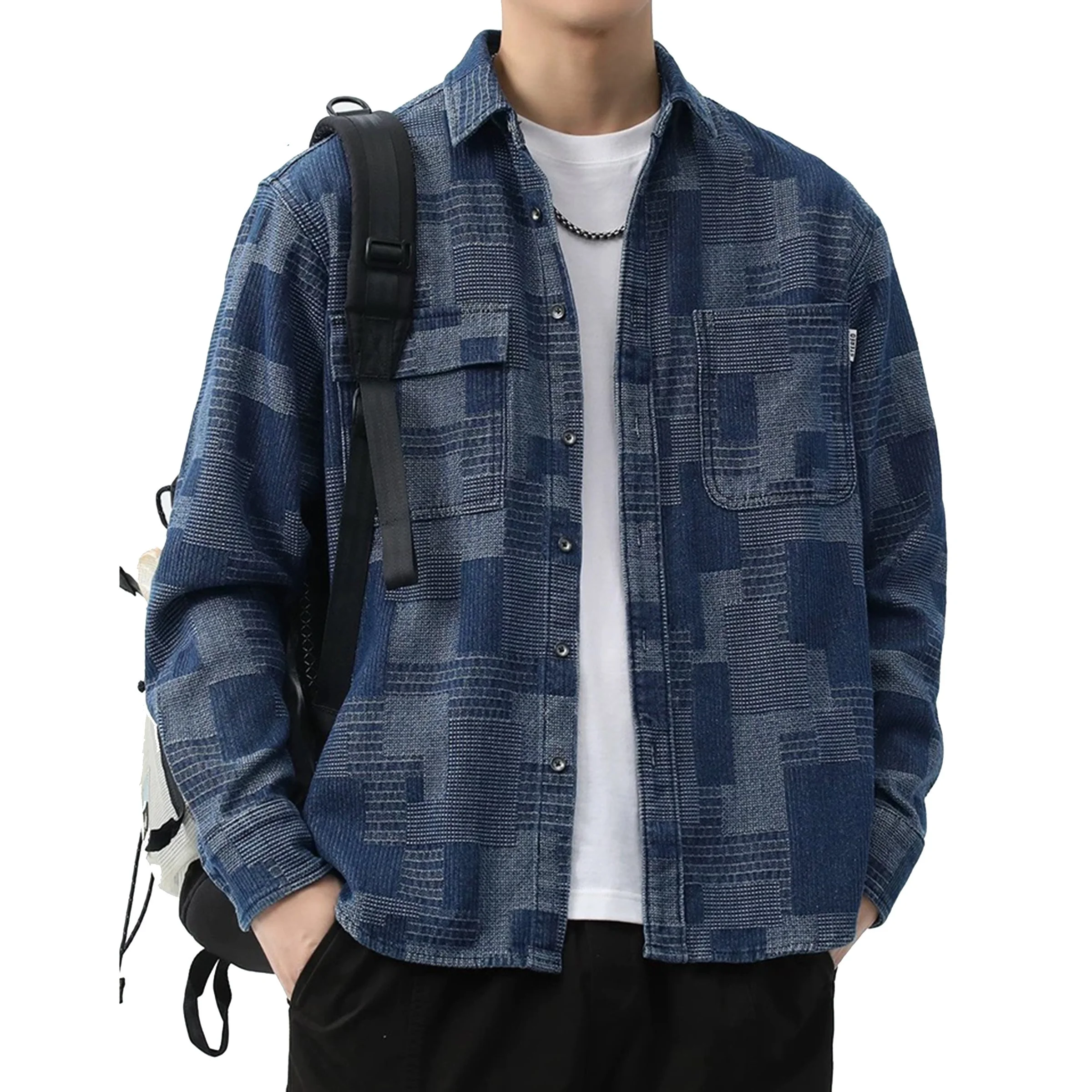 Vintage Workwear Denim Jacket - Dark Wash with Brown Corduroy Trim & Elbow Patches