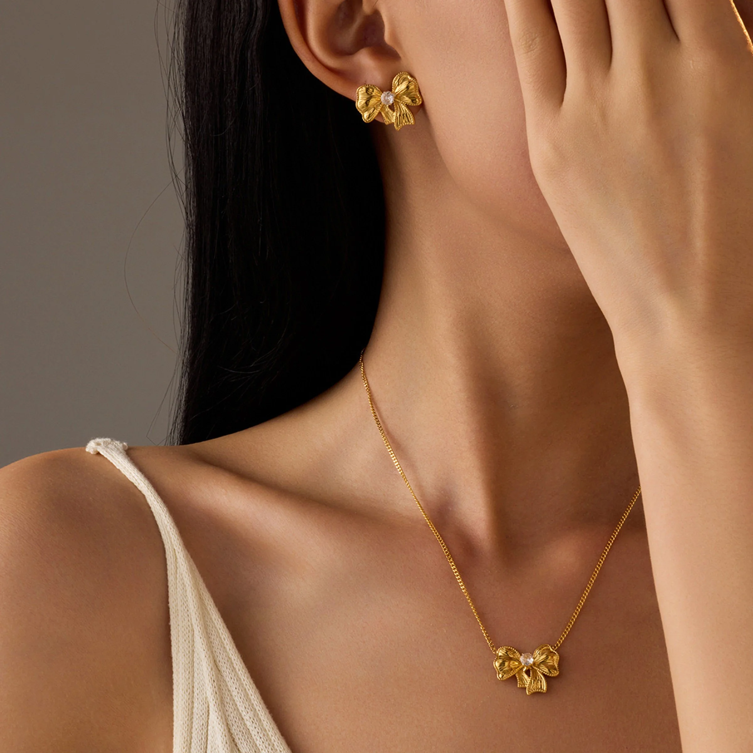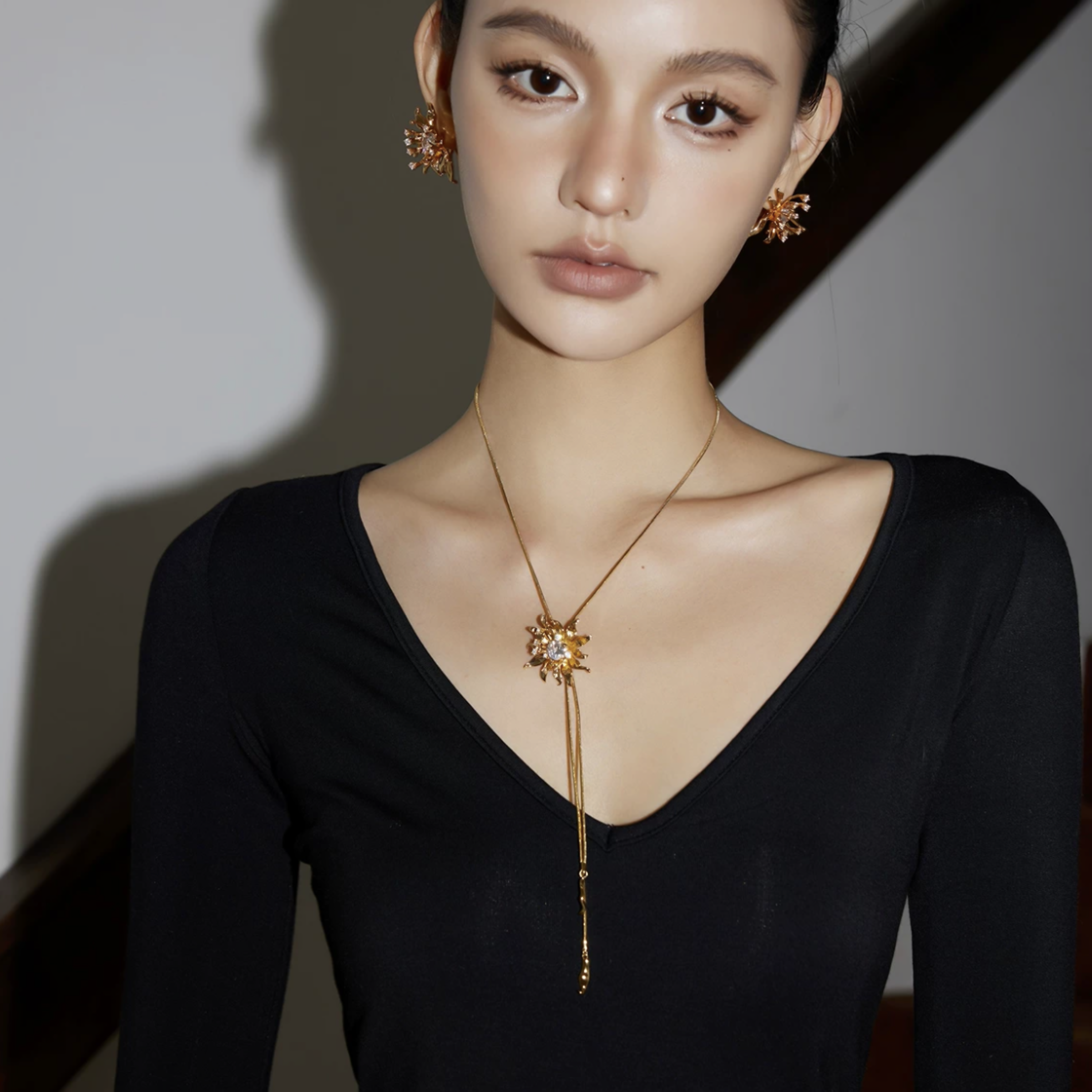Rose Petals 18K Gold Filled Stainless Steel Adjustable Handmade Necklace