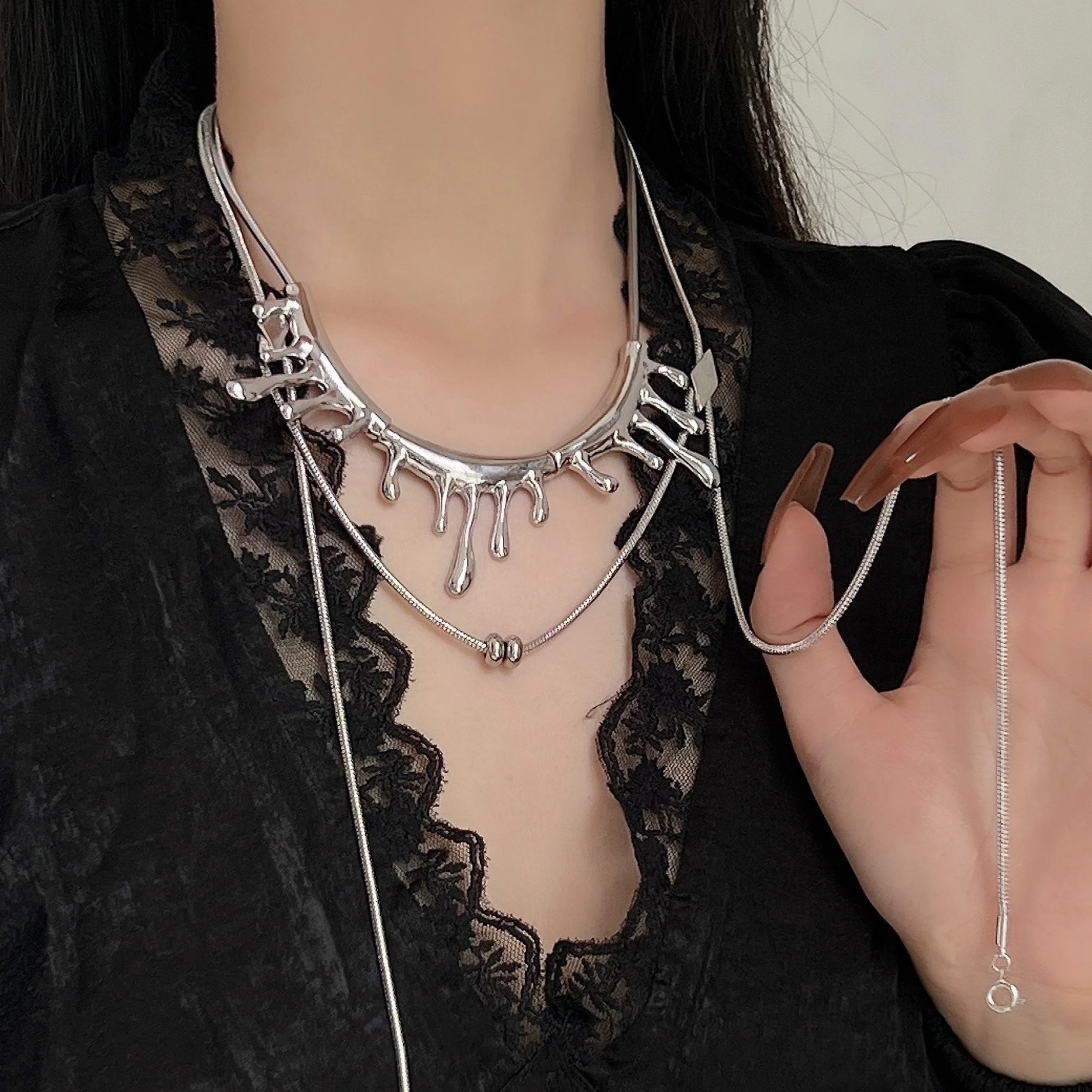 Melted Chocolate Chunks 925 Sterling Silver Adjustable Handmade Necklace
