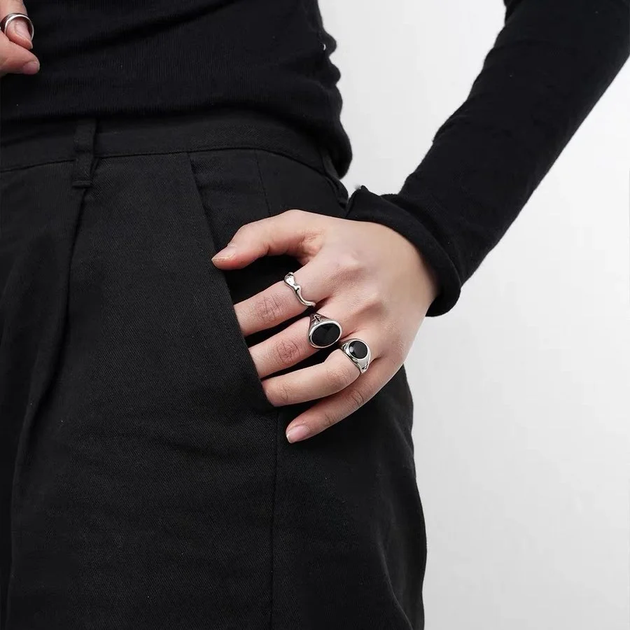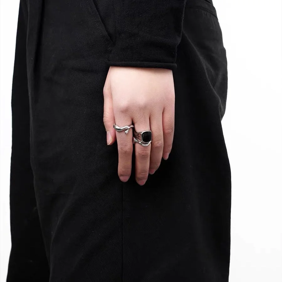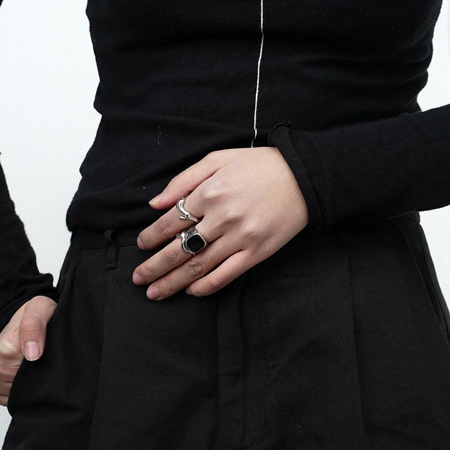 Black Shape 925 Sterling Silver Adjustable Handmade Ring