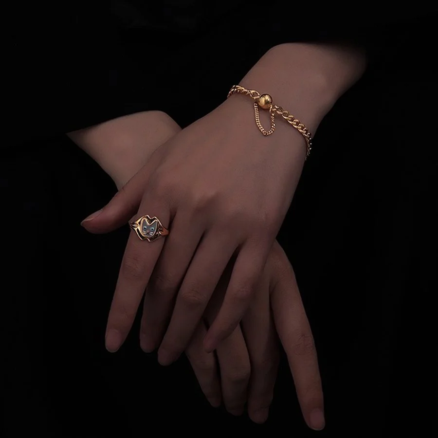 Gray Cat 925 Sterling Silver Adjustable Handmade Ring