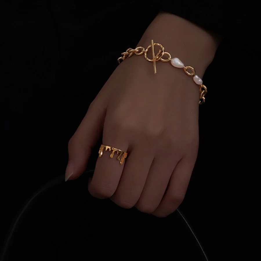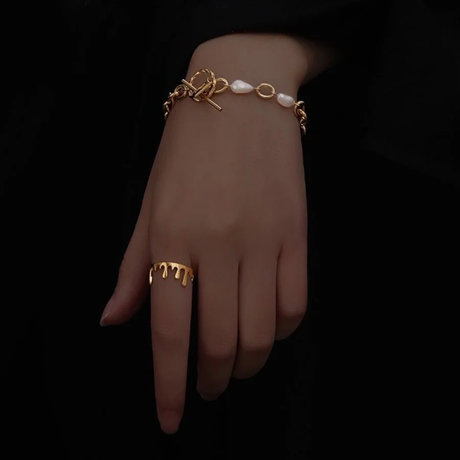 Melted Gold 925 Sterling Silver Adjustable Handmade Ring