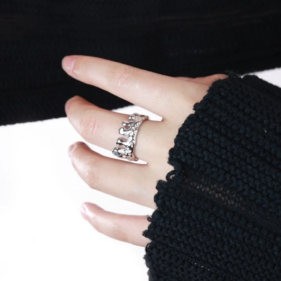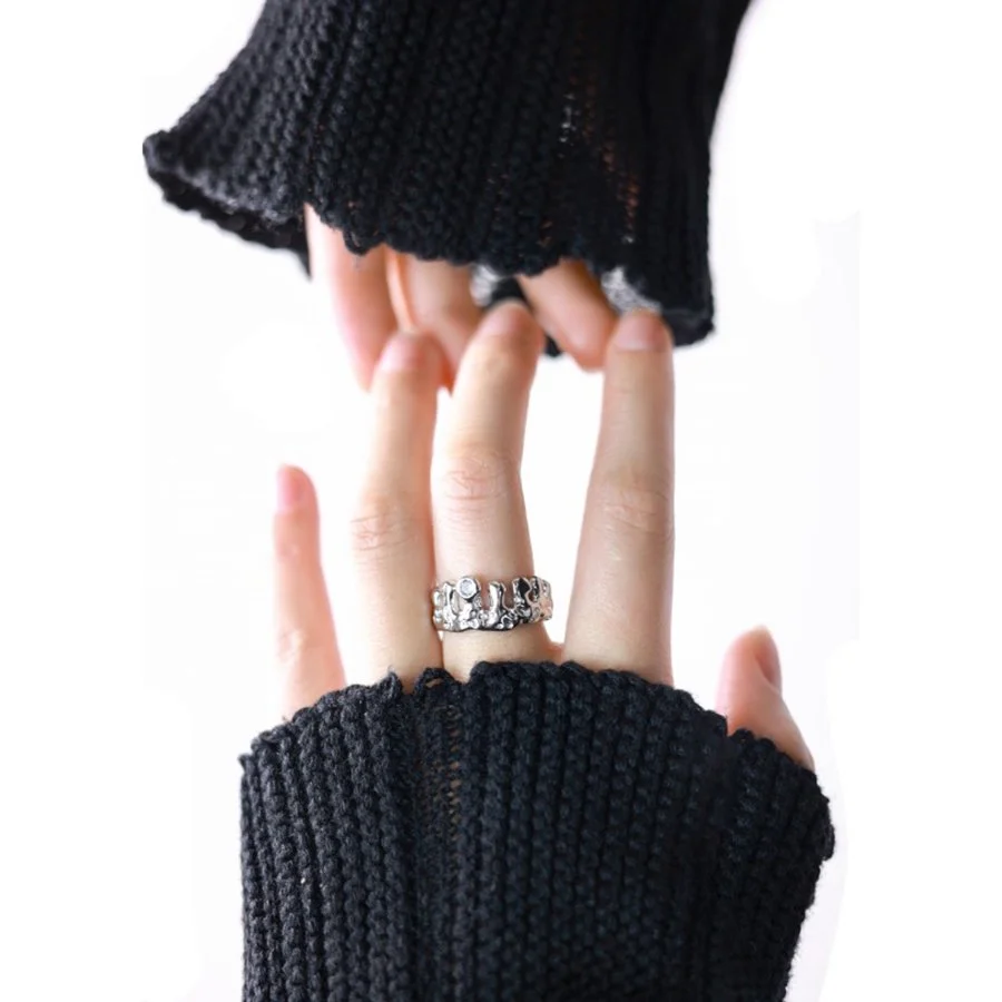 Melted Silver 925 Sterling Silver Adjustable Handmade Ring