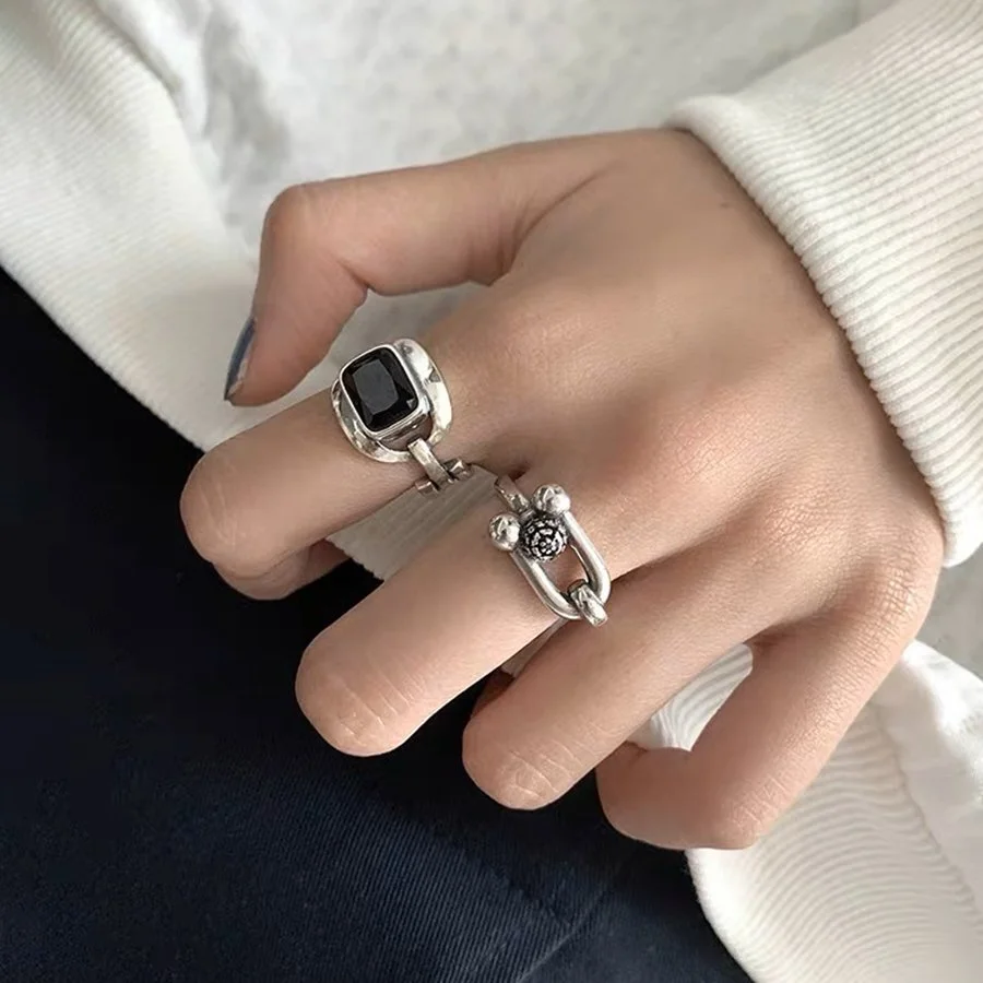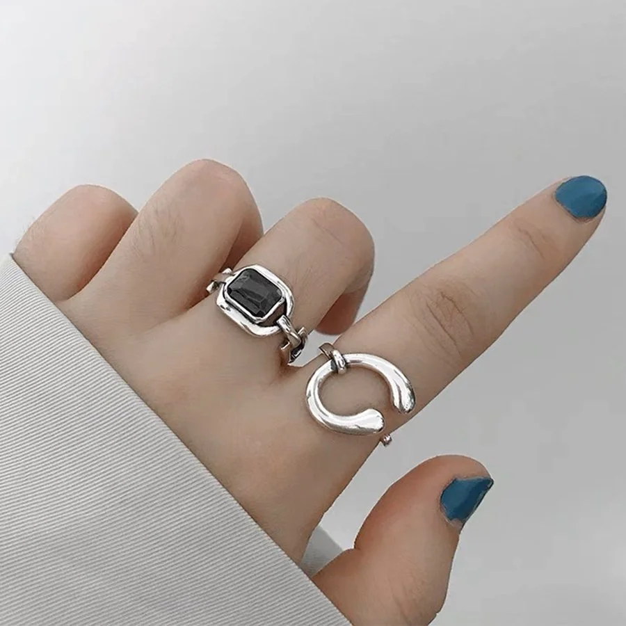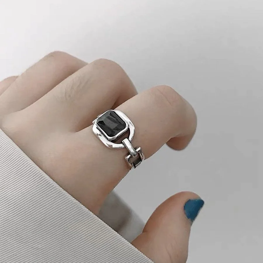 Black Gem 925 Sterling Silver Adjustable Handmade Ring