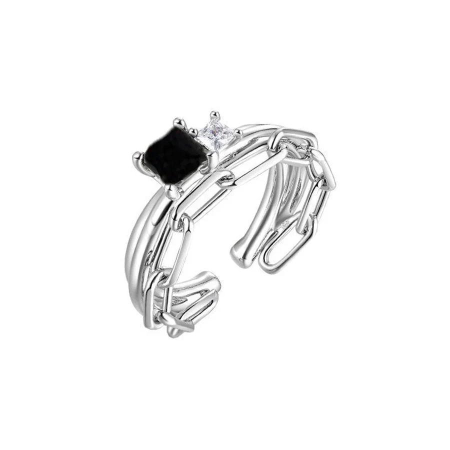 Black And White Crystal 925 Sterling Silver Adjustable Handmade Ring