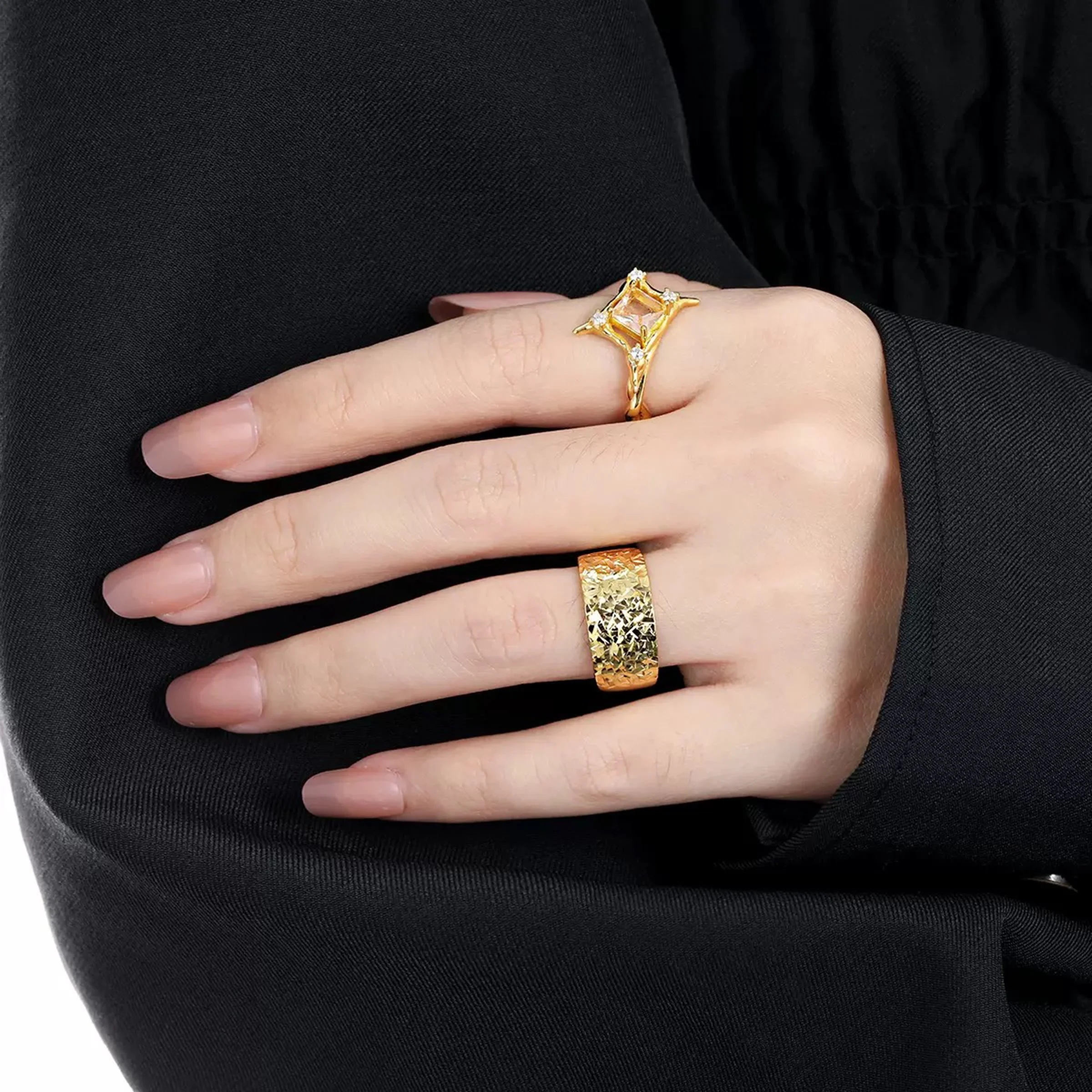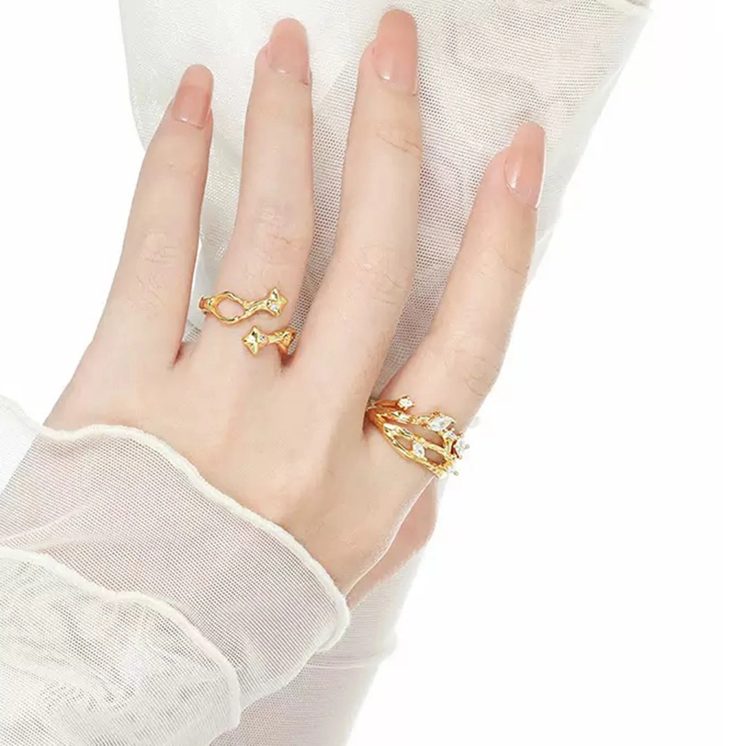 Iridescent Core 18K Gold Filled With Crystal Adjustable Ring