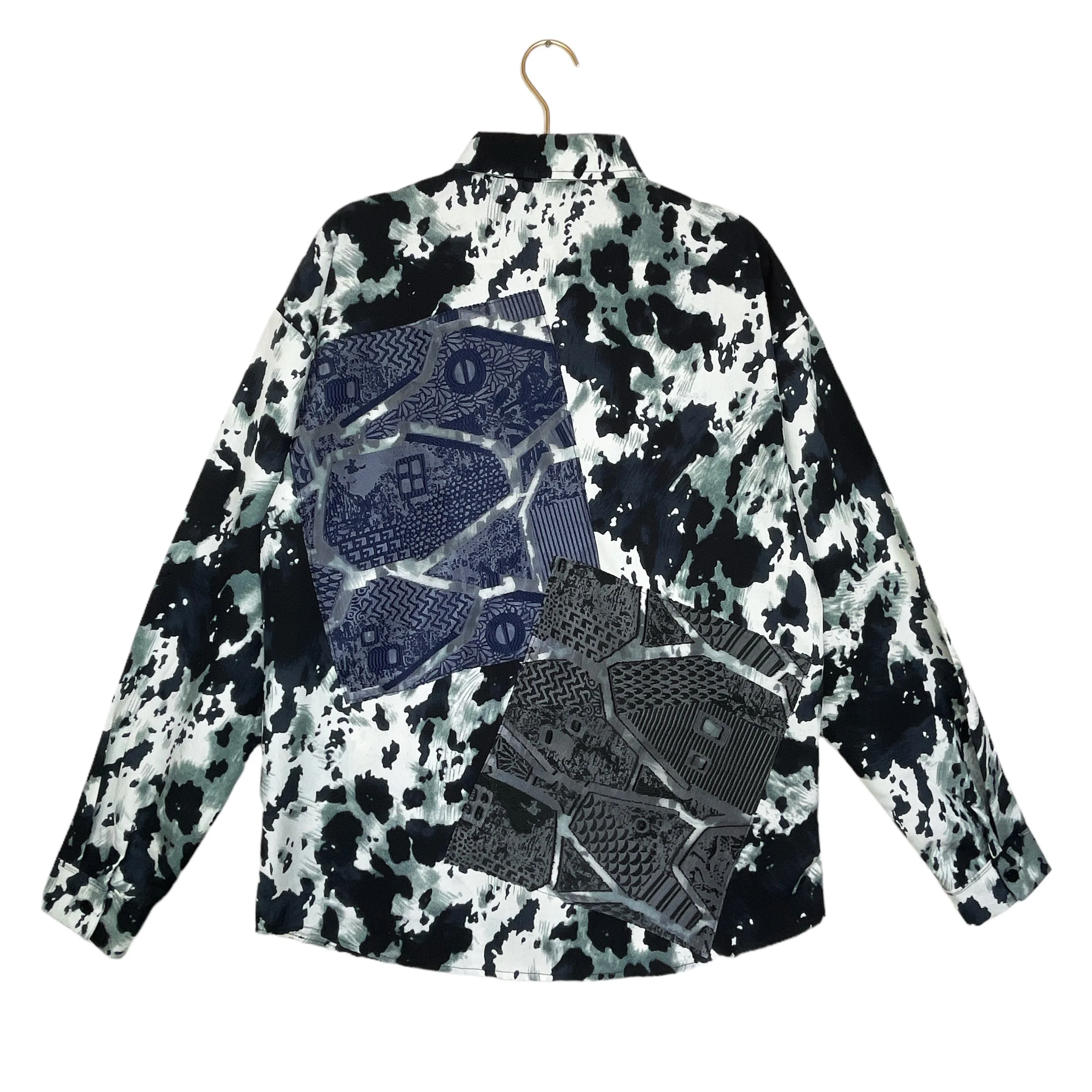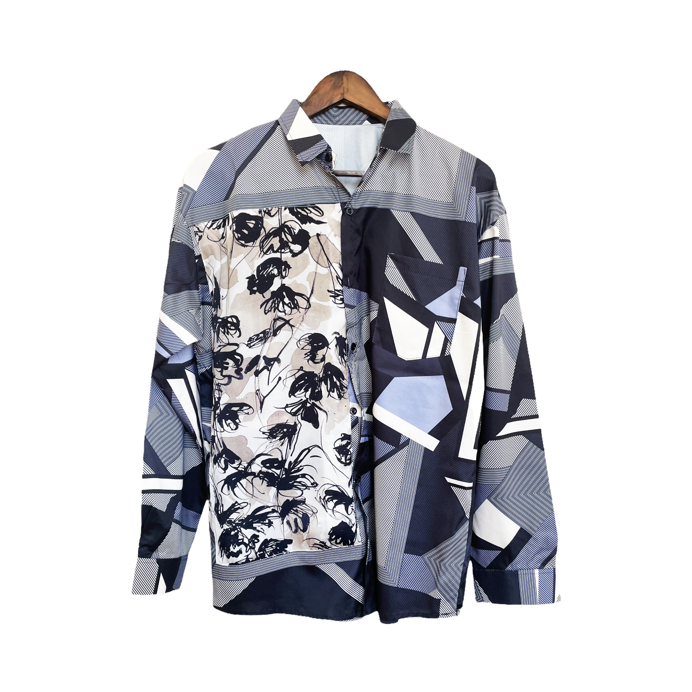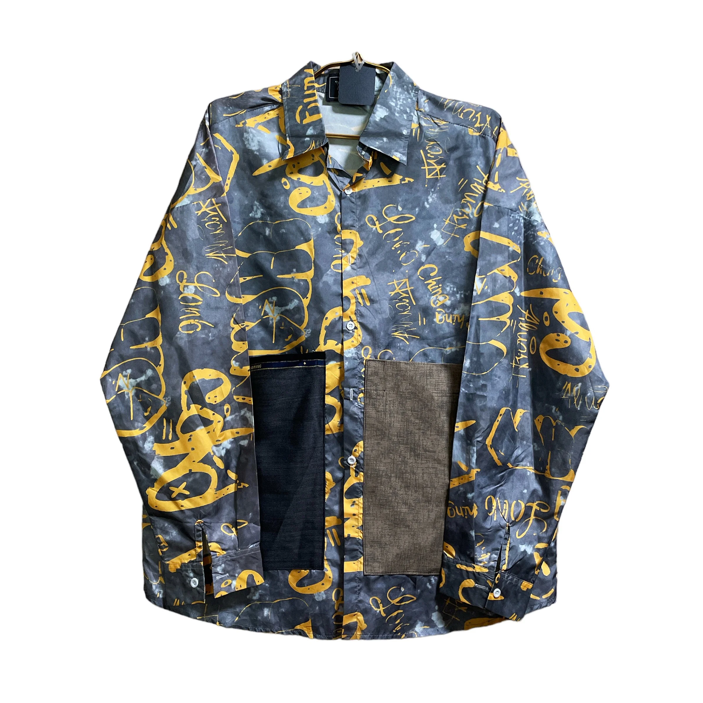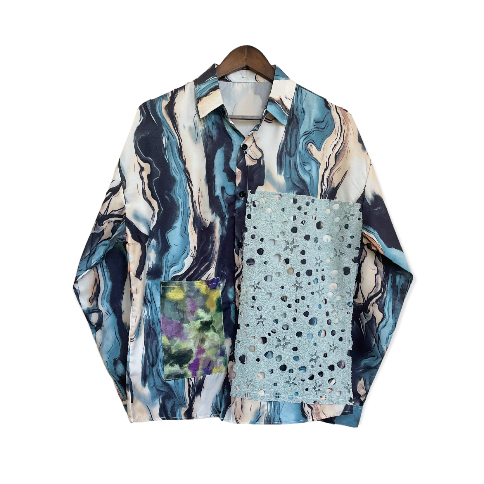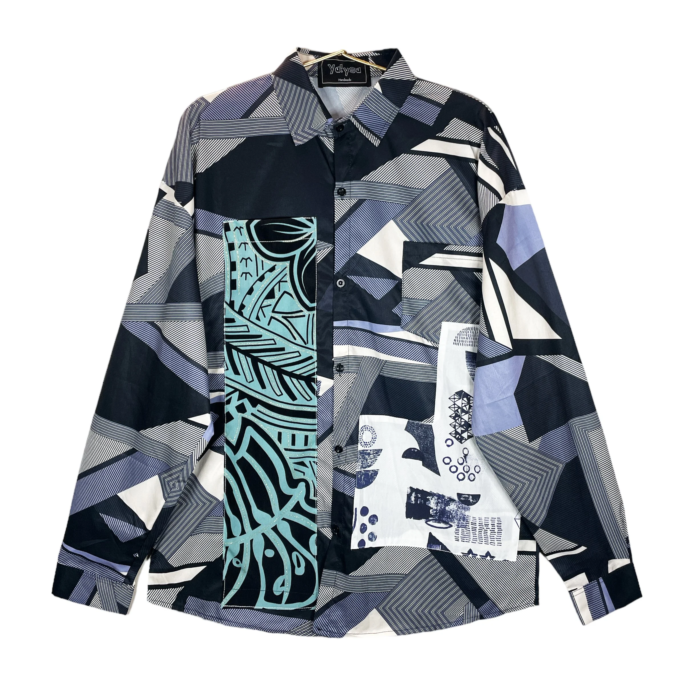 Brush Stroke Print Long Sleeves Handmade Navy Blue Shirt