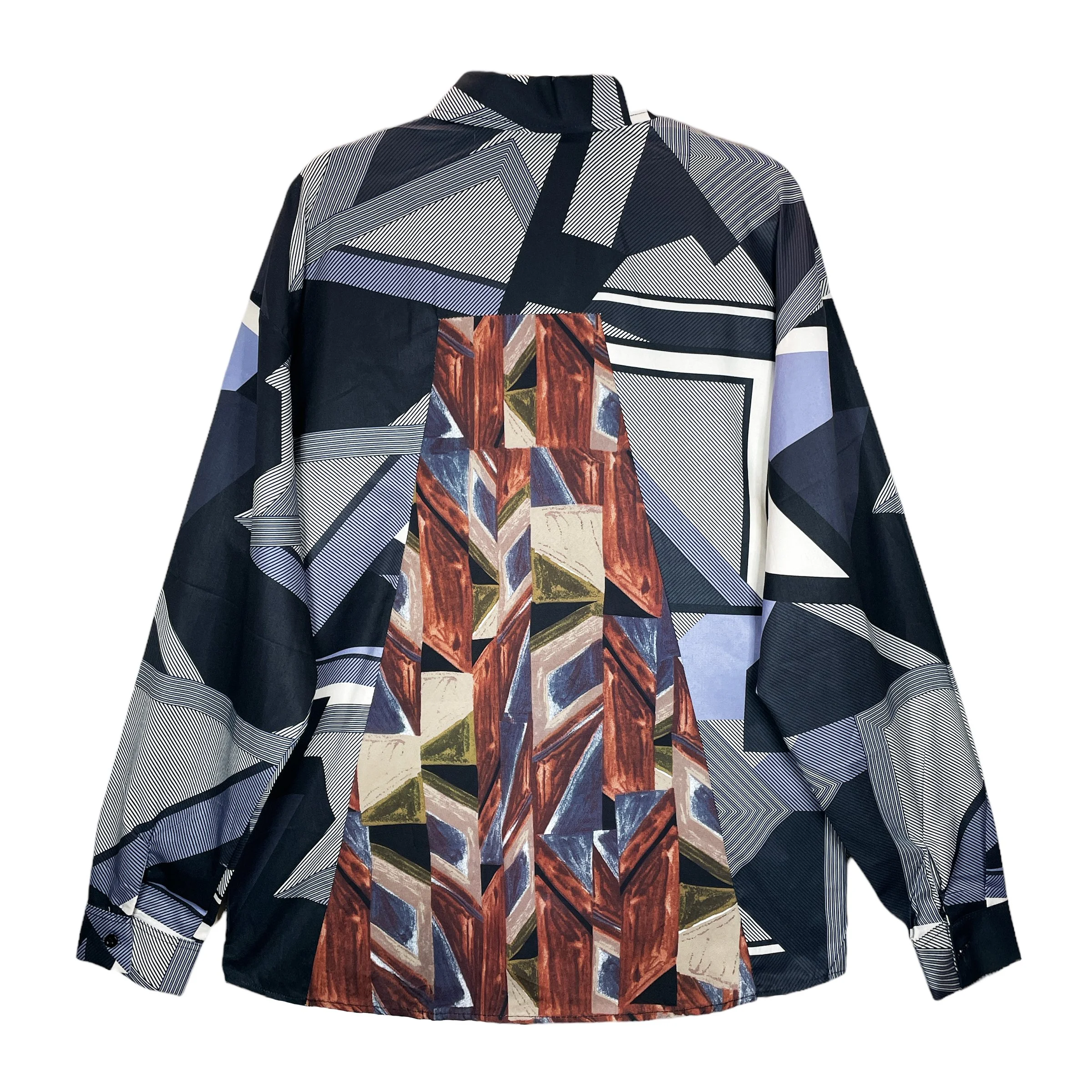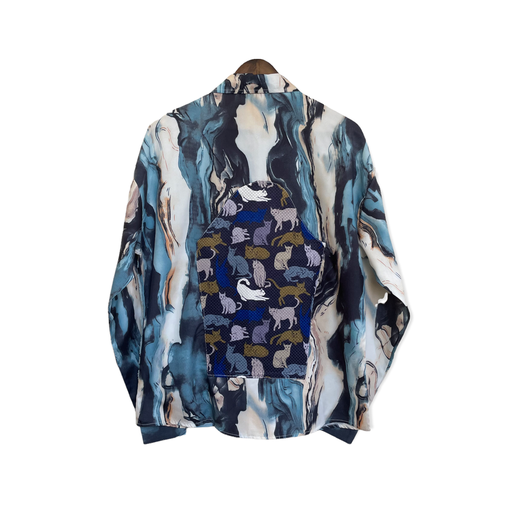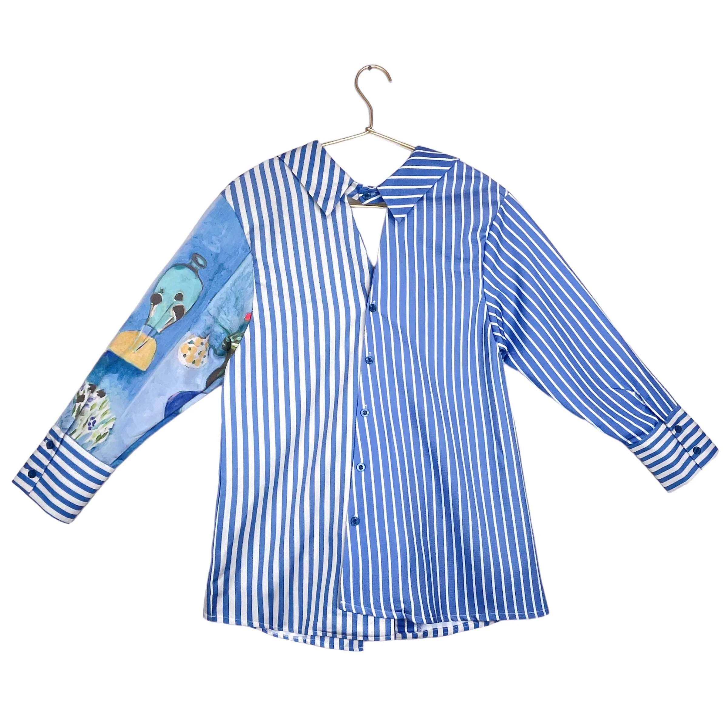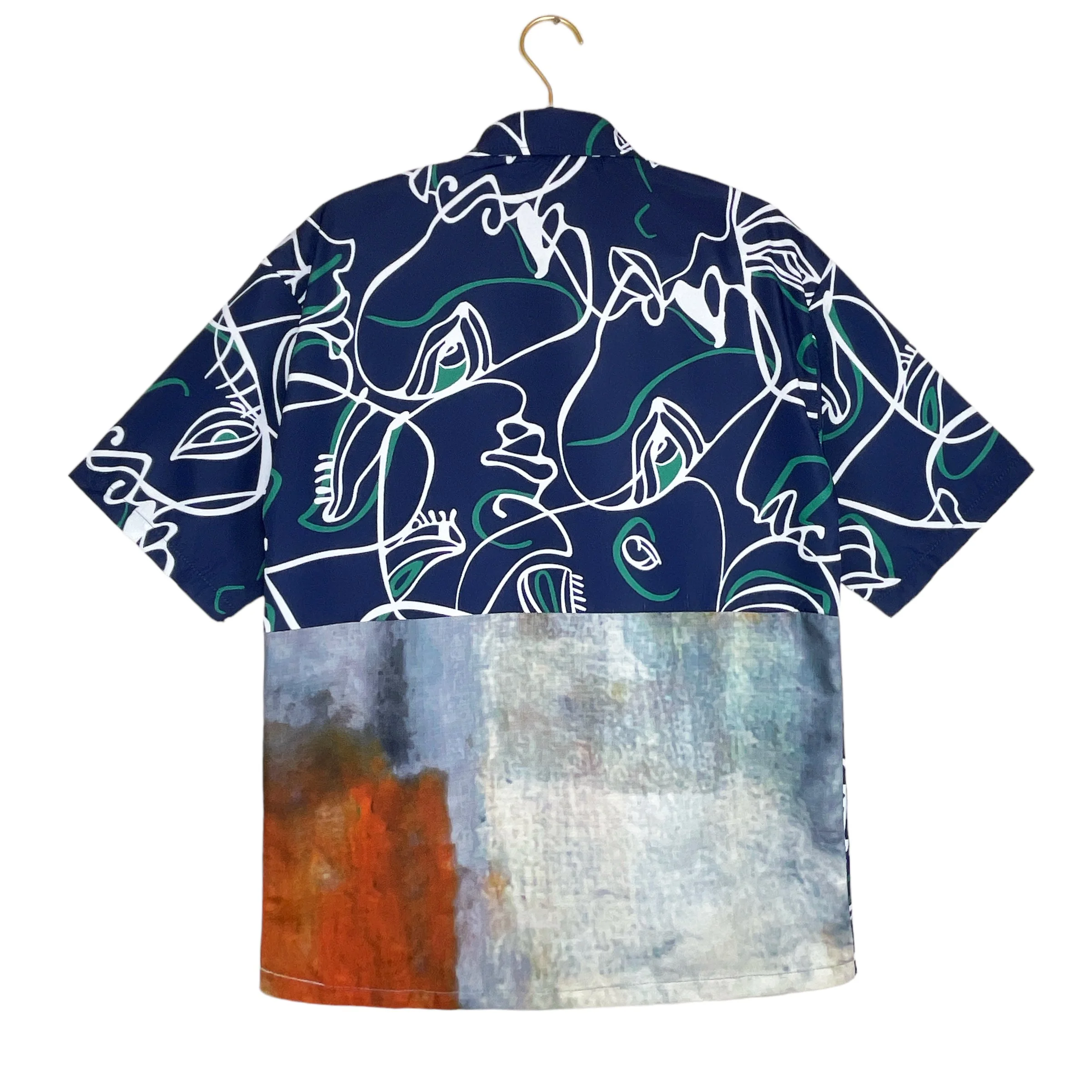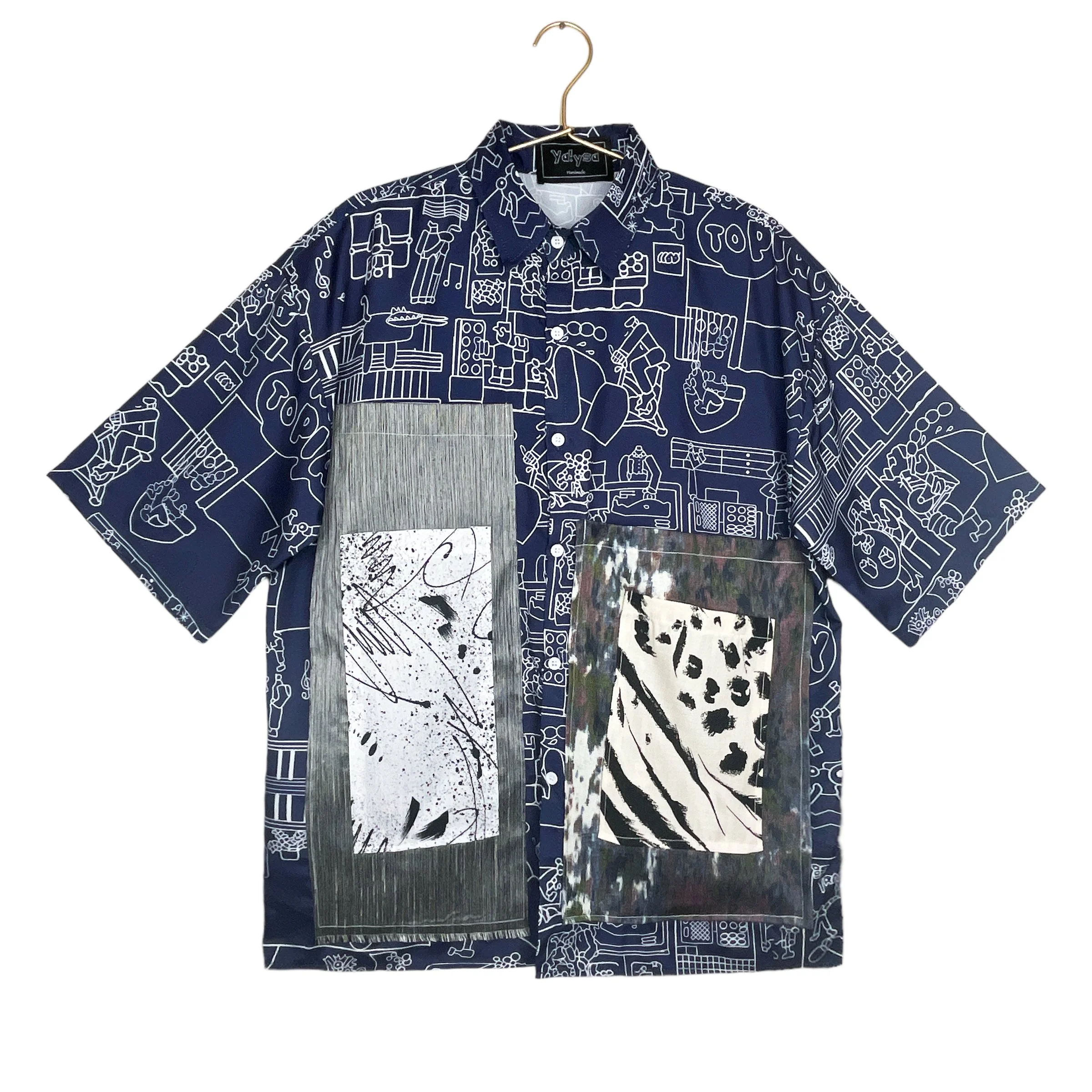 Brush Stroke Print Long Sleeves Handmade Navy Blue Shirt