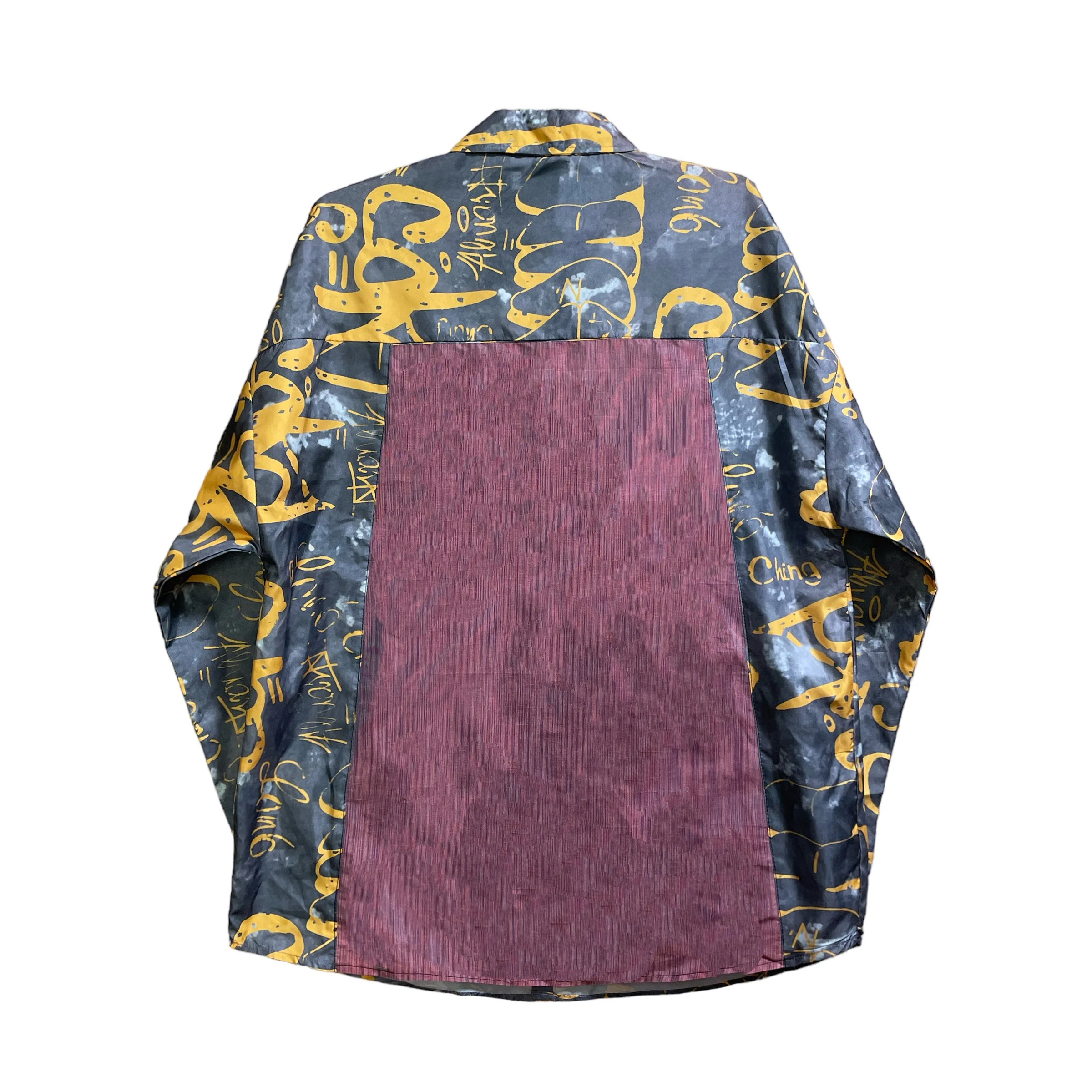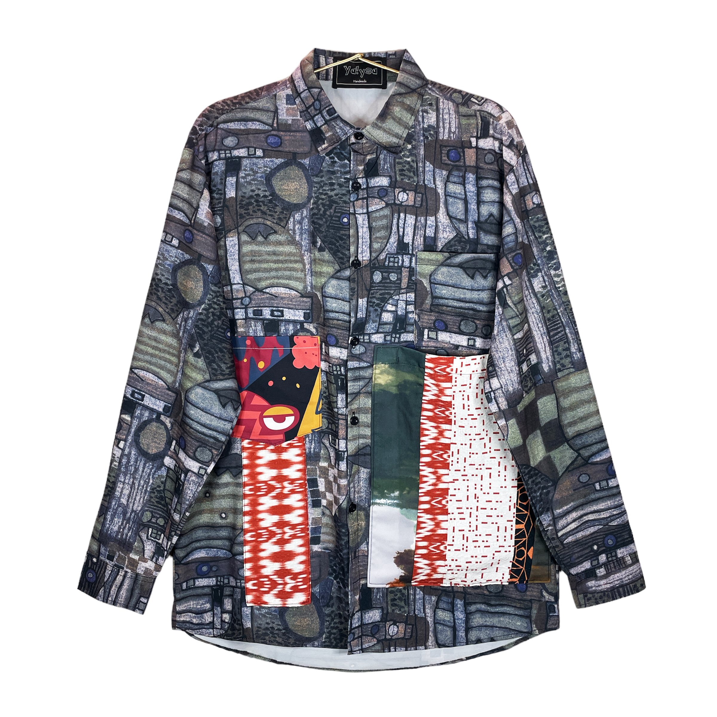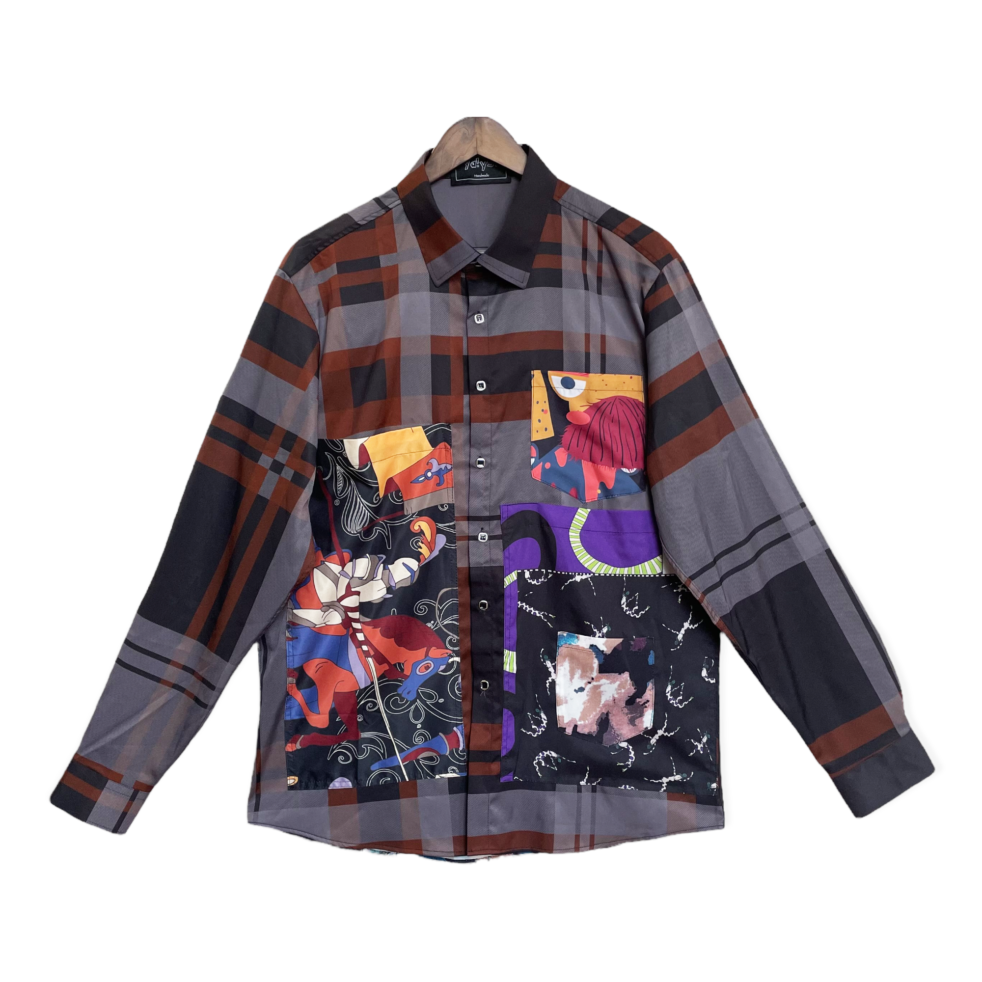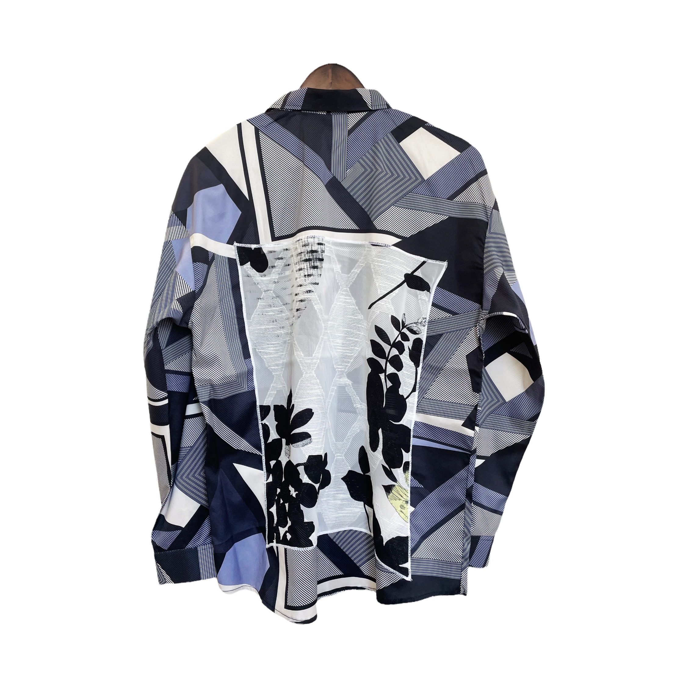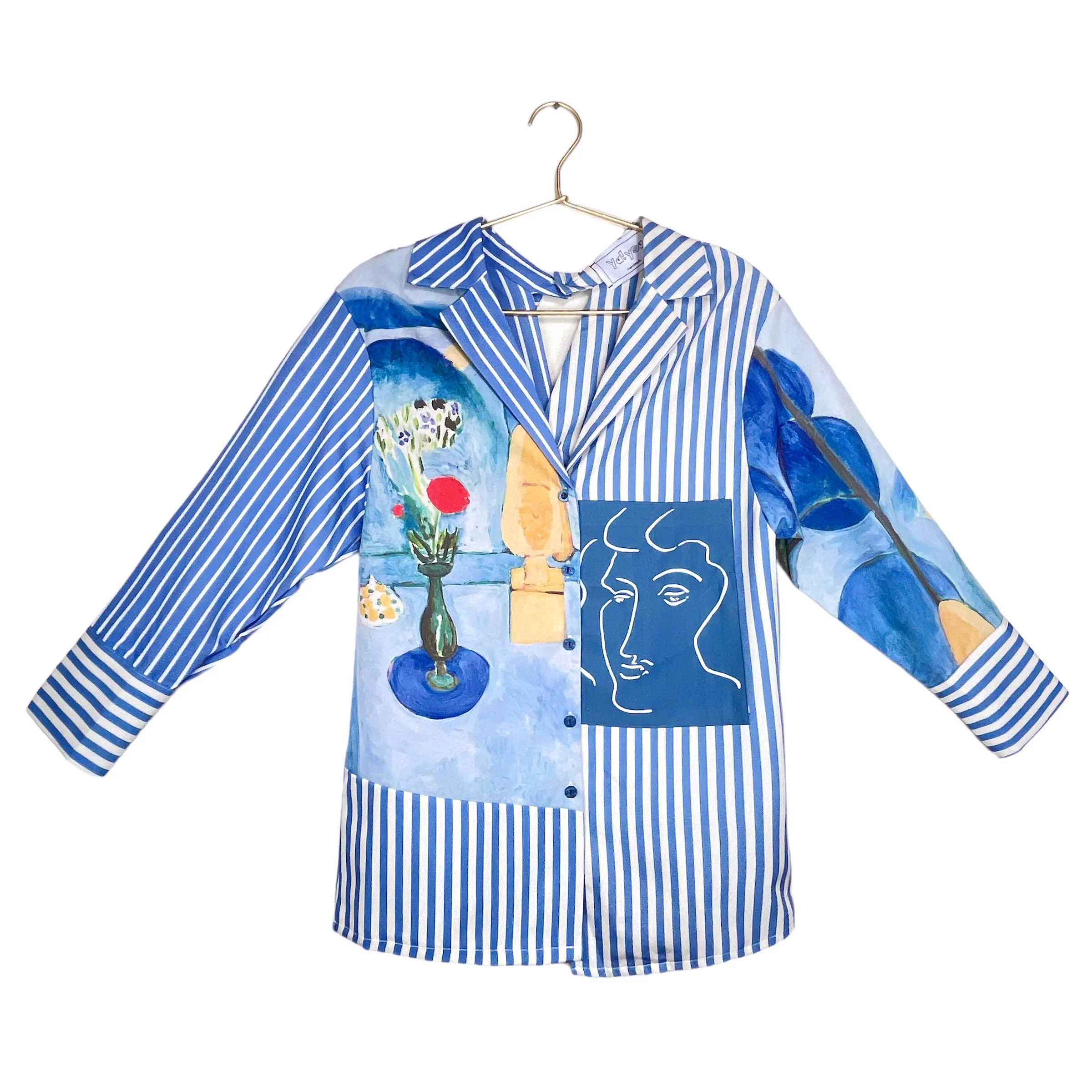 Brush Stroke Print Long Sleeves Handmade Navy Blue Shirt
