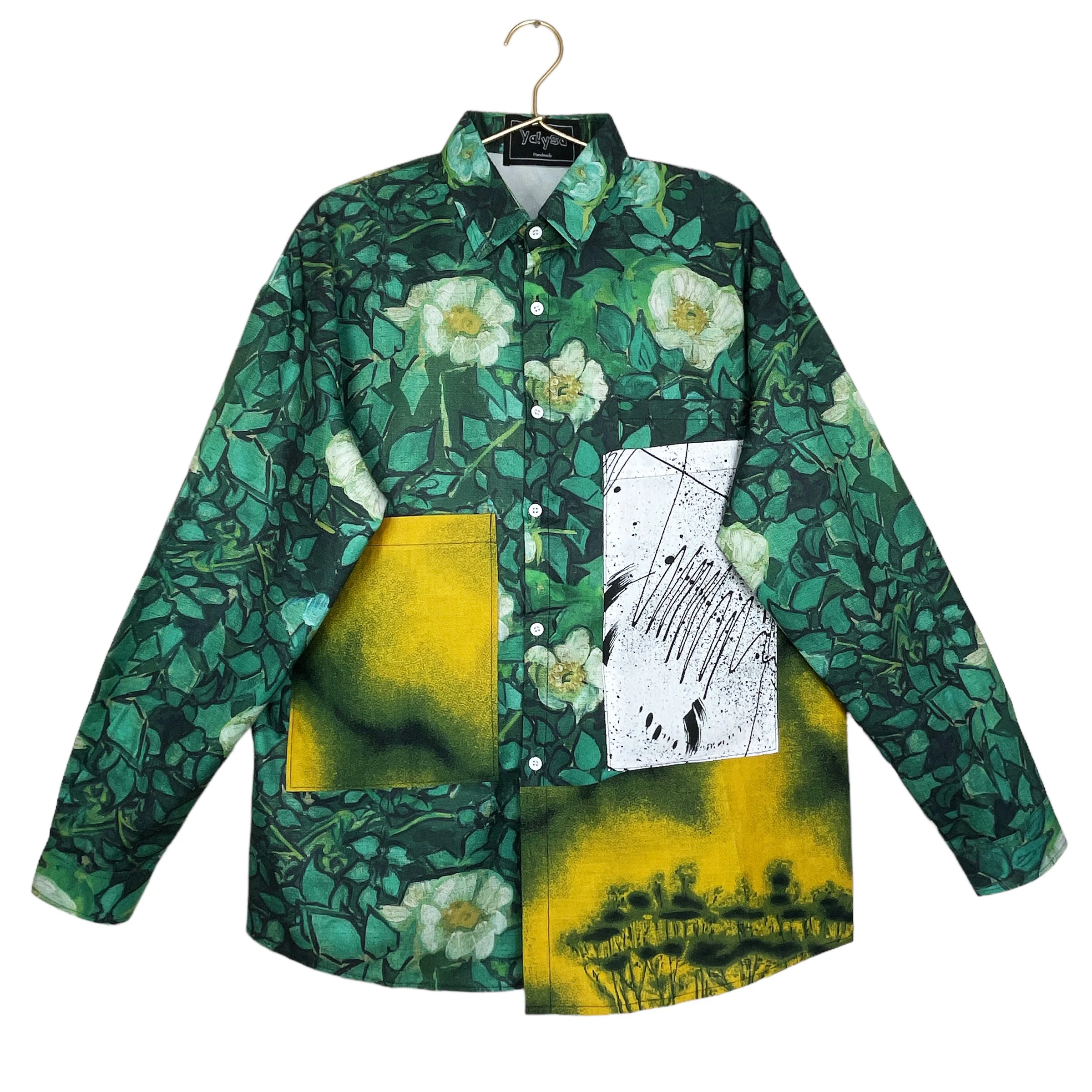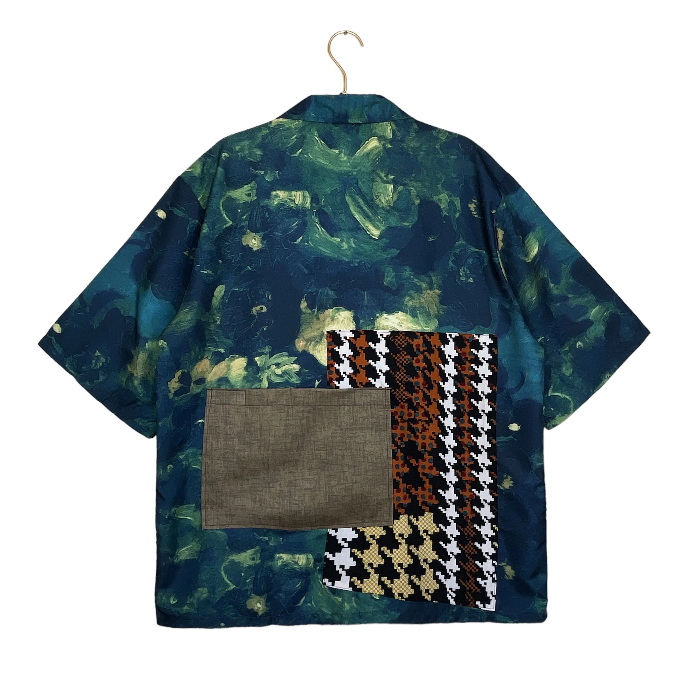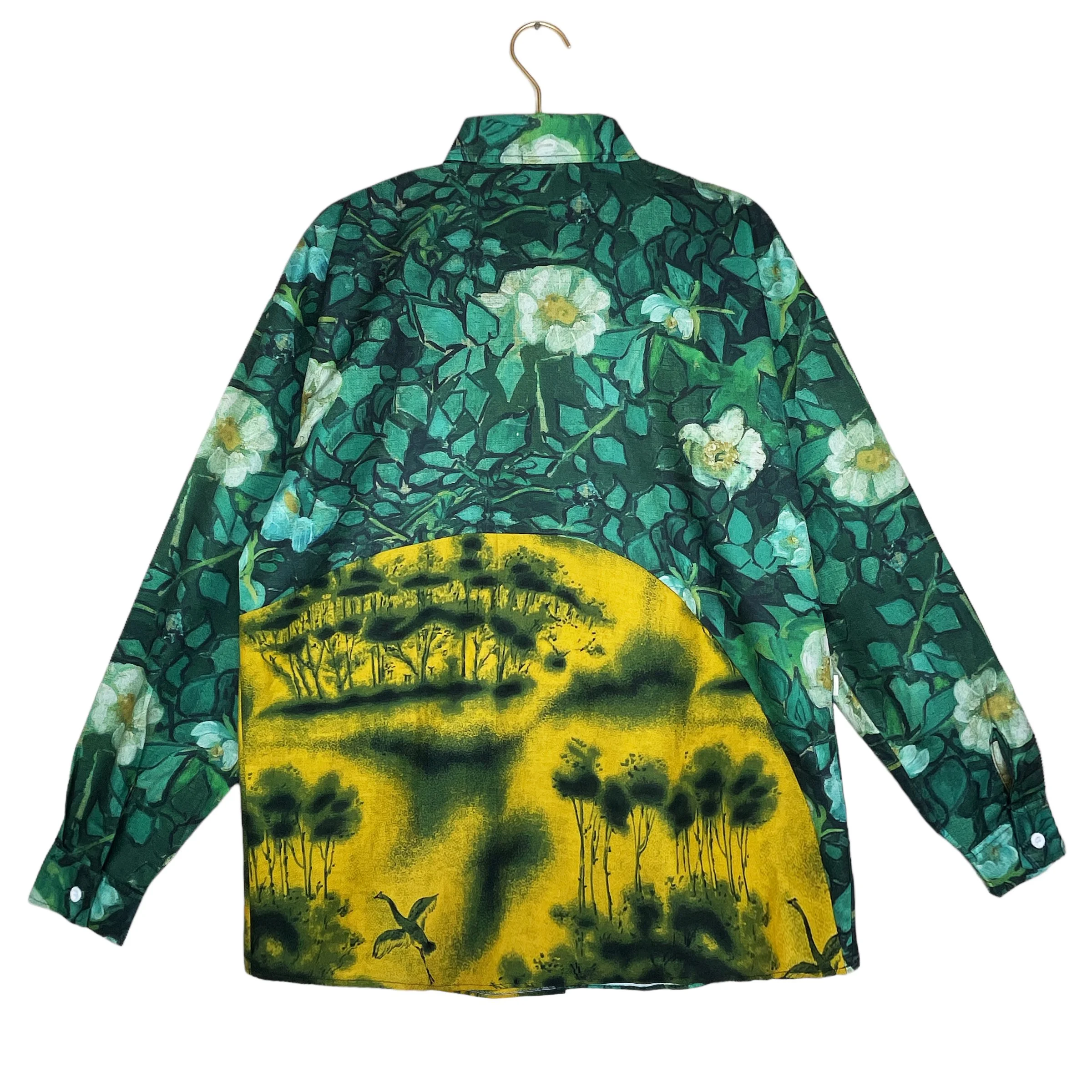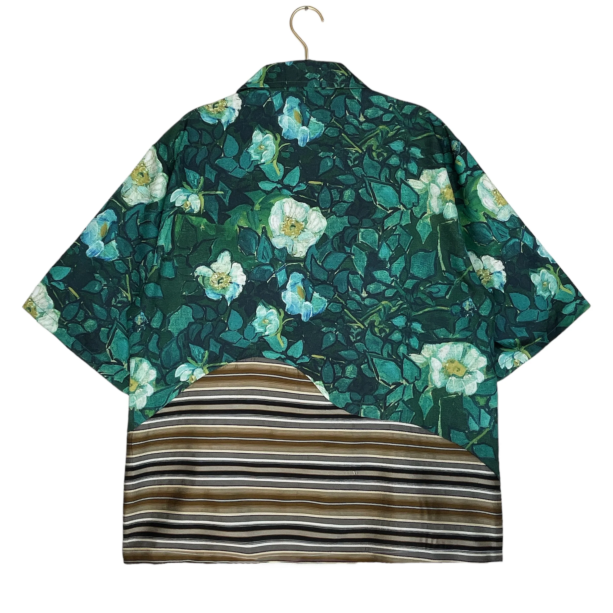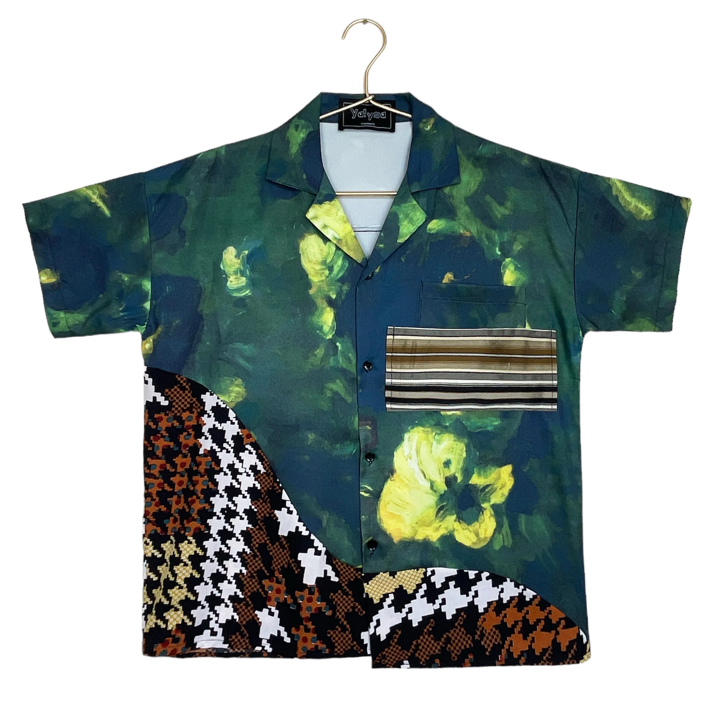 Monet's Garden Print Short Sleeves Handmade Green Shirt