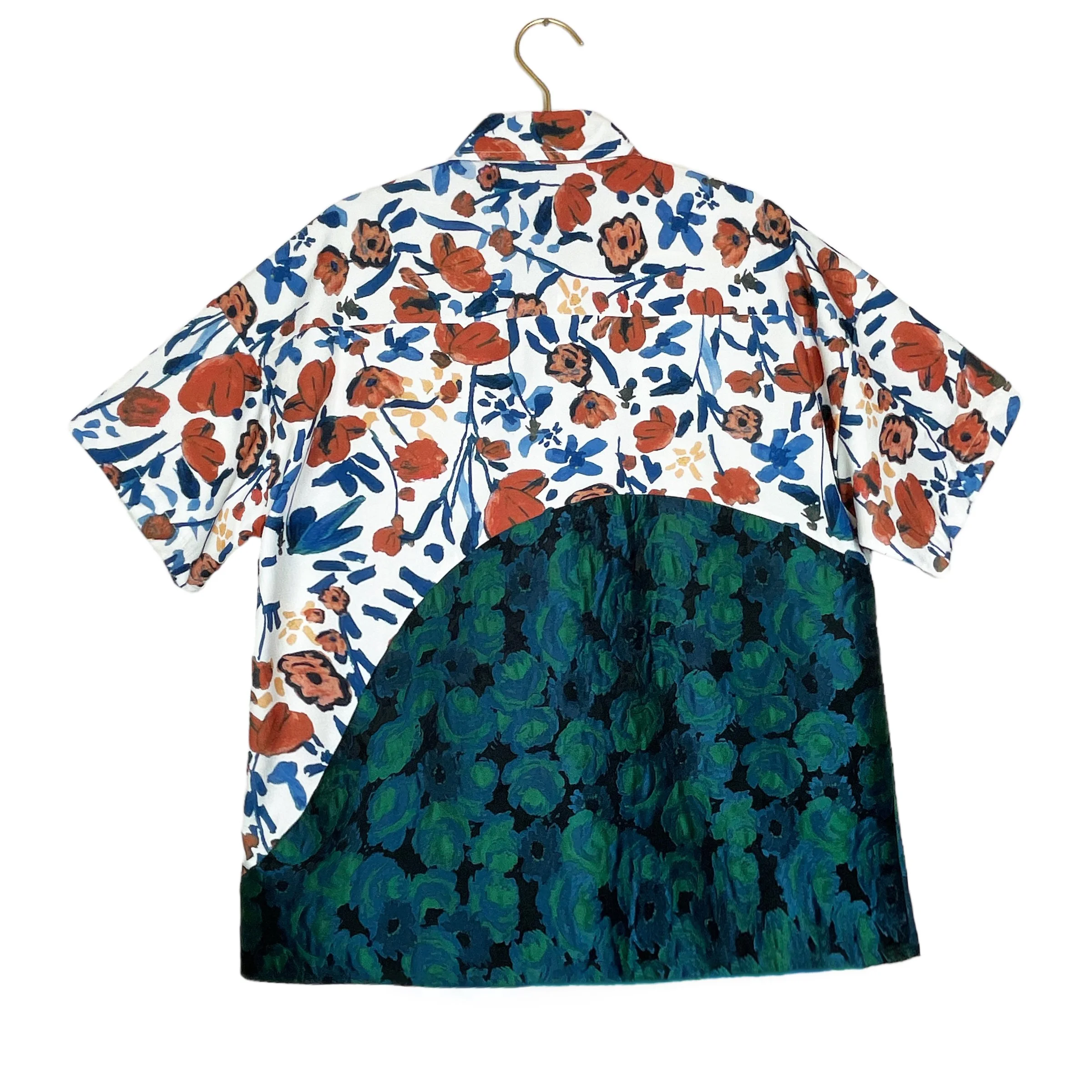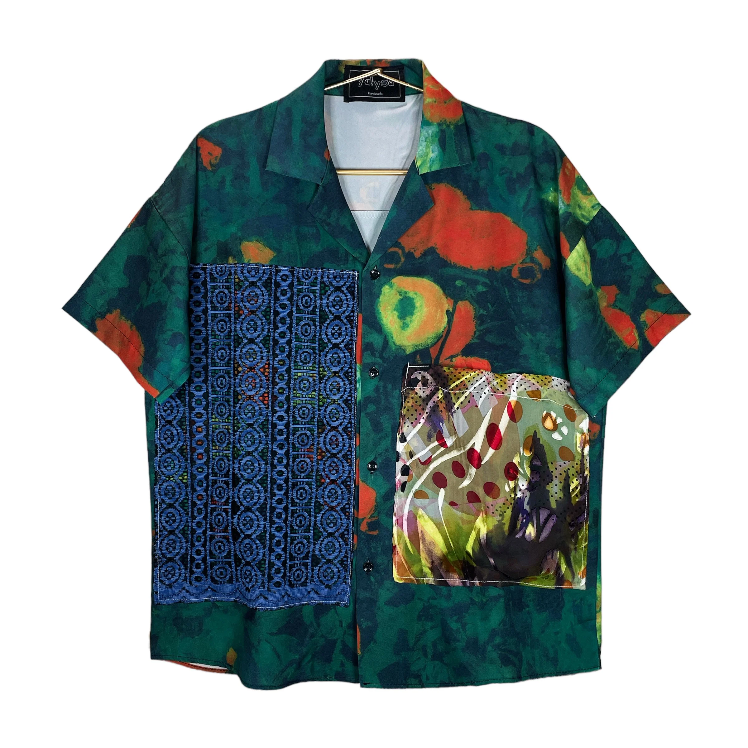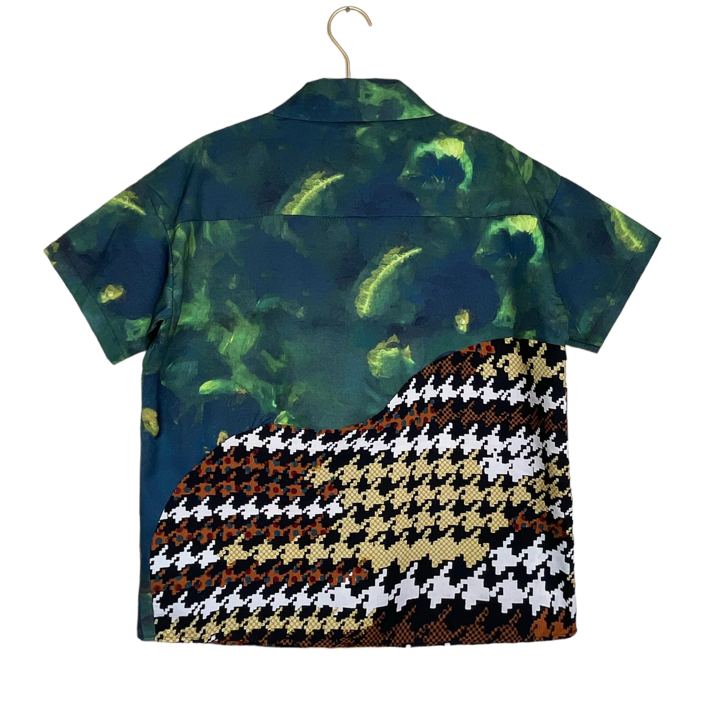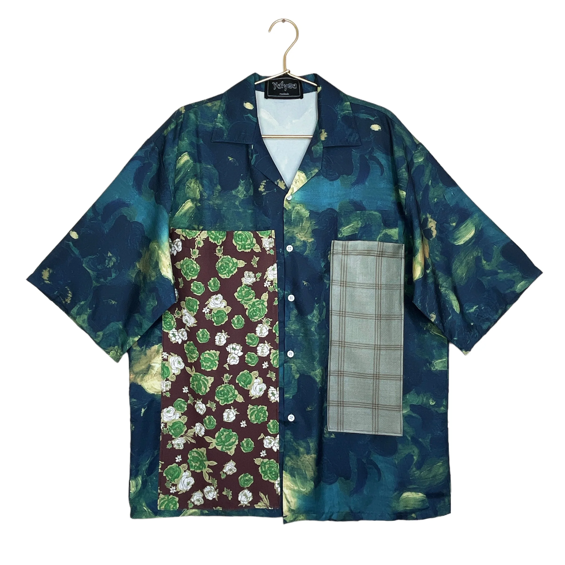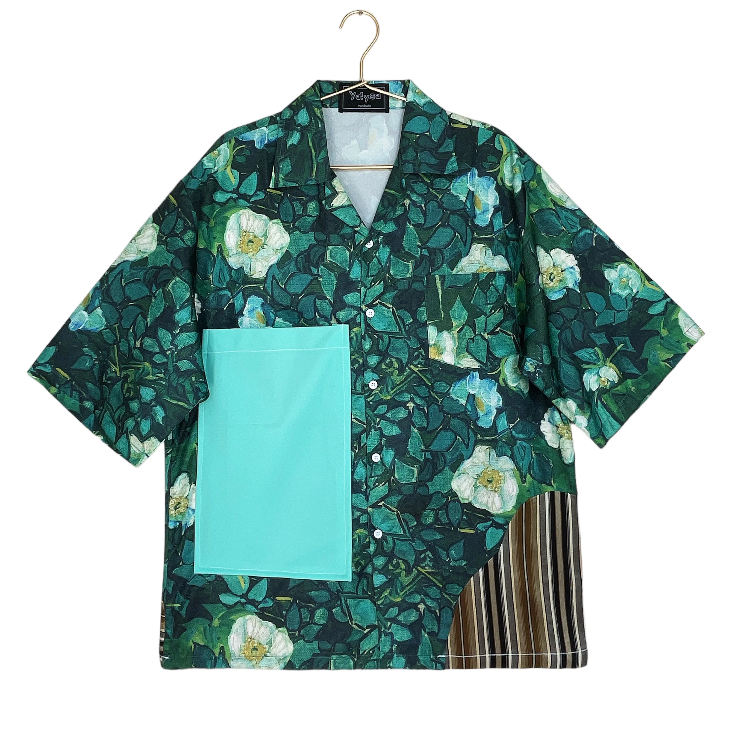 Monet's Garden Print Short Sleeves Handmade Green Shirt