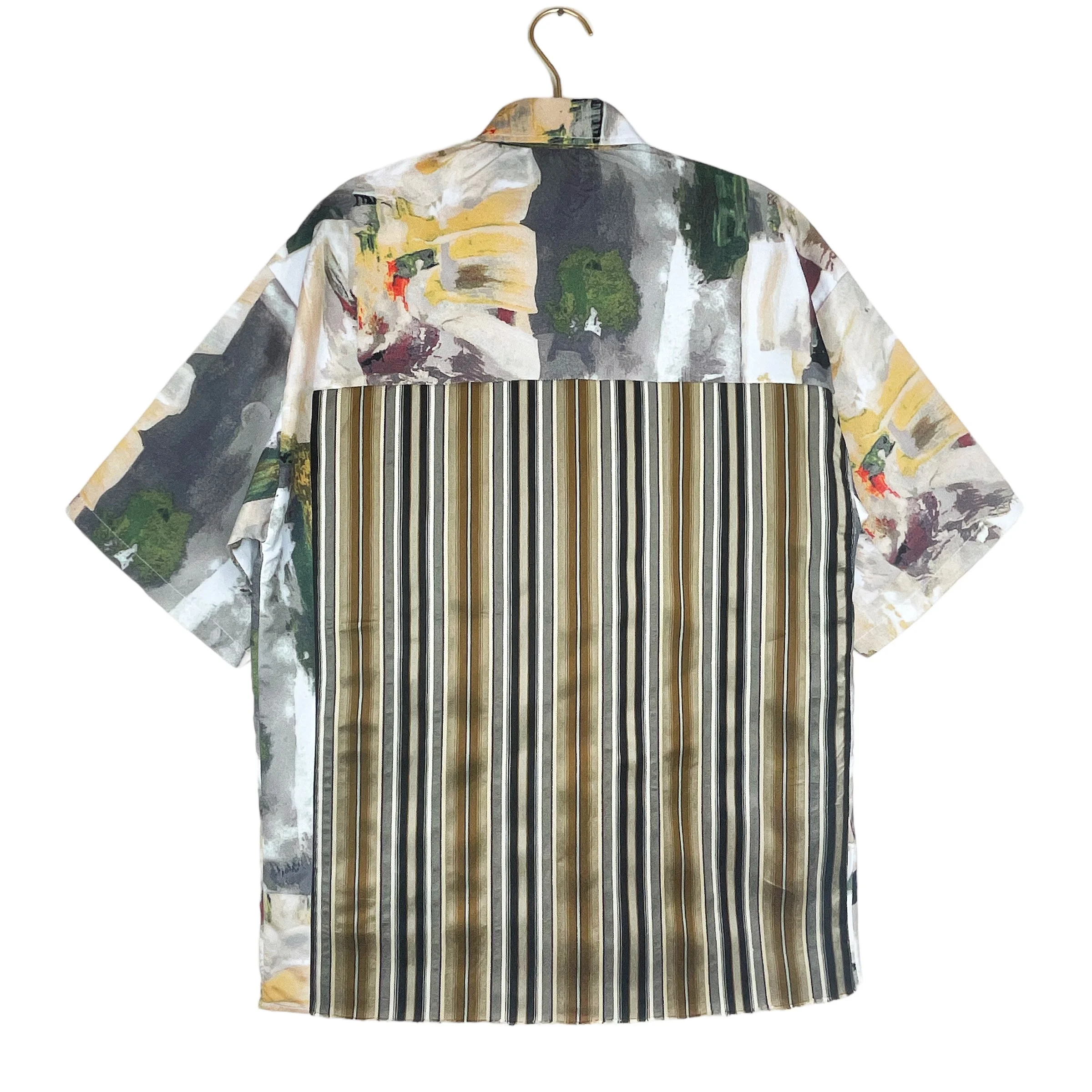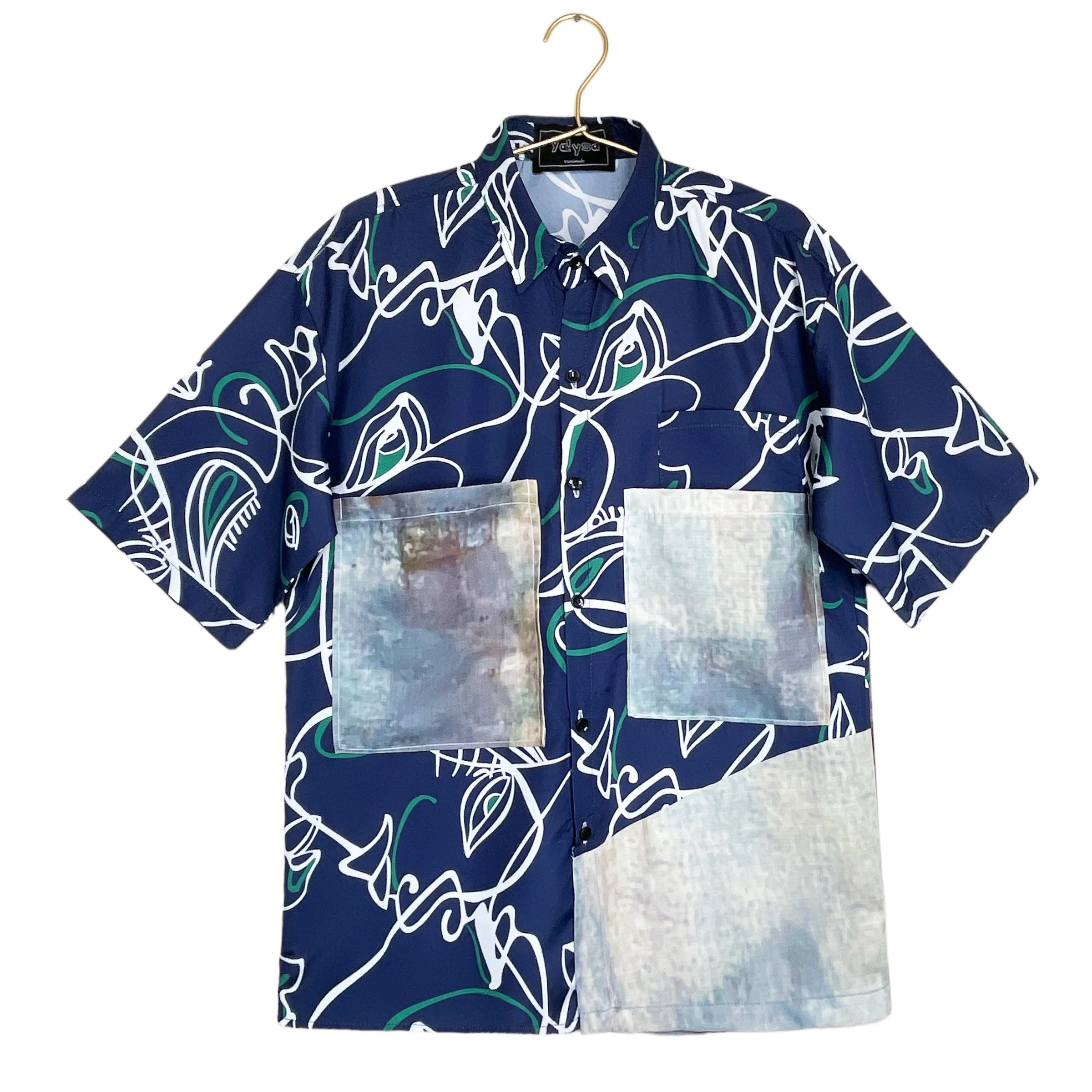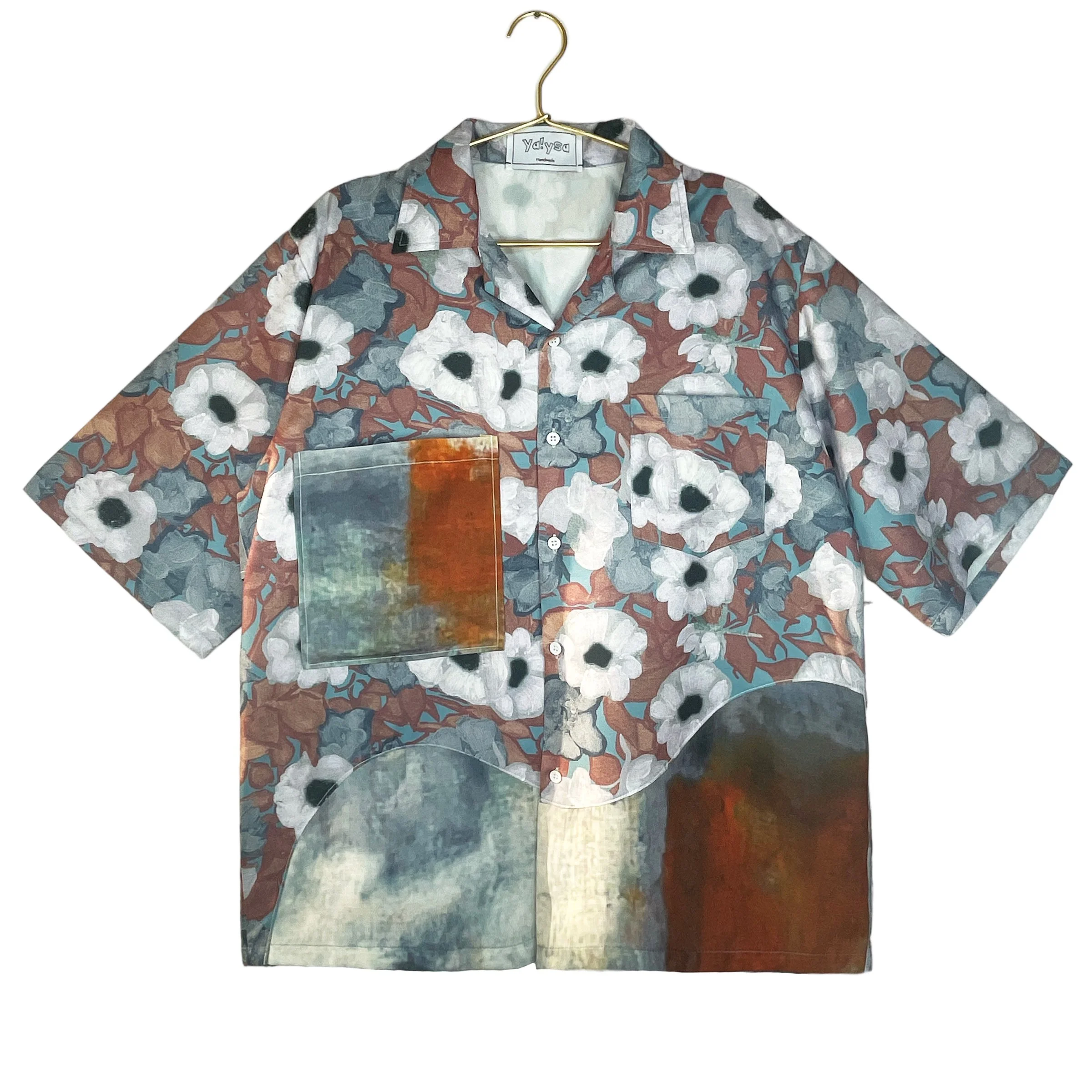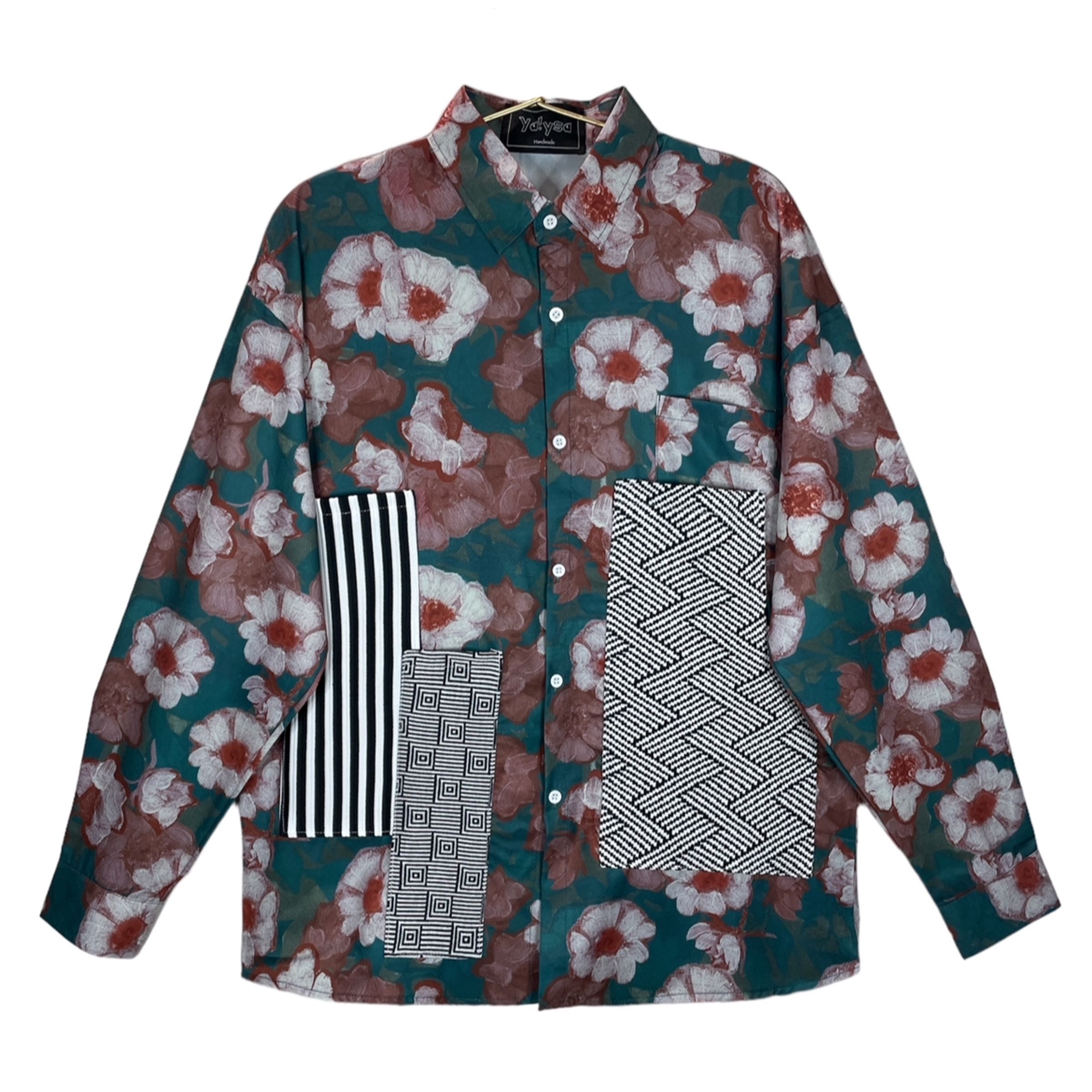 Monet's Garden Print Short Sleeves Handmade Green Shirt