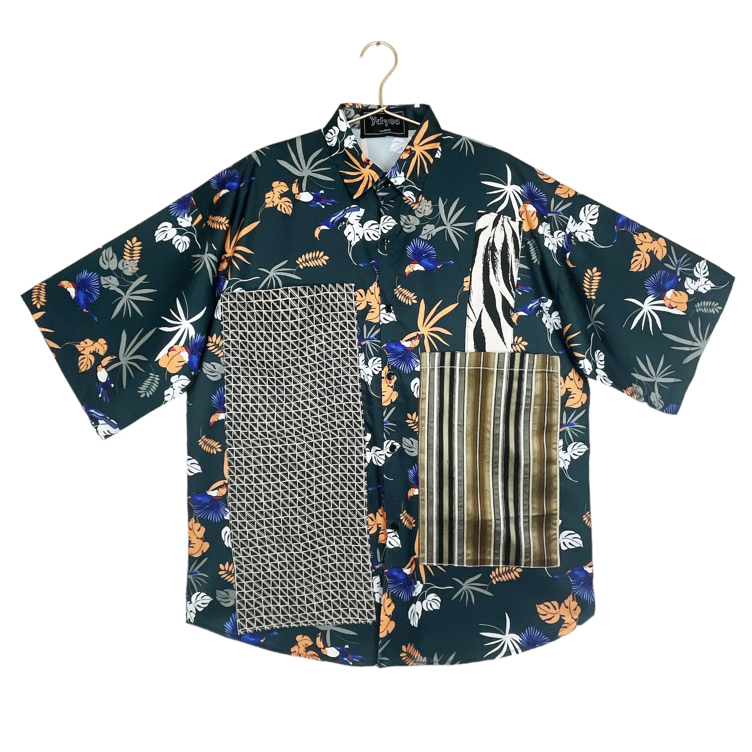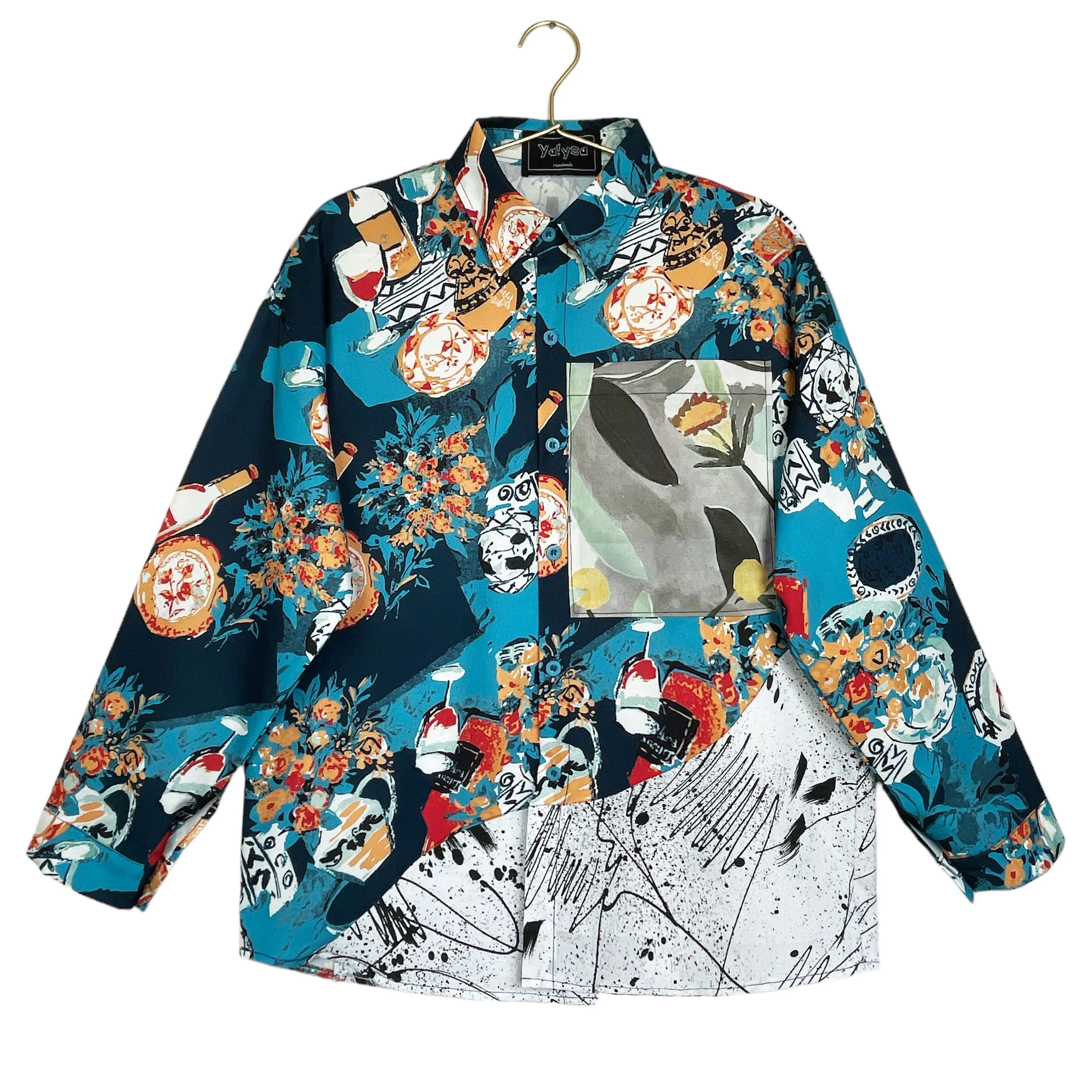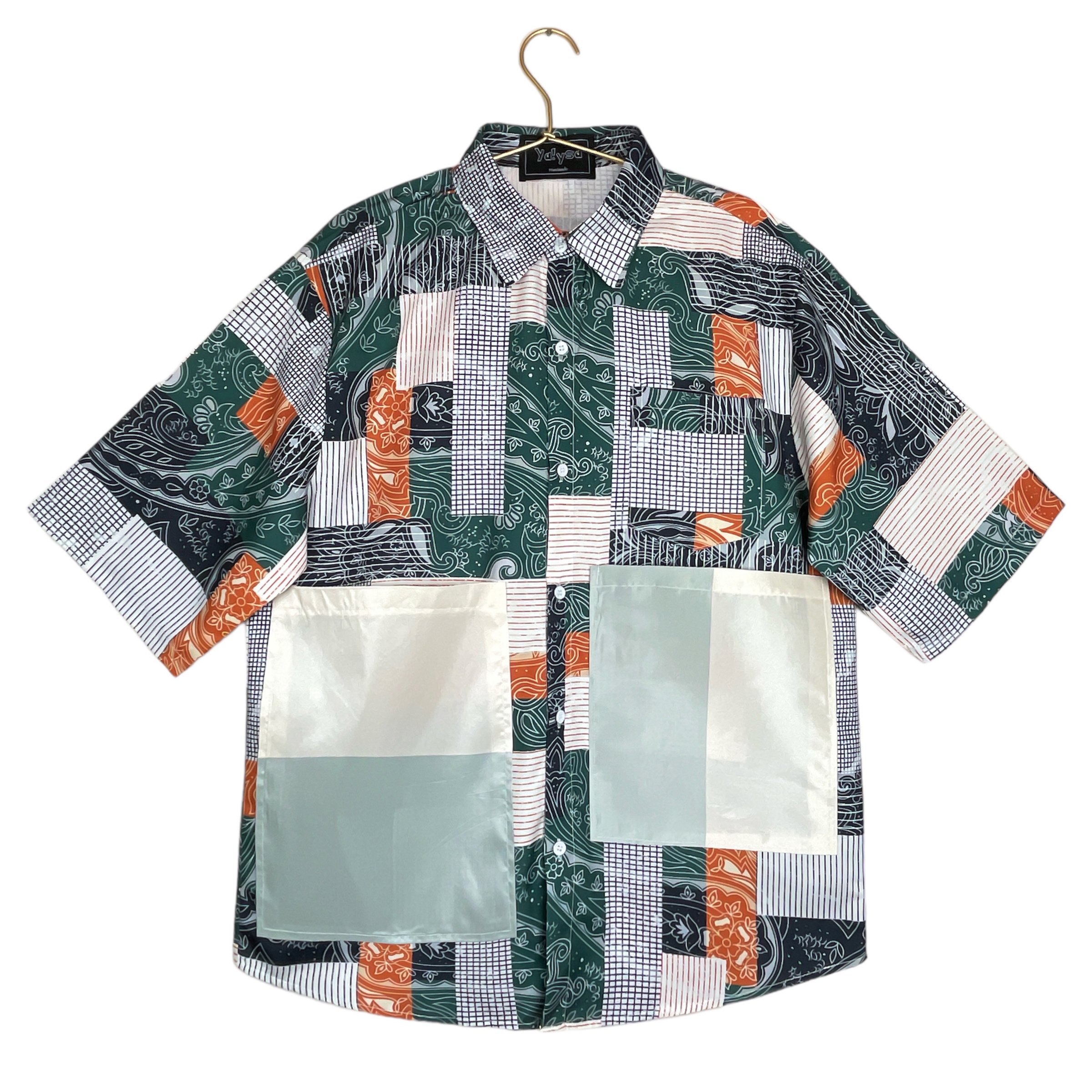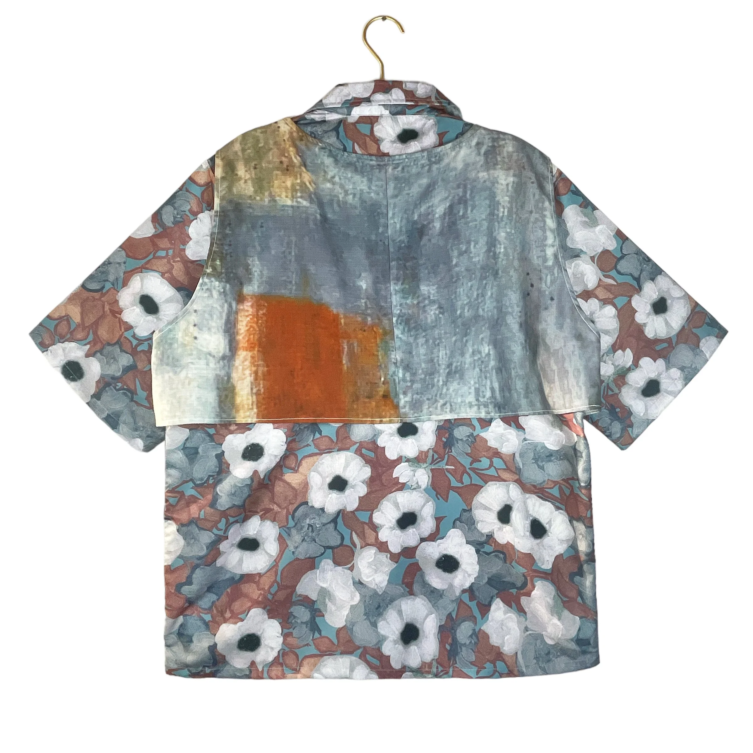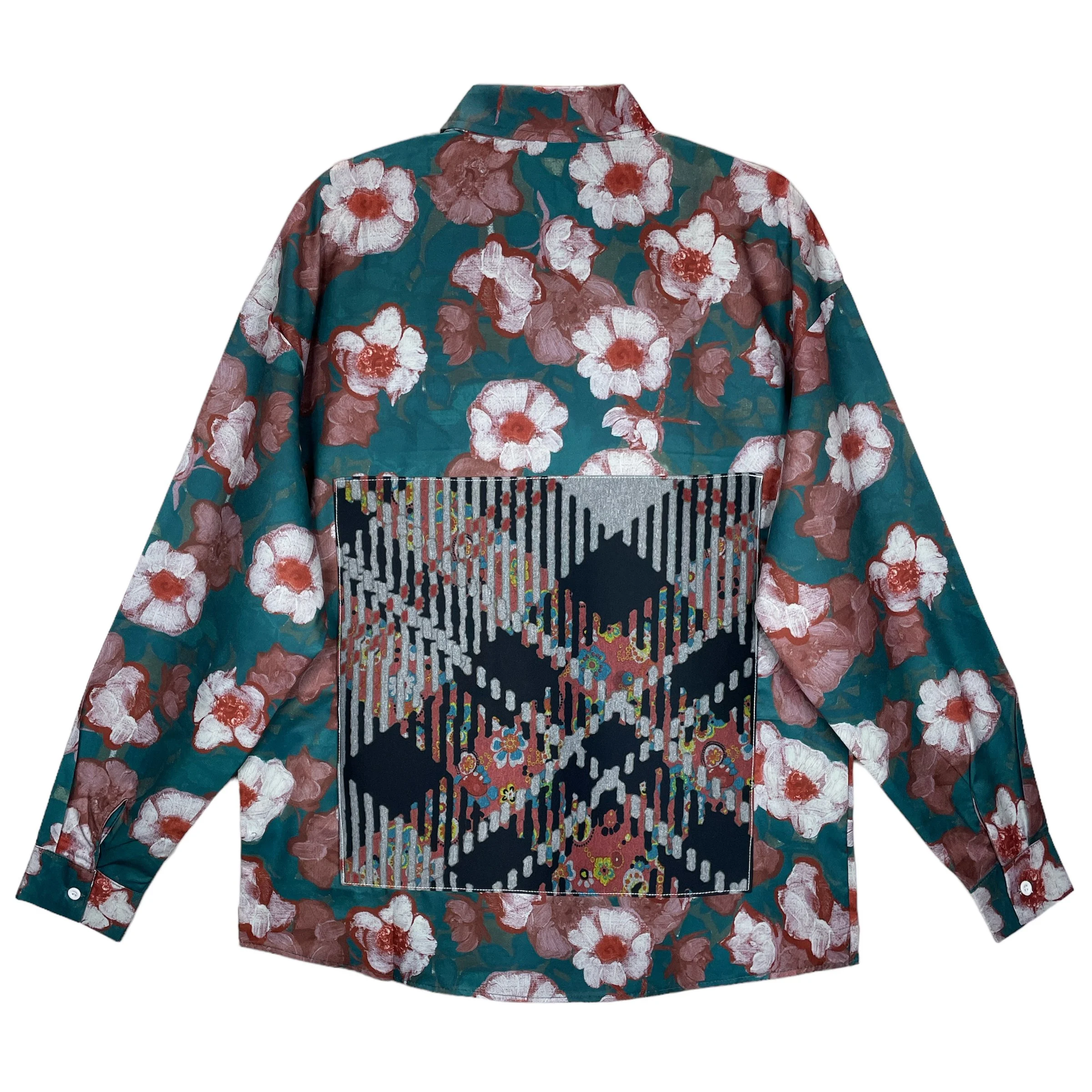 Monet's Garden Print Short Sleeves Handmade Green Shirt
