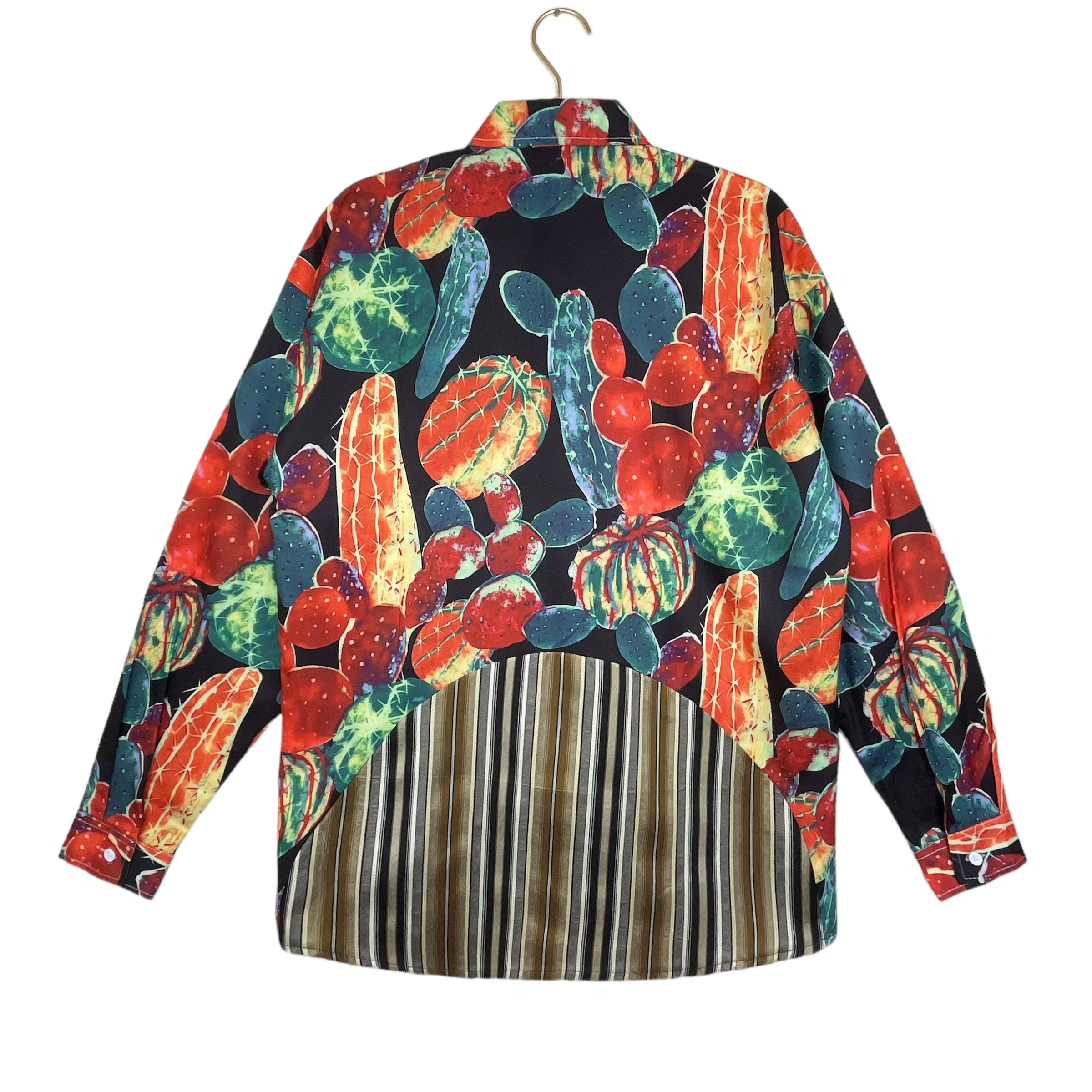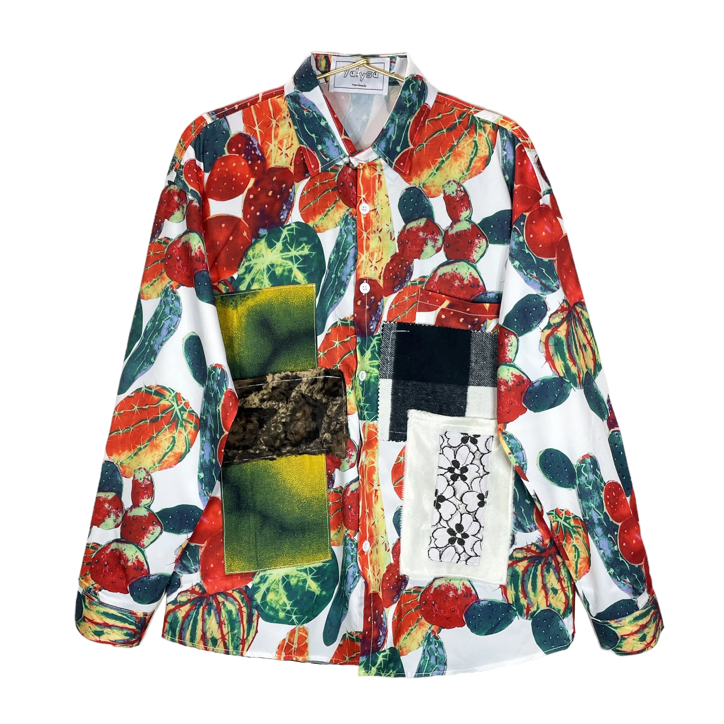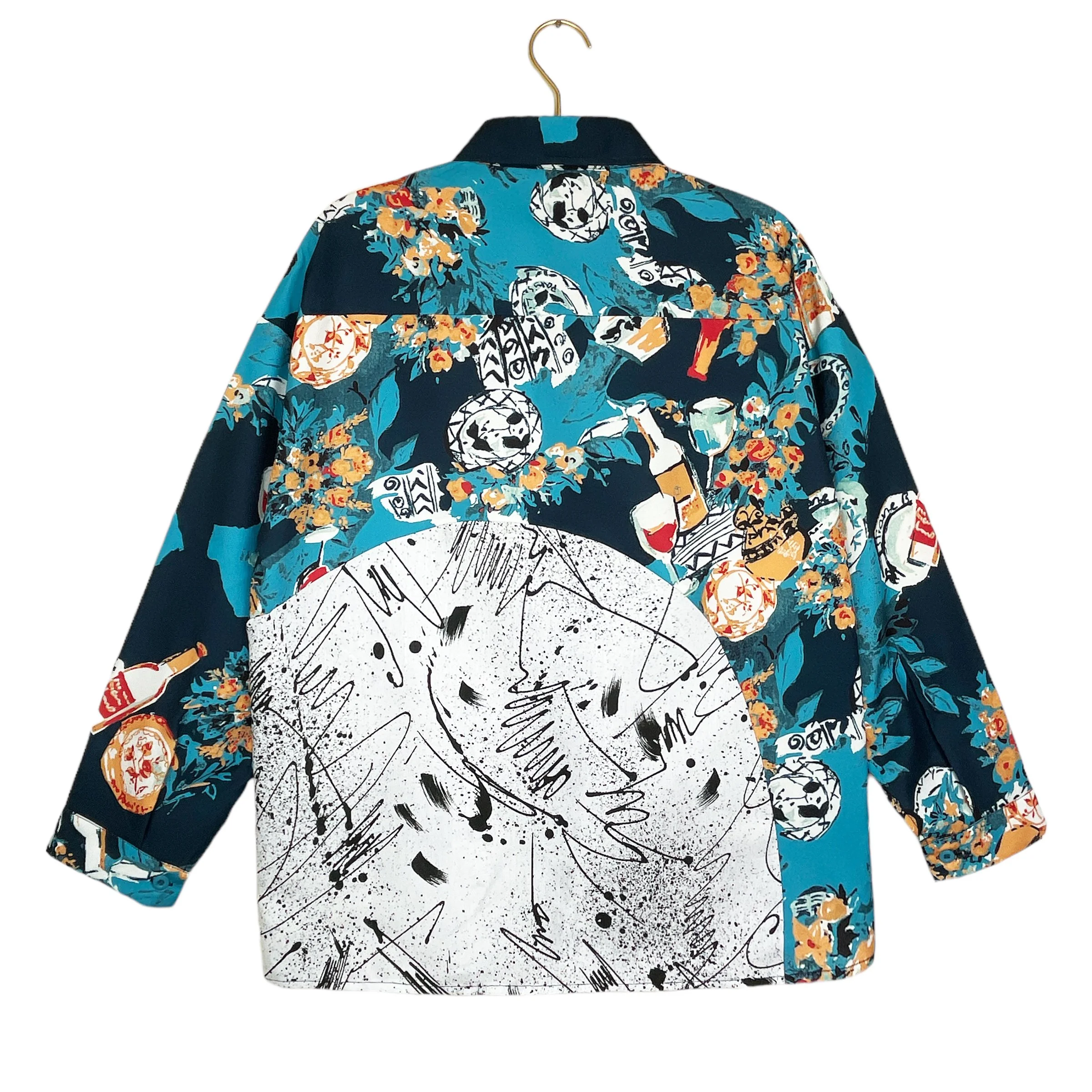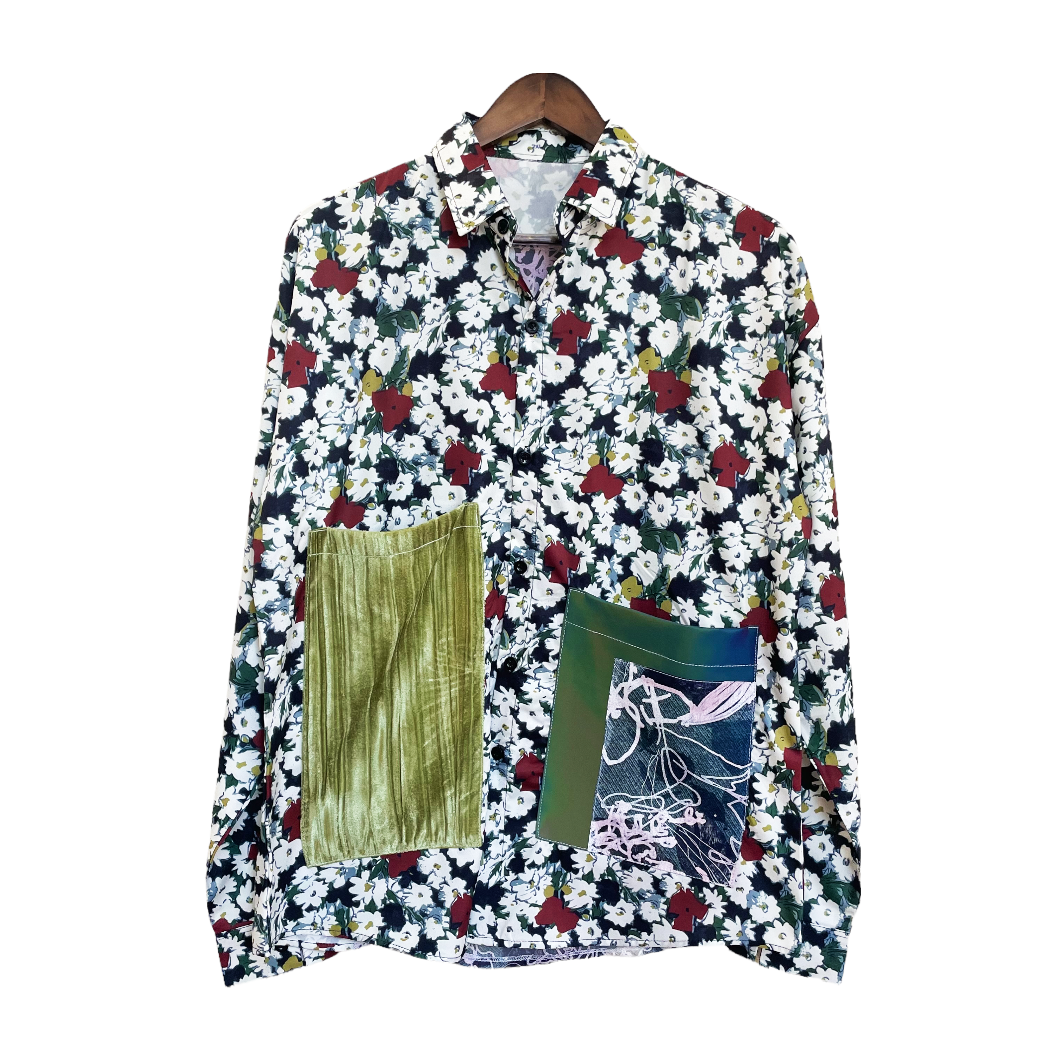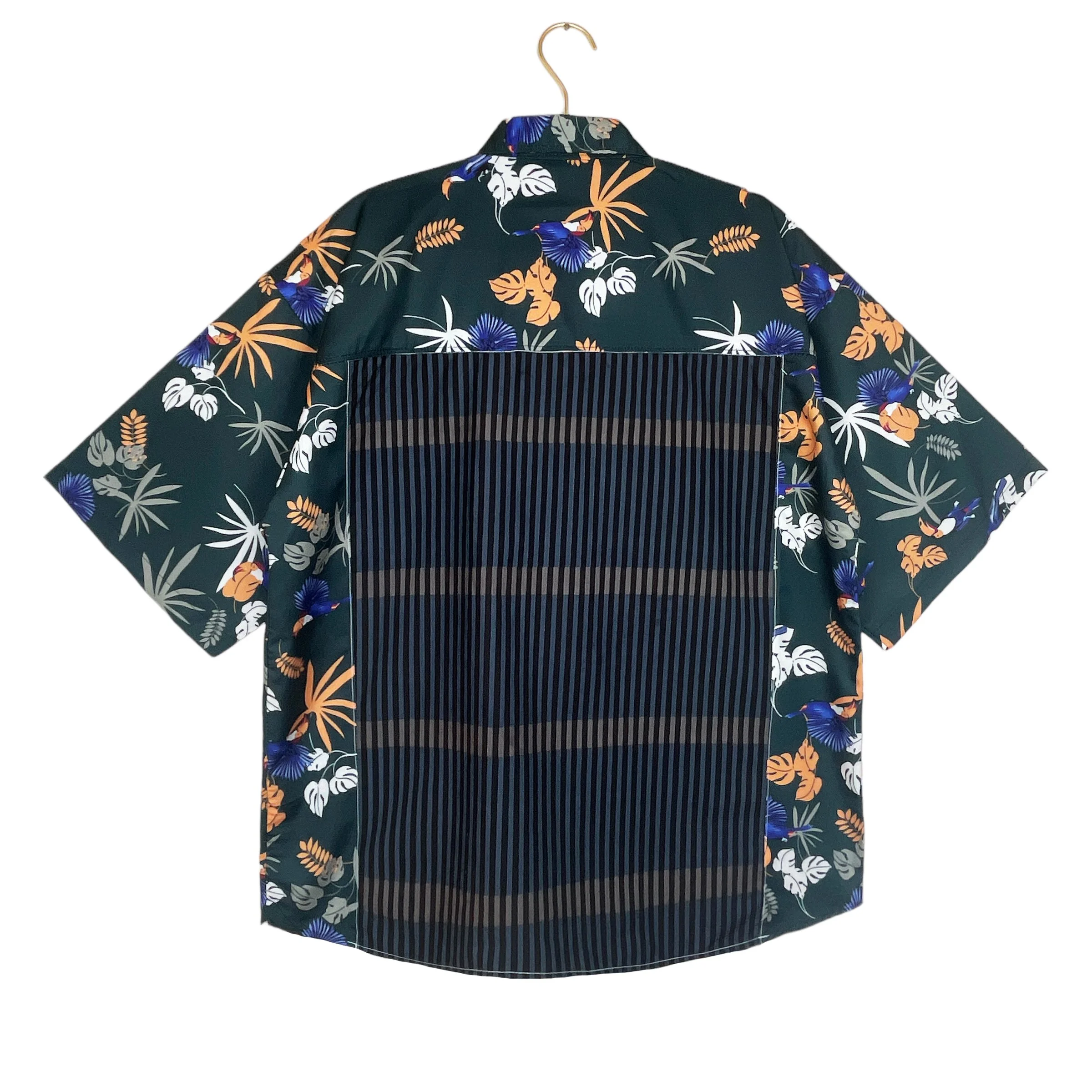 Monet's Garden Print Short Sleeves Handmade Green Shirt