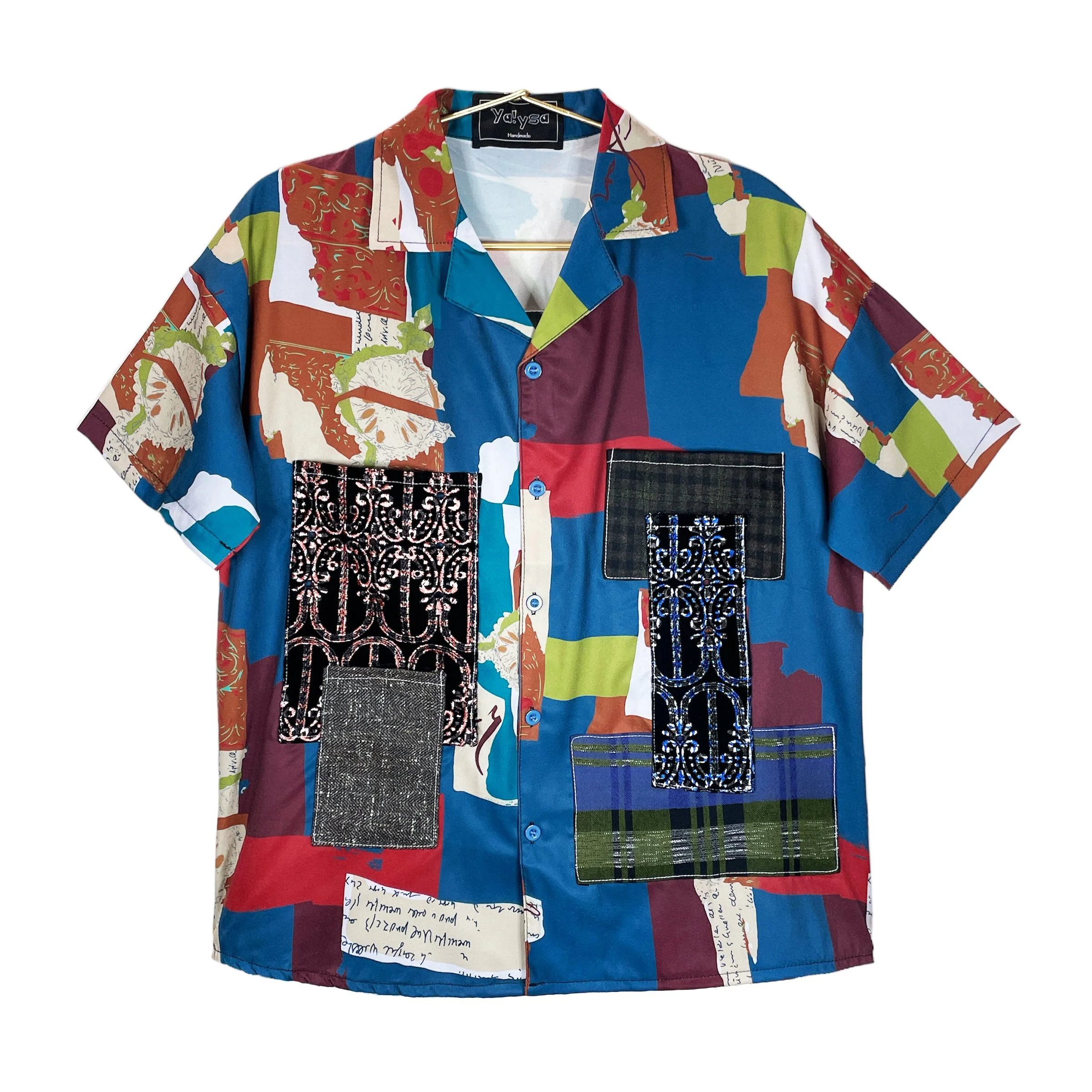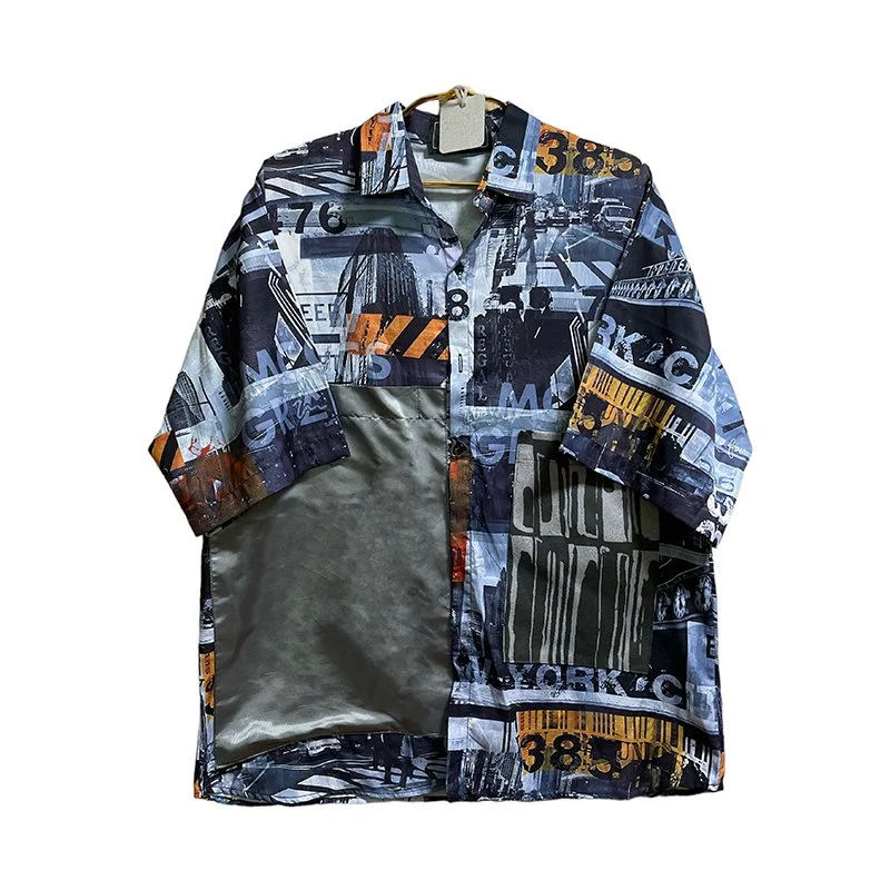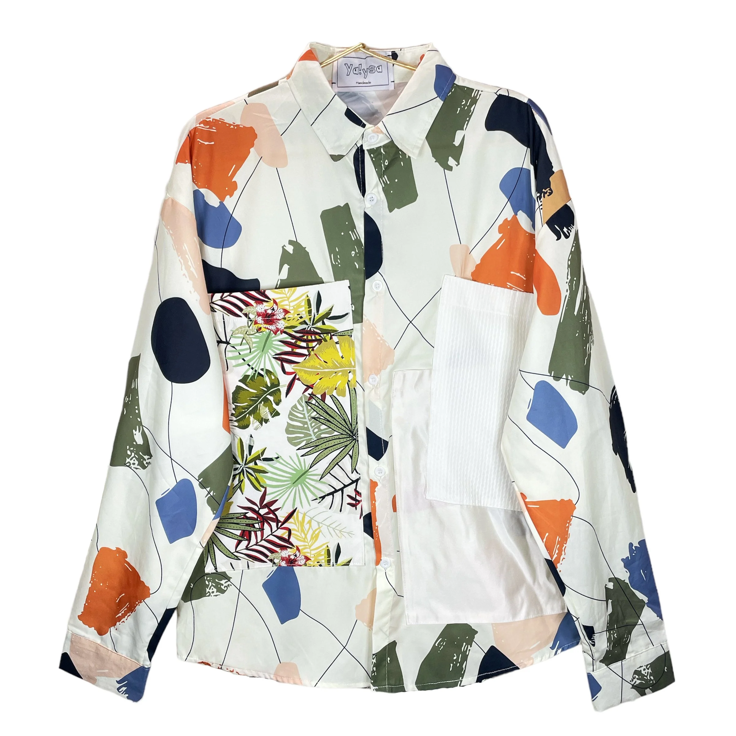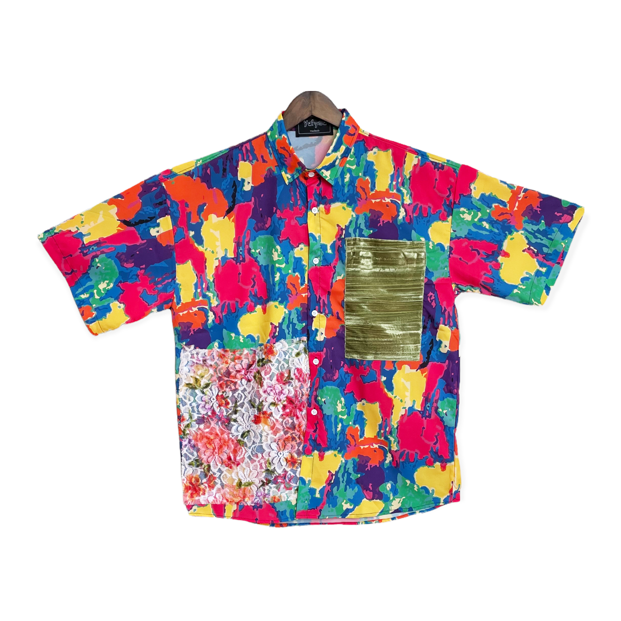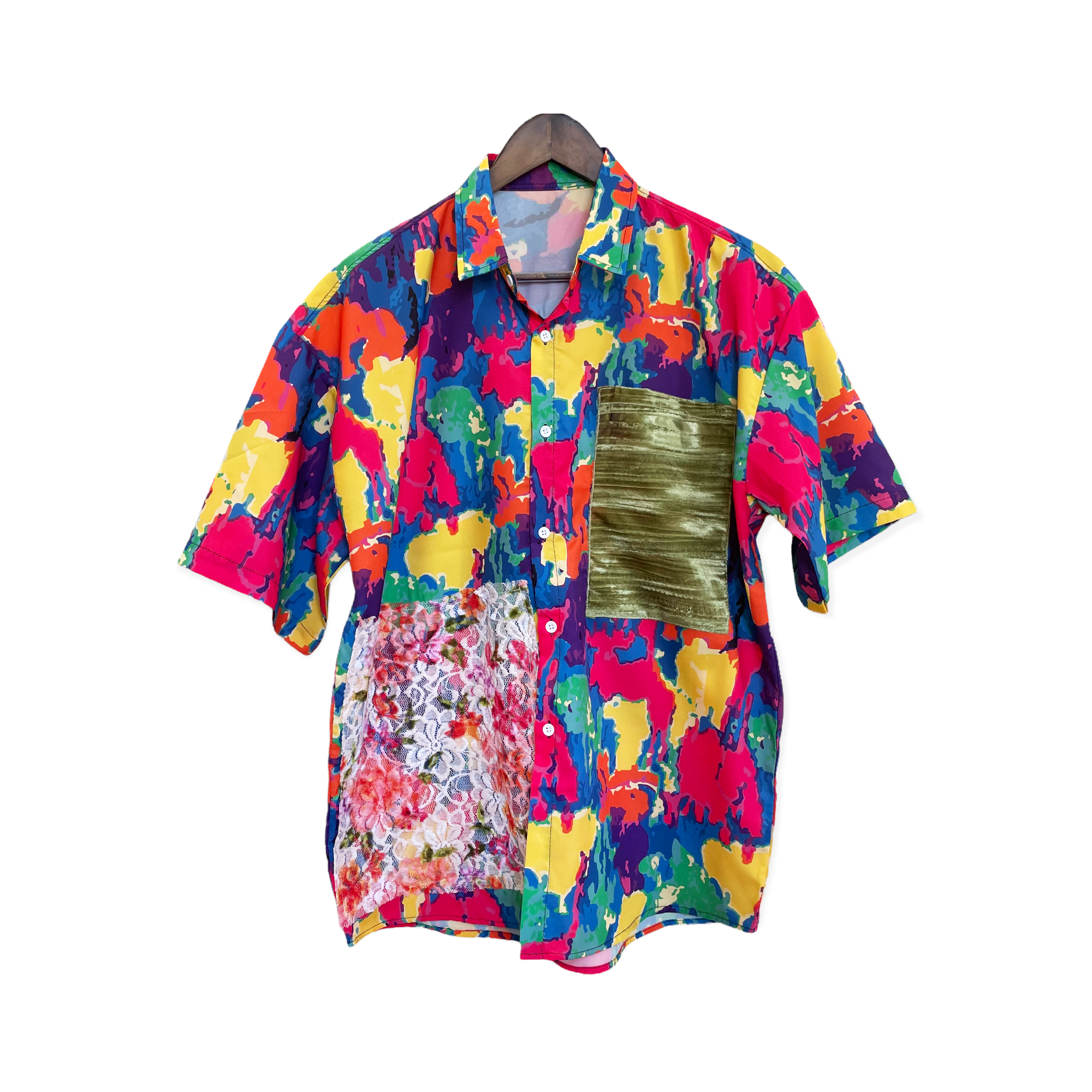 Colorful Pigment Print Short Sleeves Shirt Summer