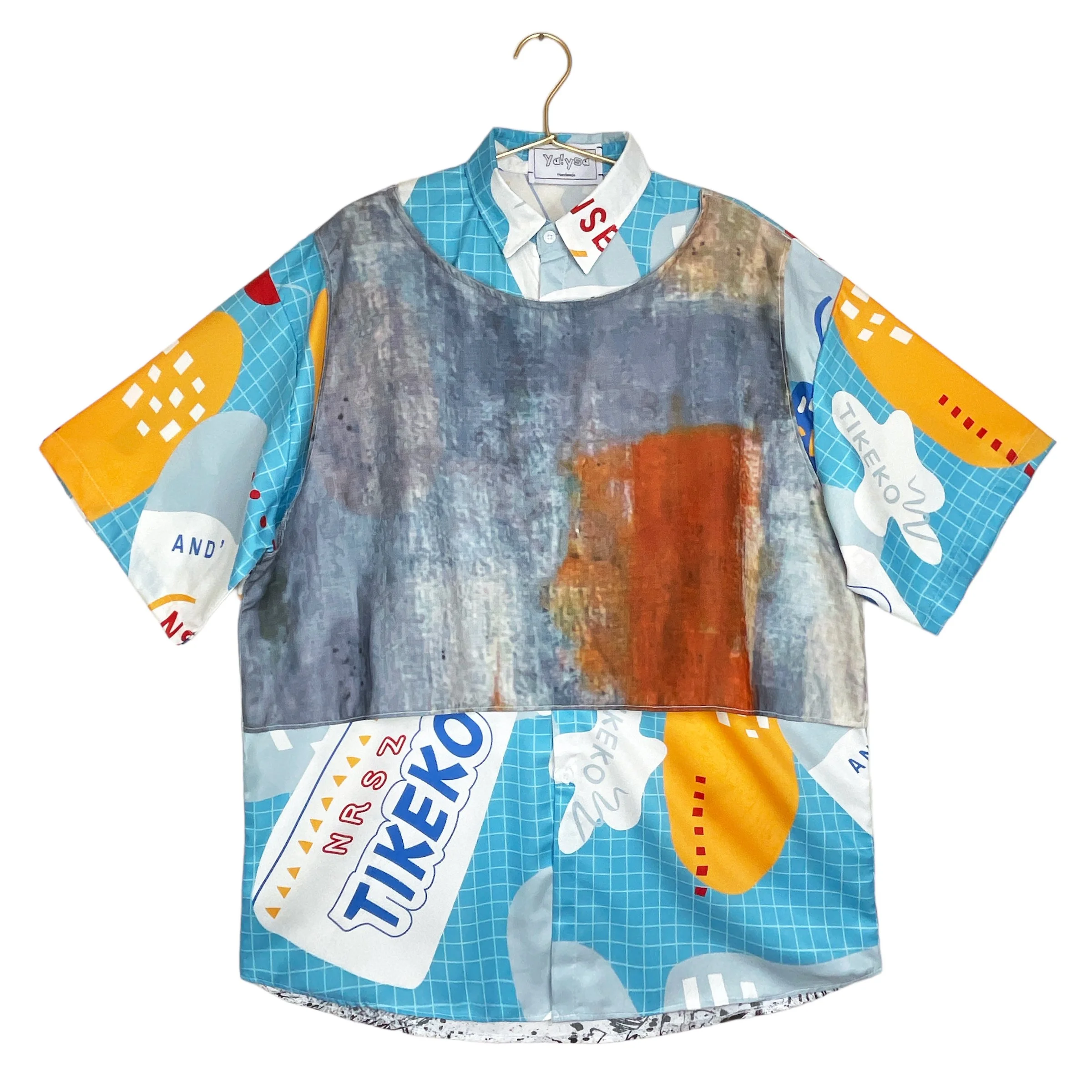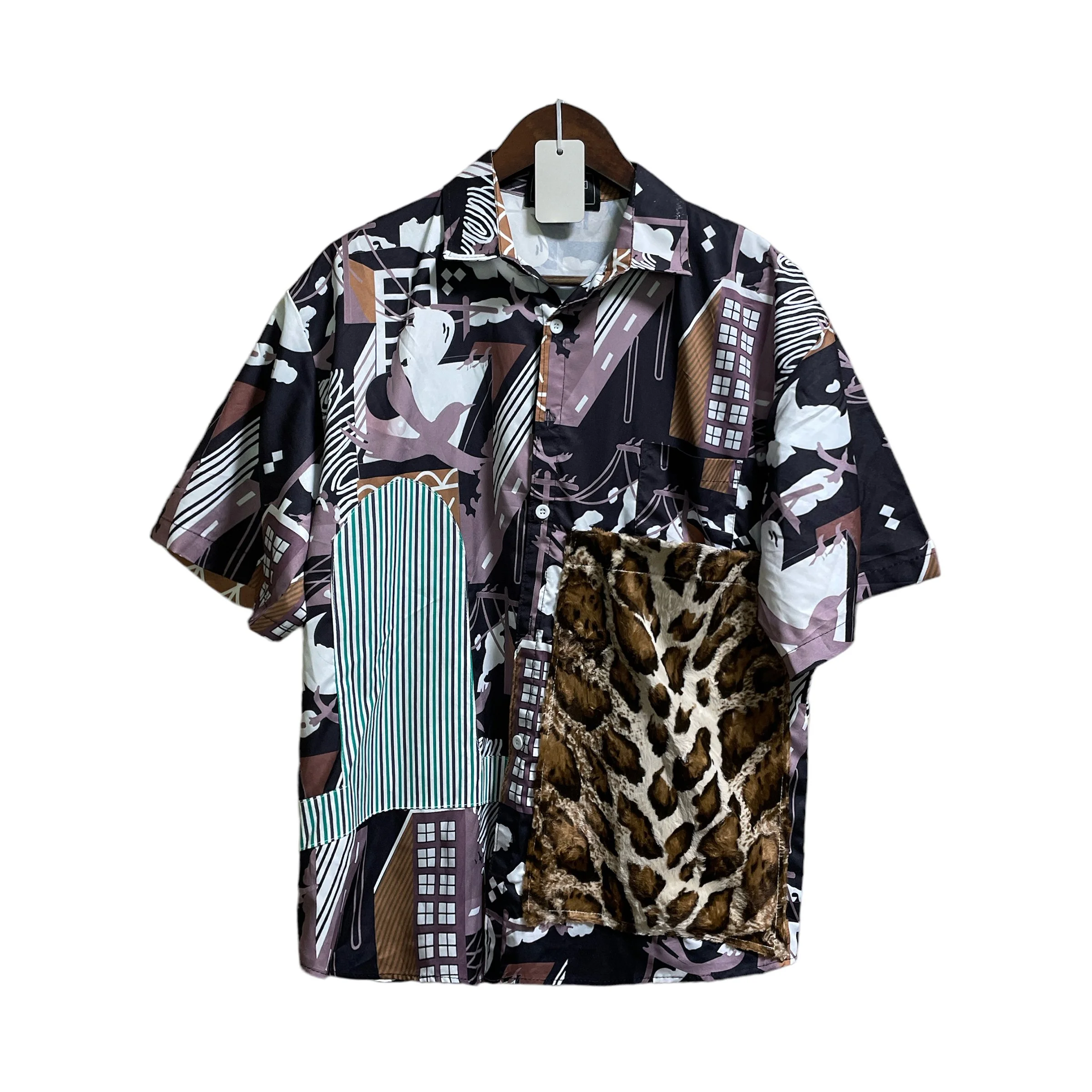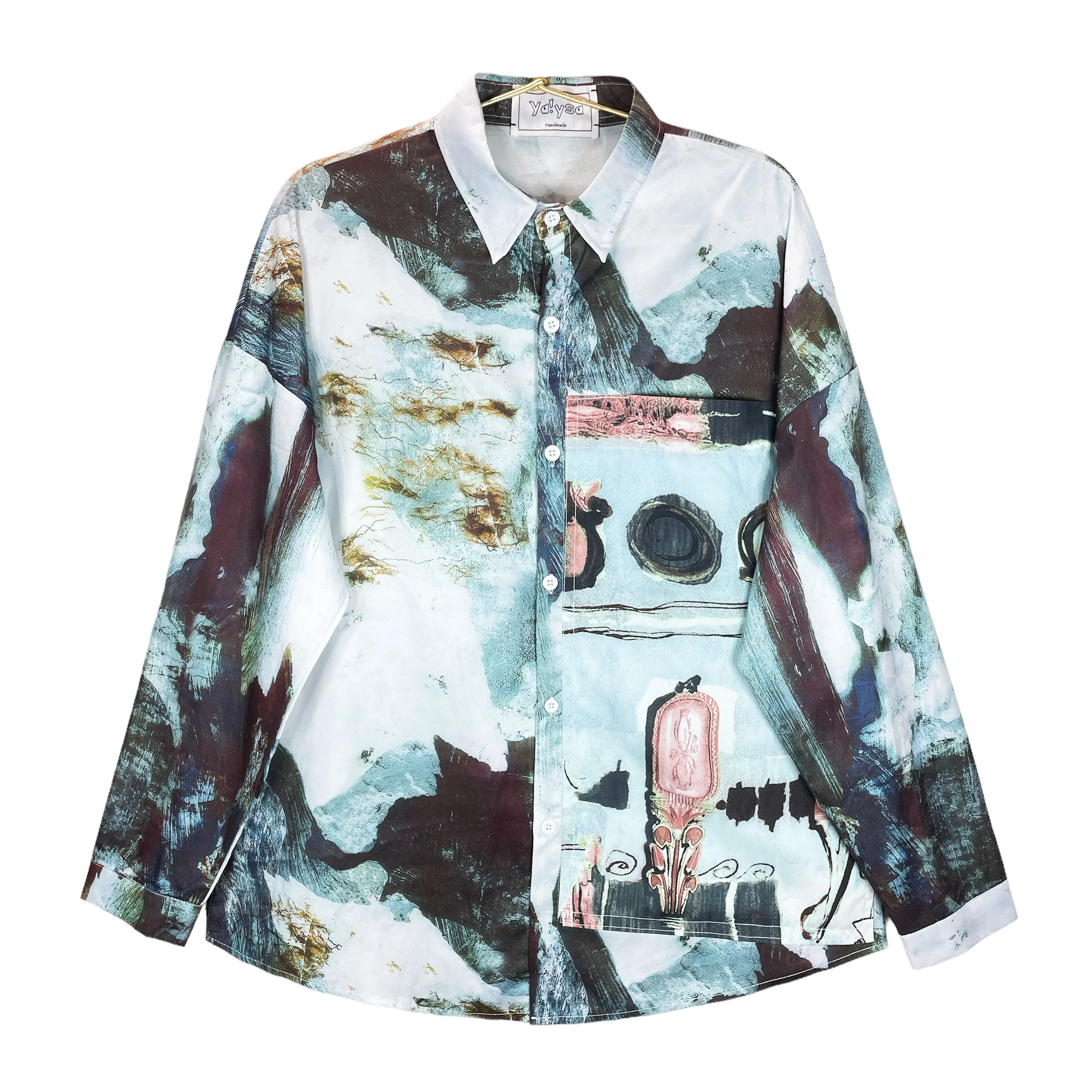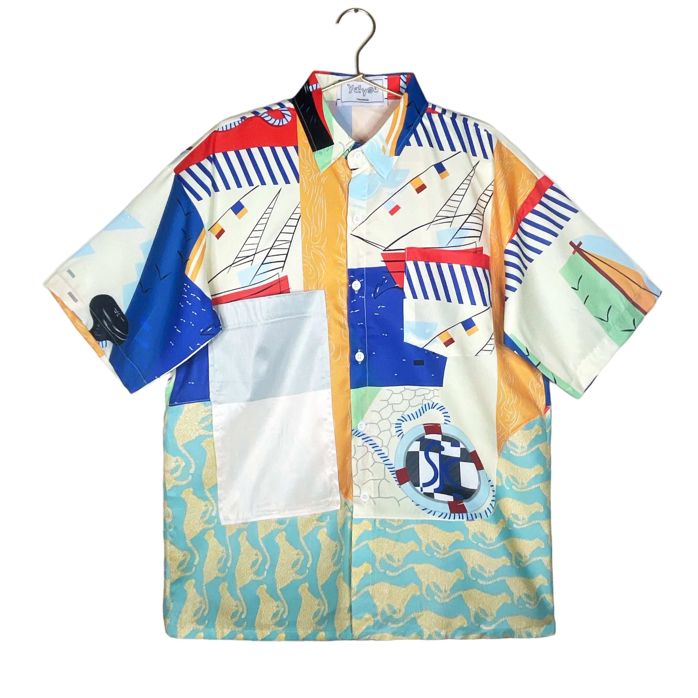 Colorful Pigment Print Short Sleeves Shirt Summer
