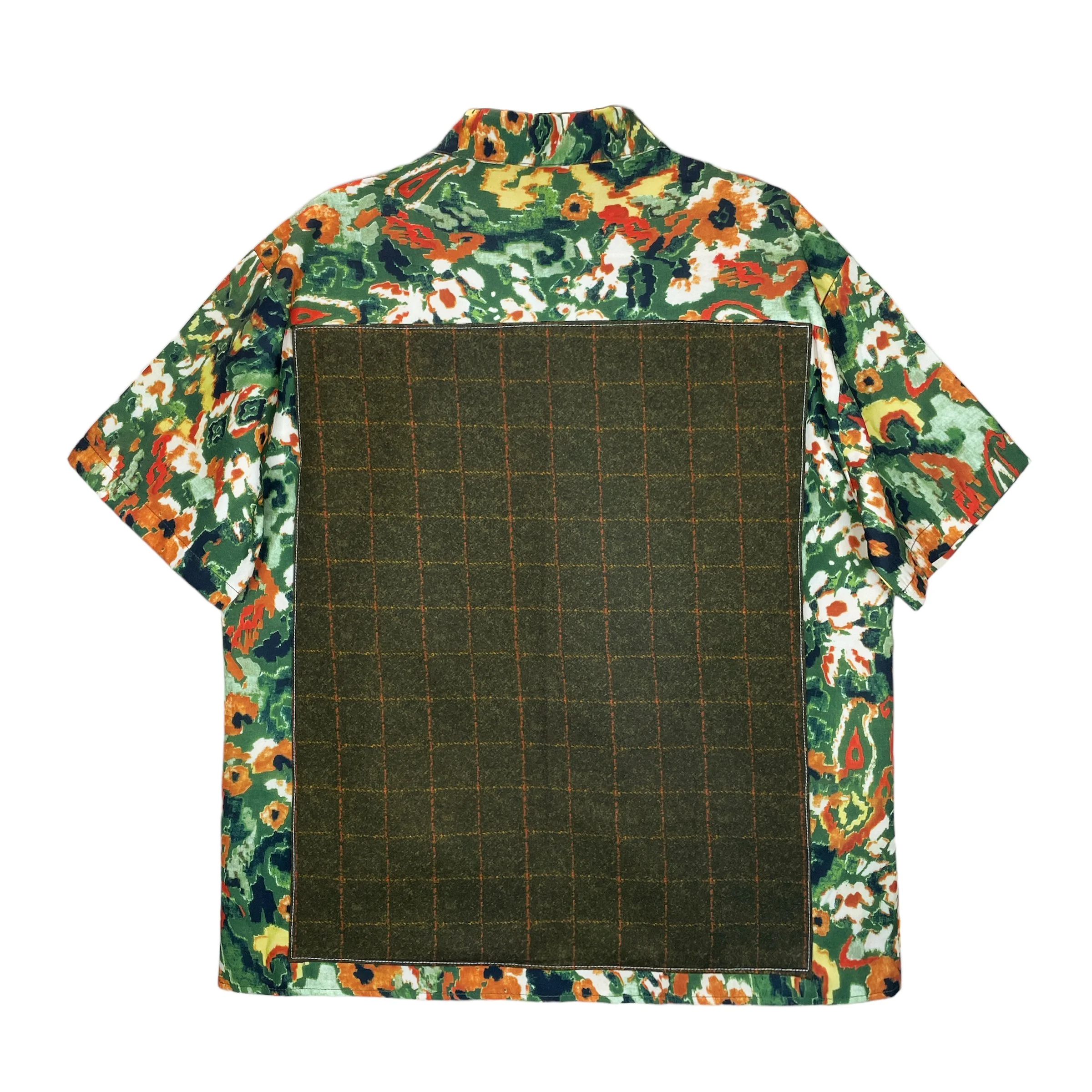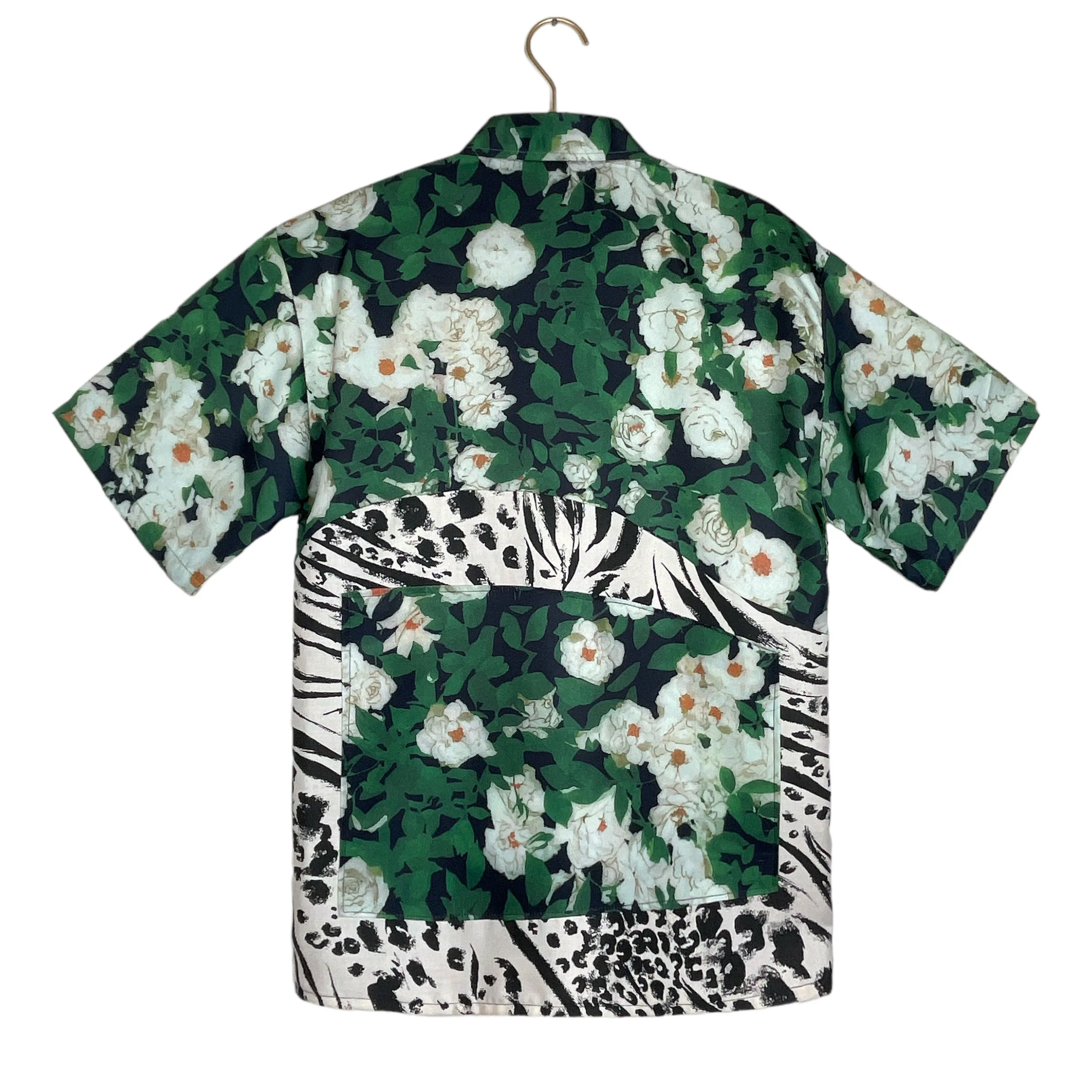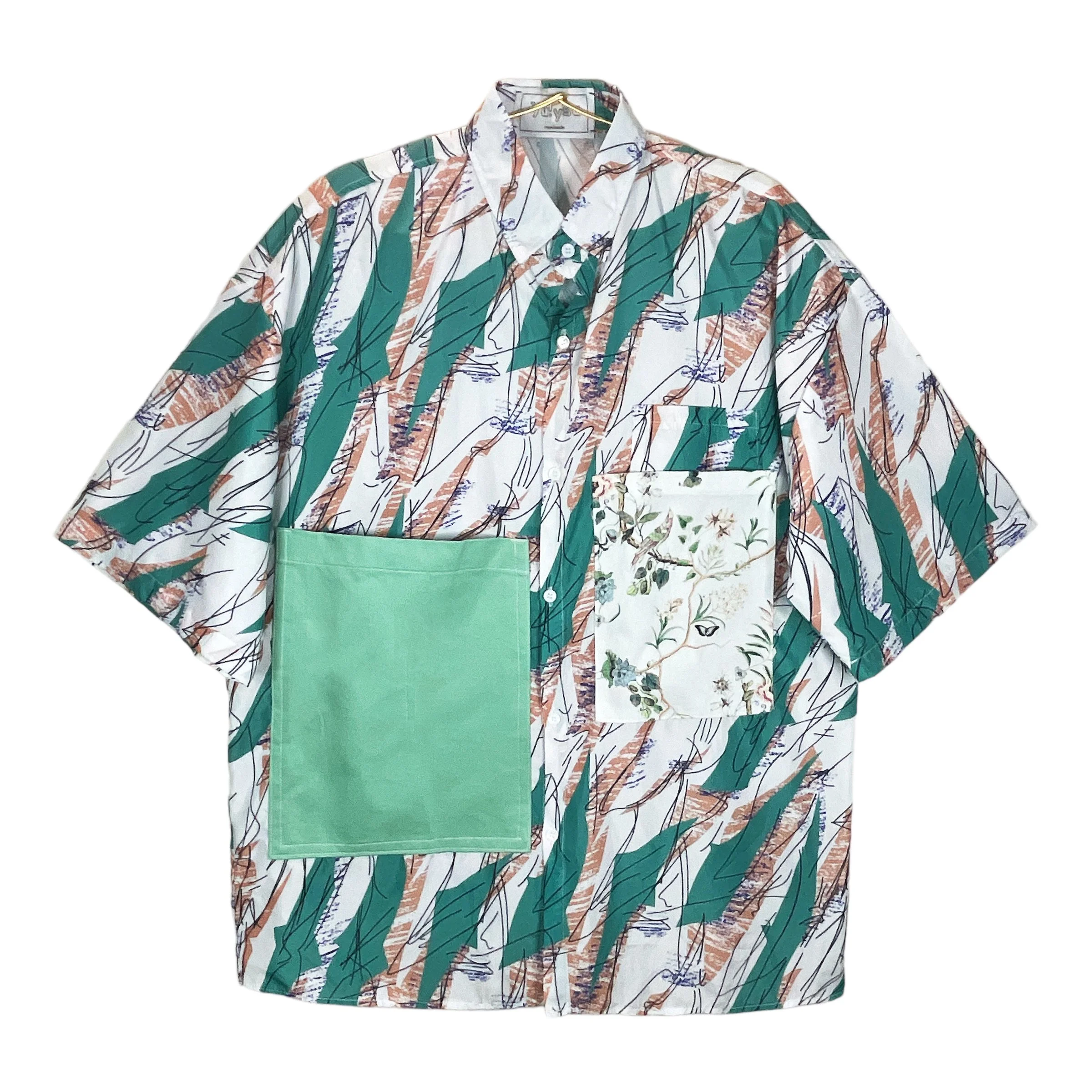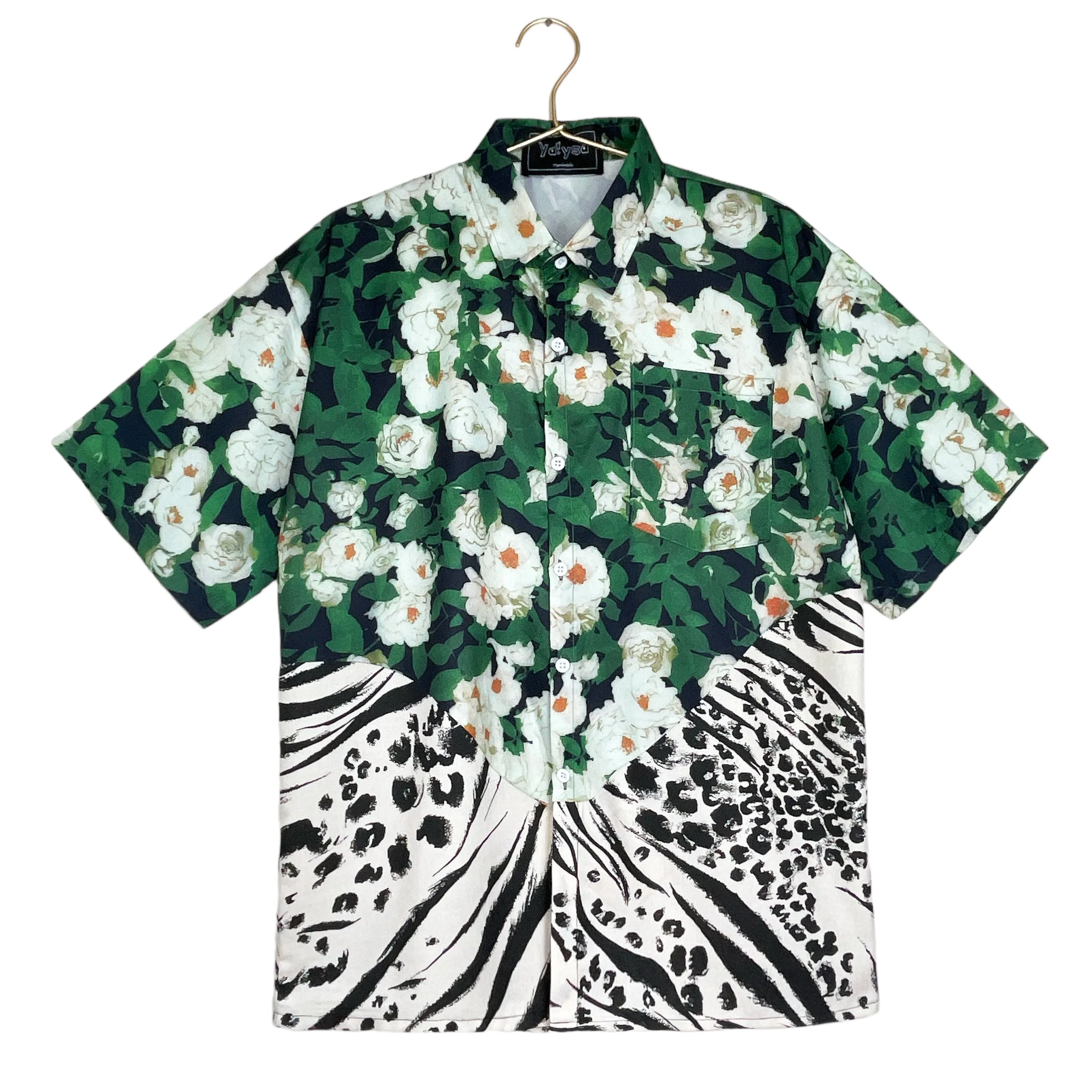 Spring Garden Print Short Sleeves Handmade Green Shirt
