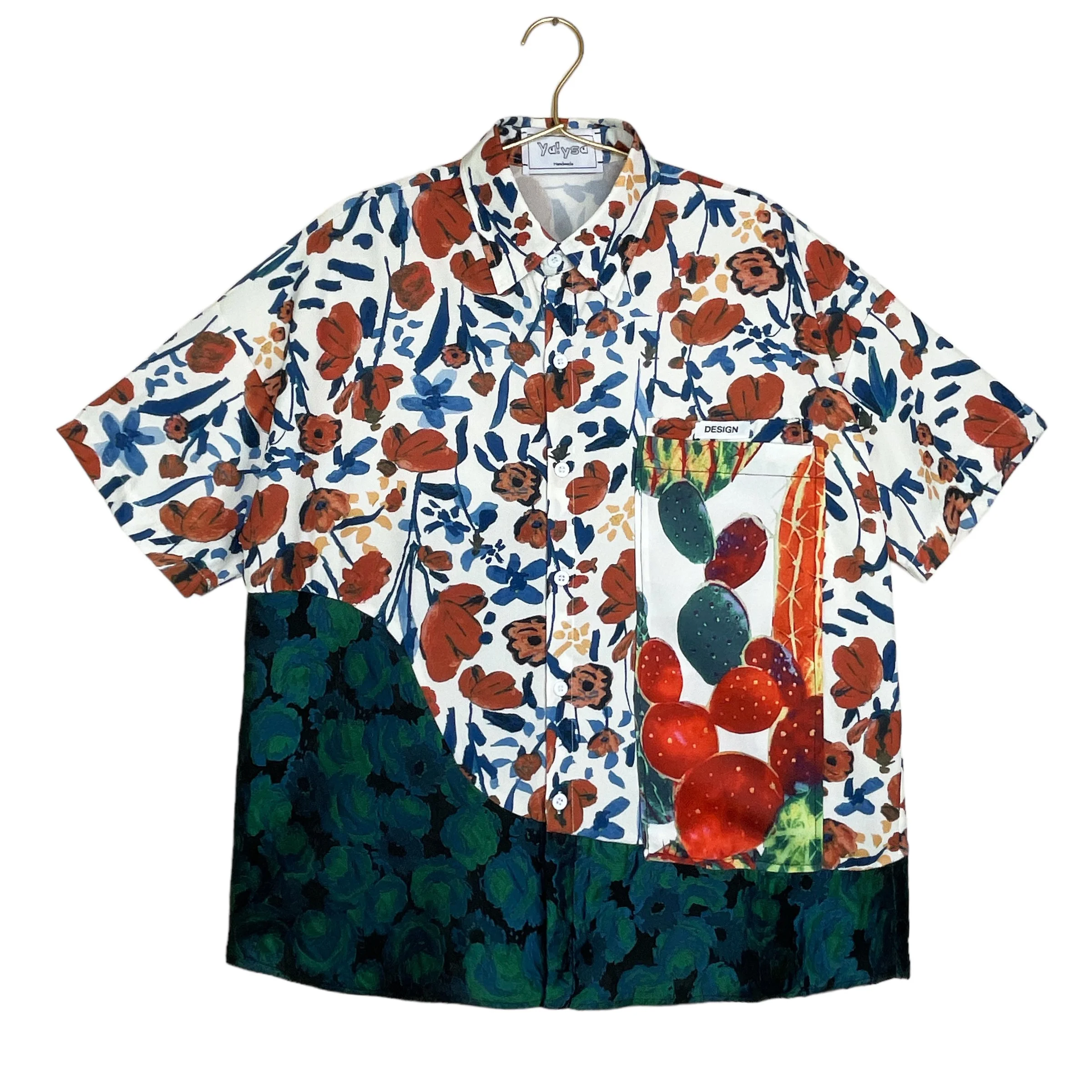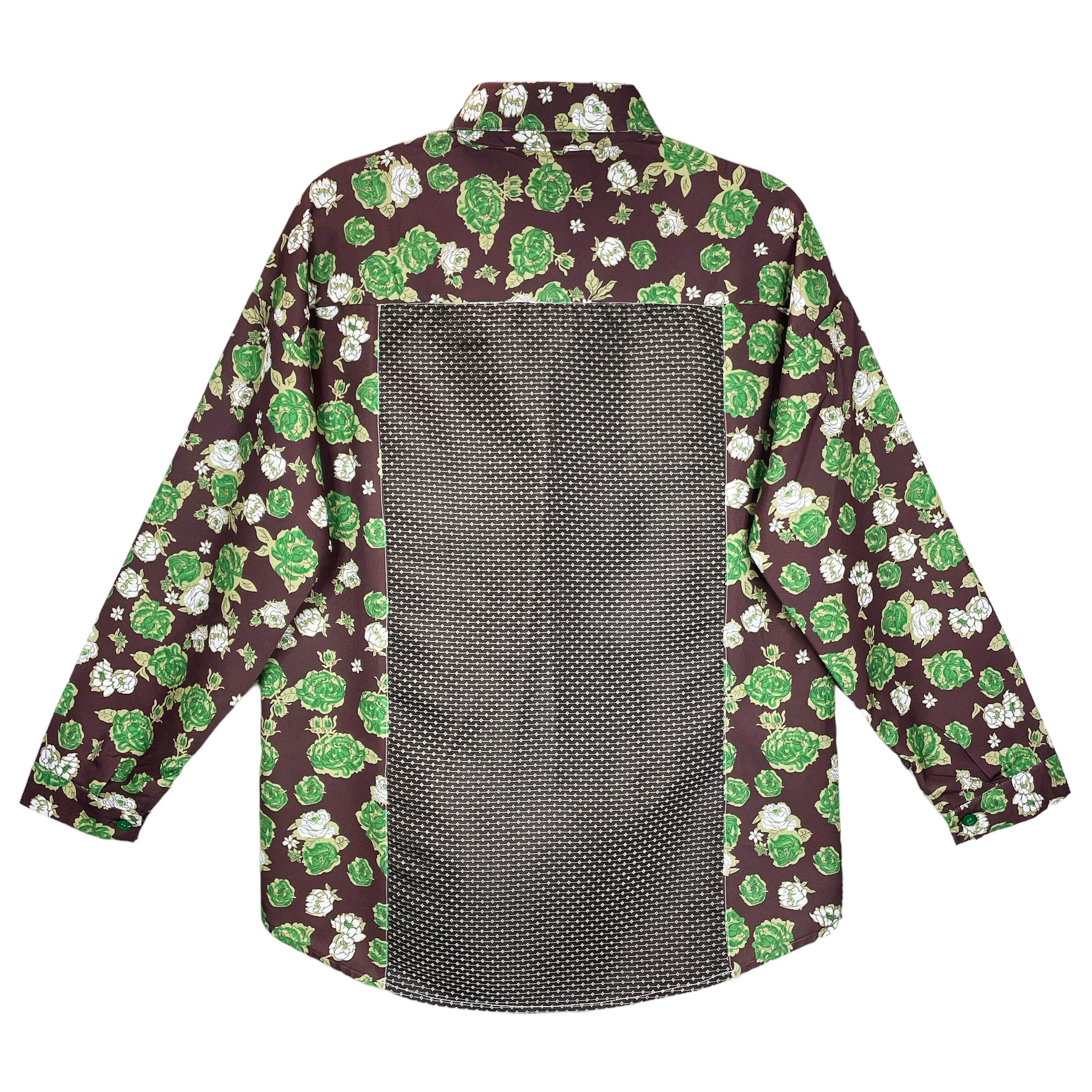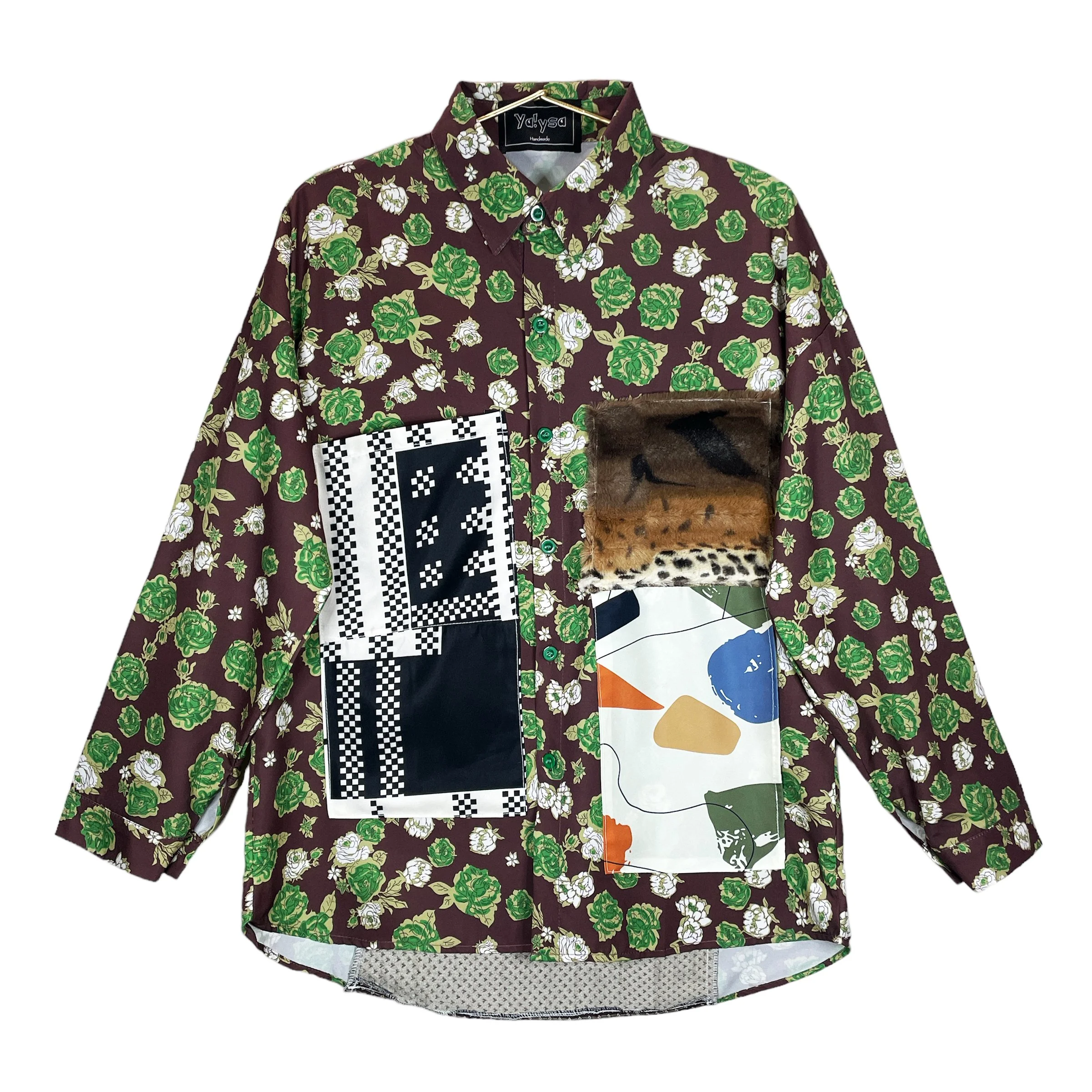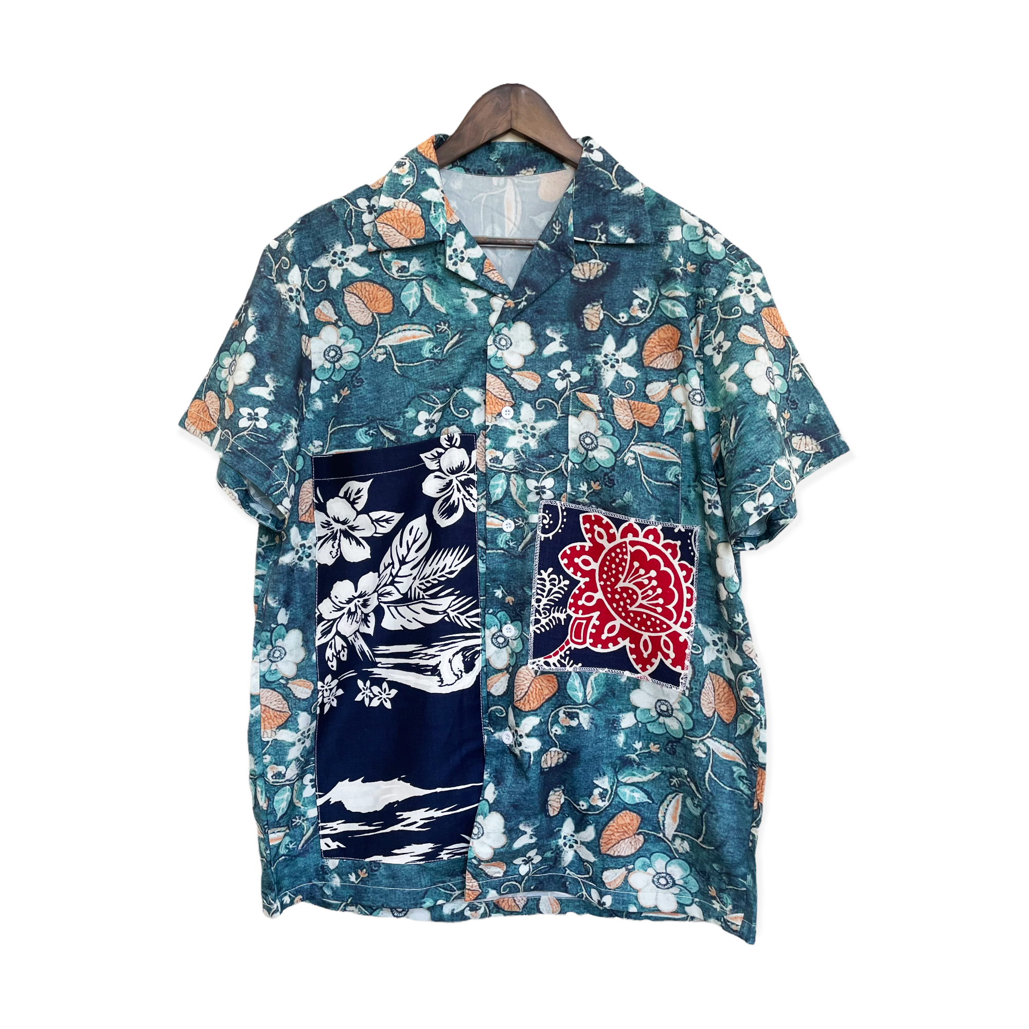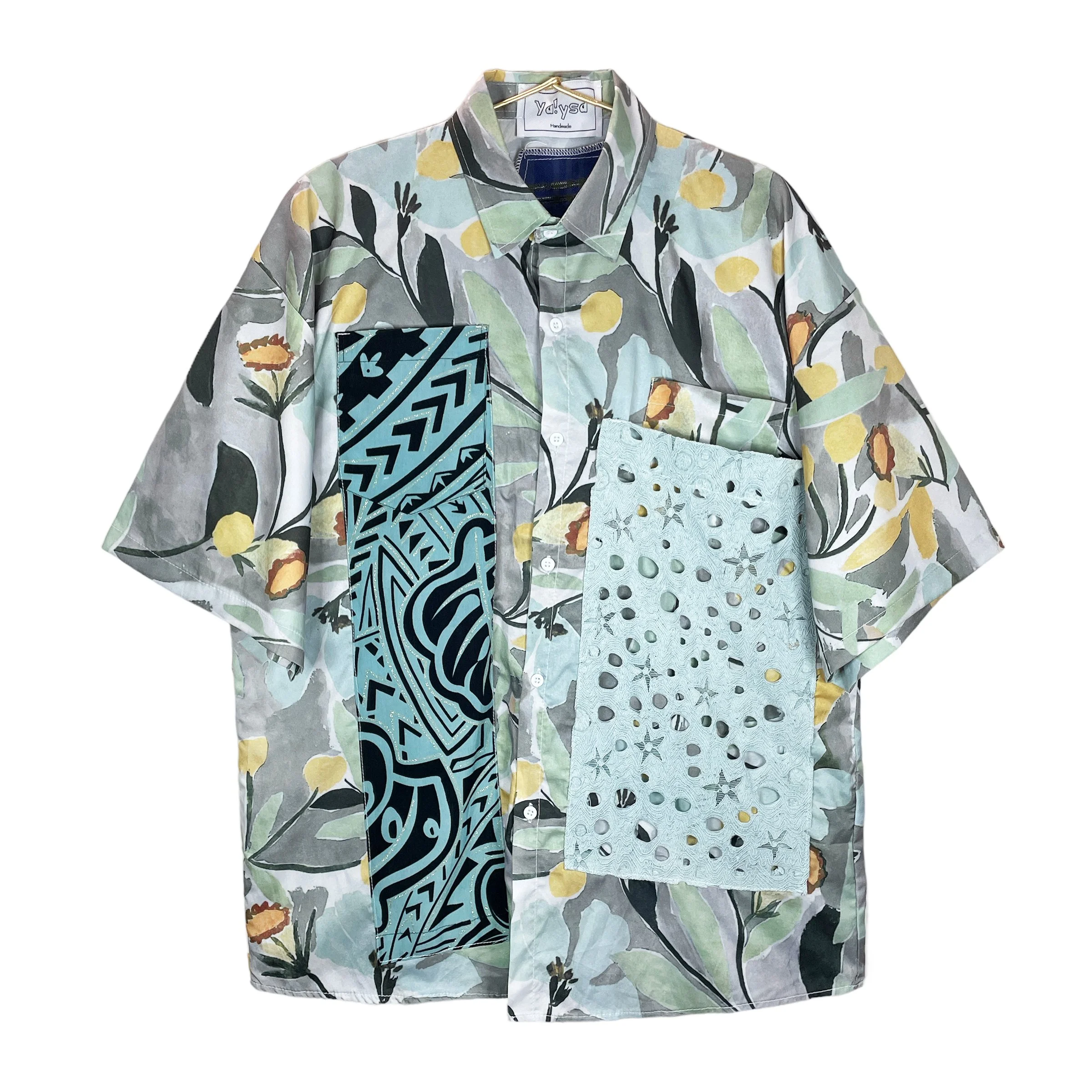 Spring Garden Print Short Sleeves Handmade Green Shirt