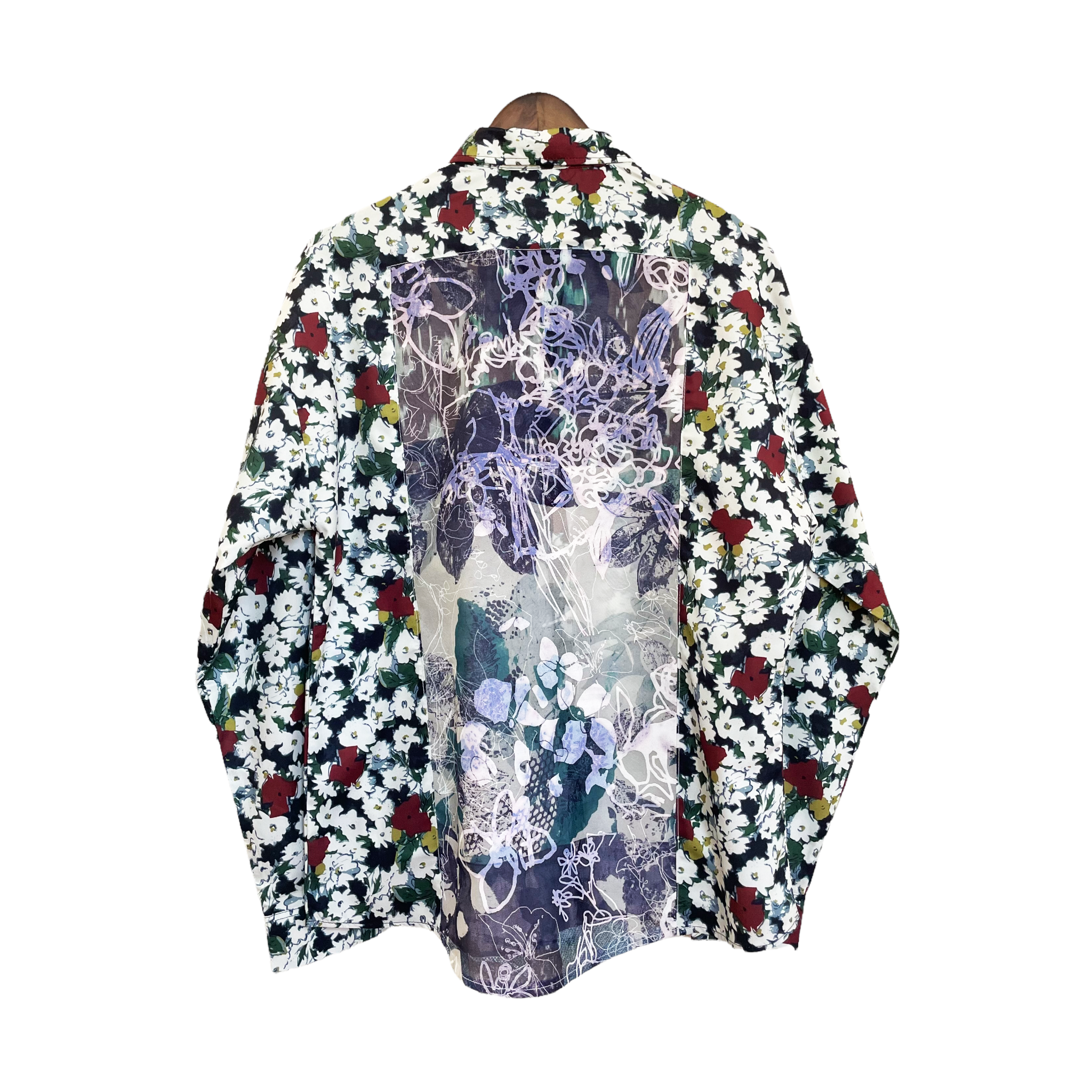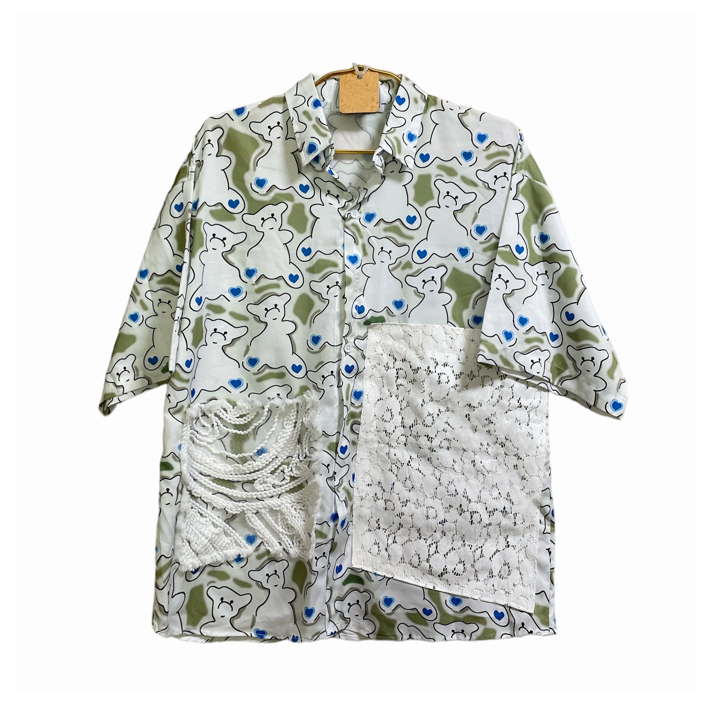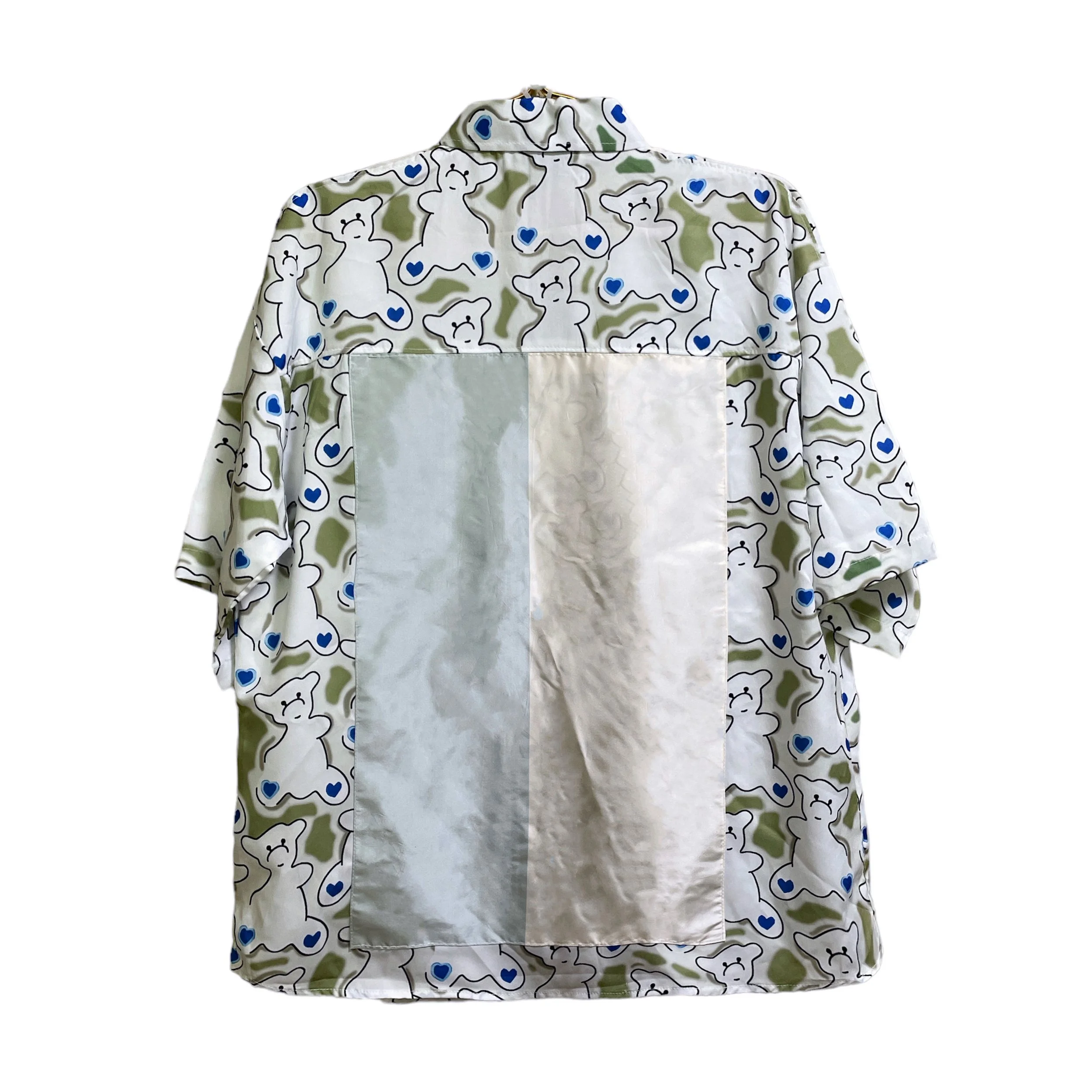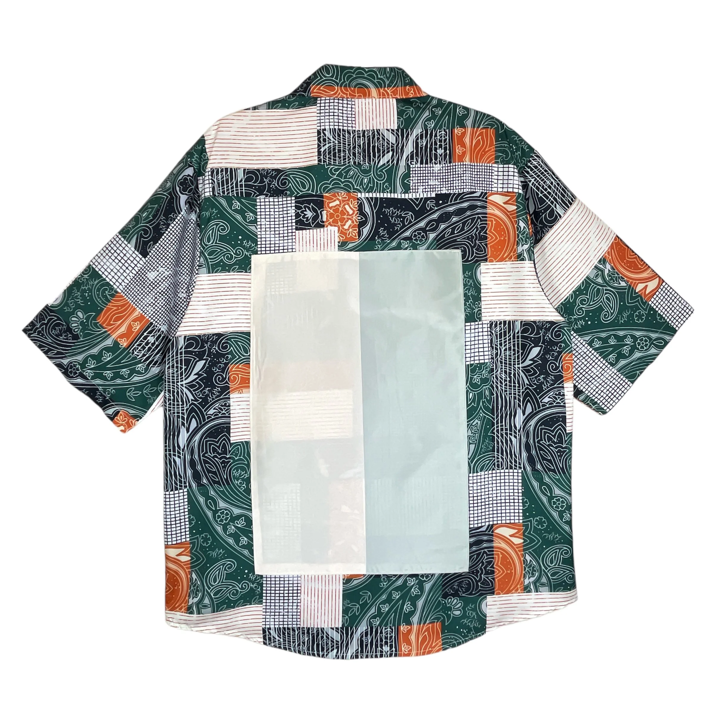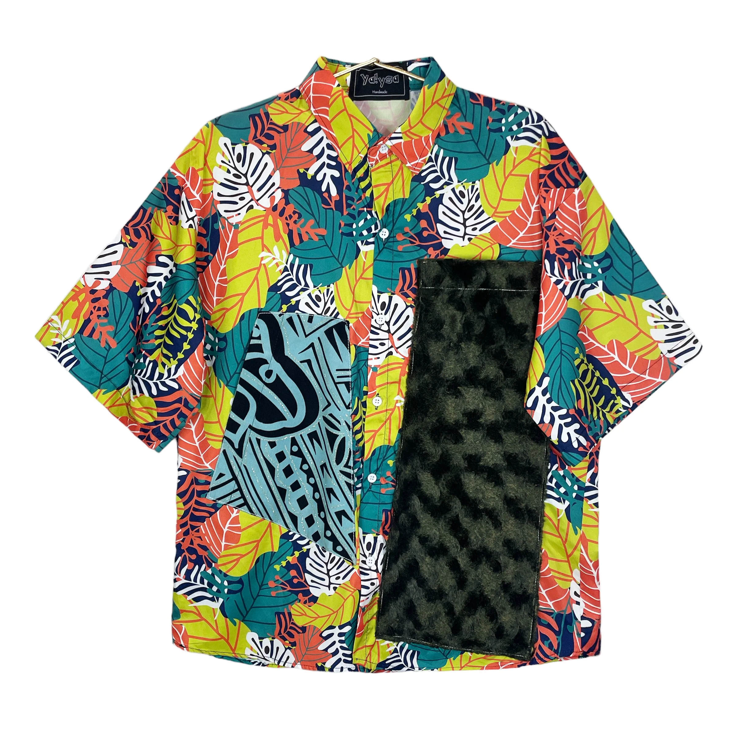 Spring Garden Print Short Sleeves Handmade Green Shirt