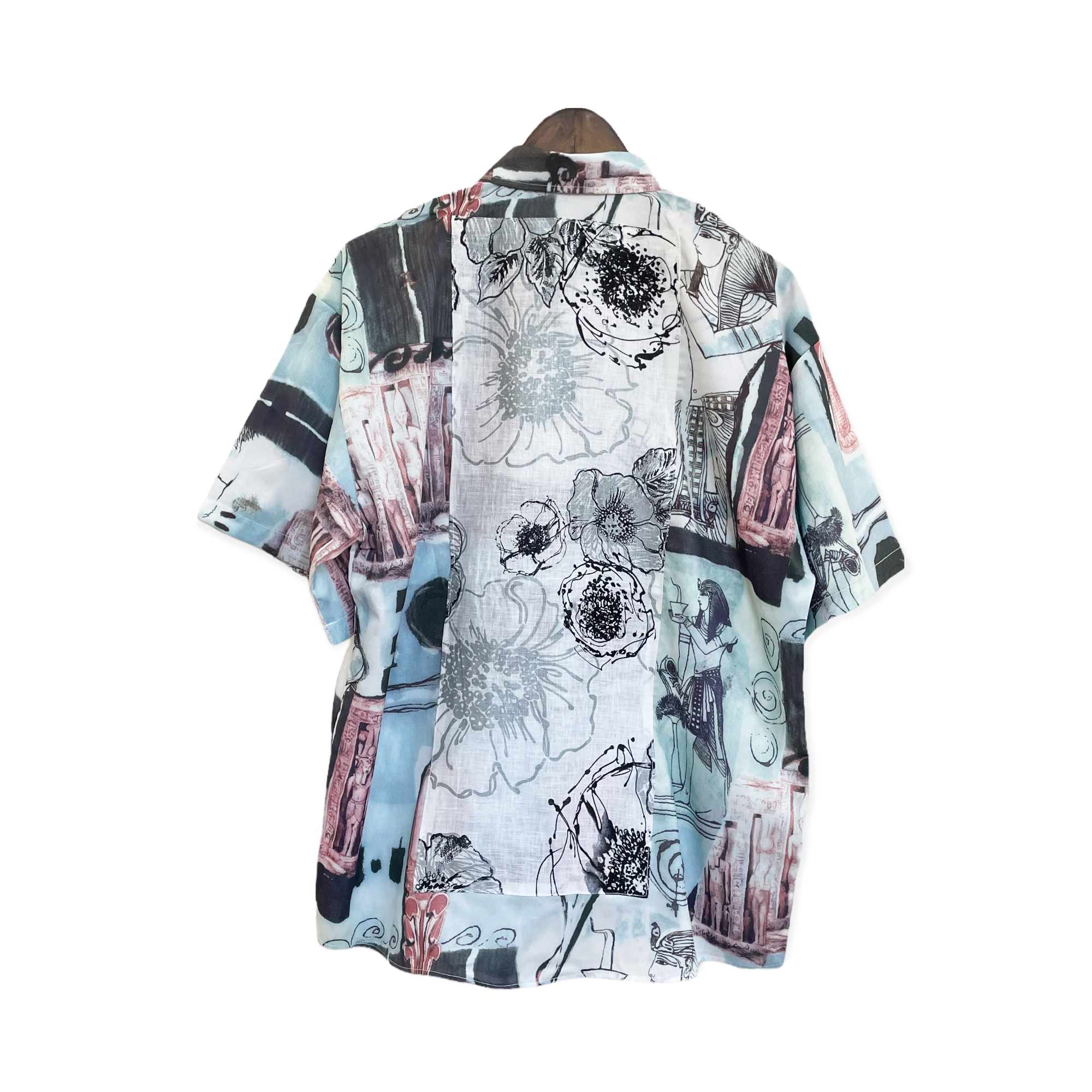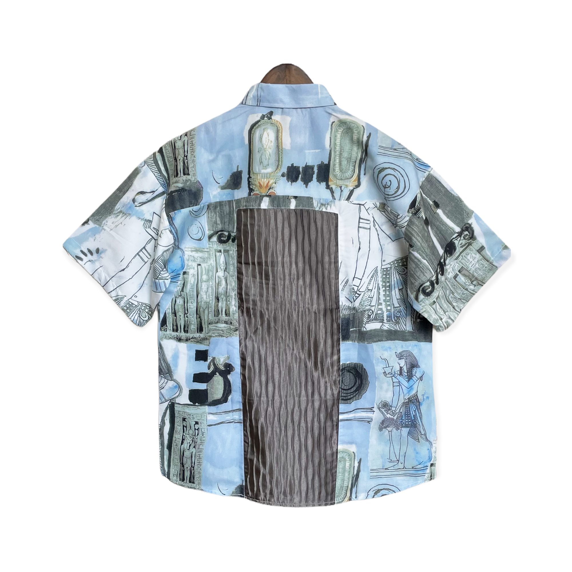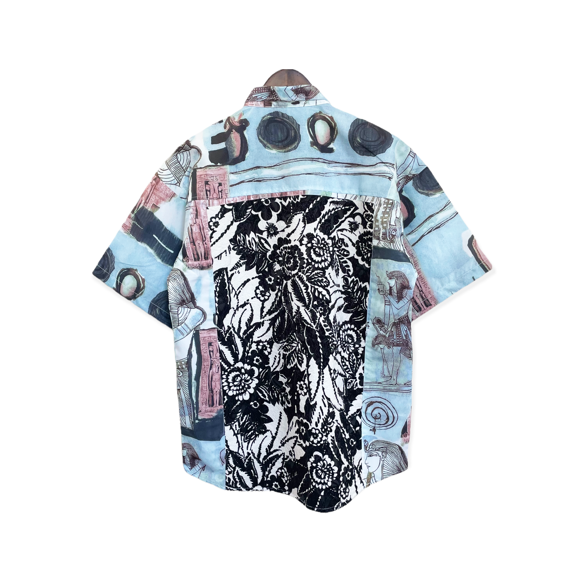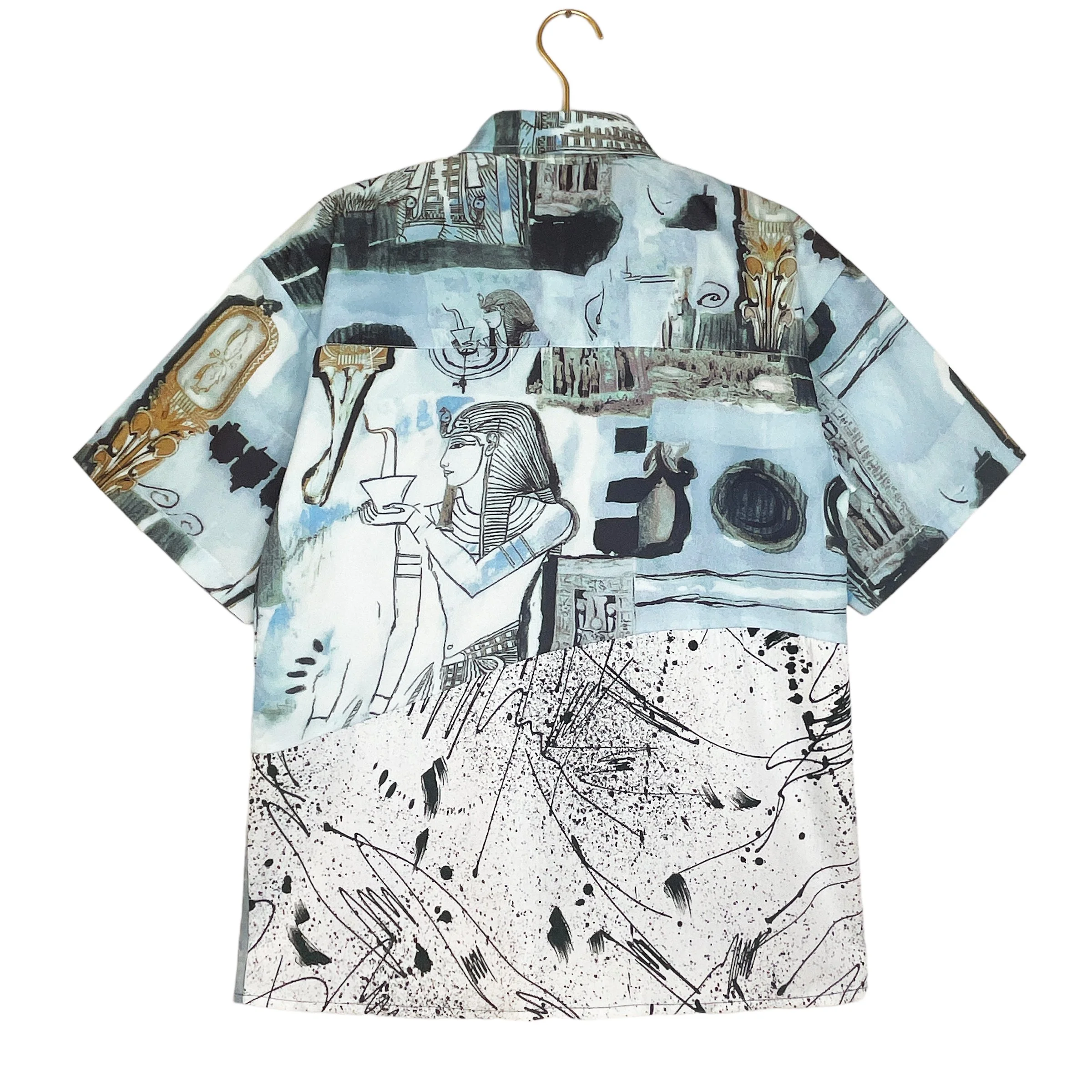 Egypt Sketches With Black Flowers Print Short Sleeves Shirt