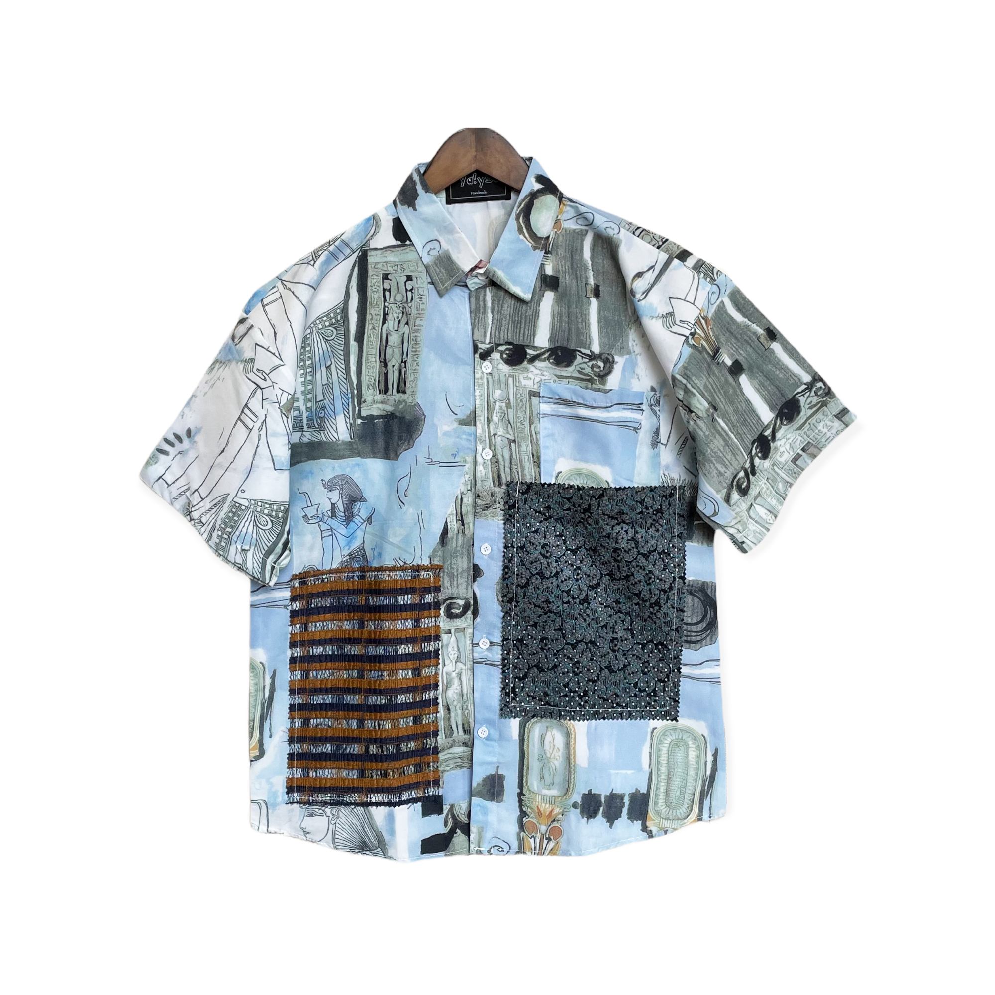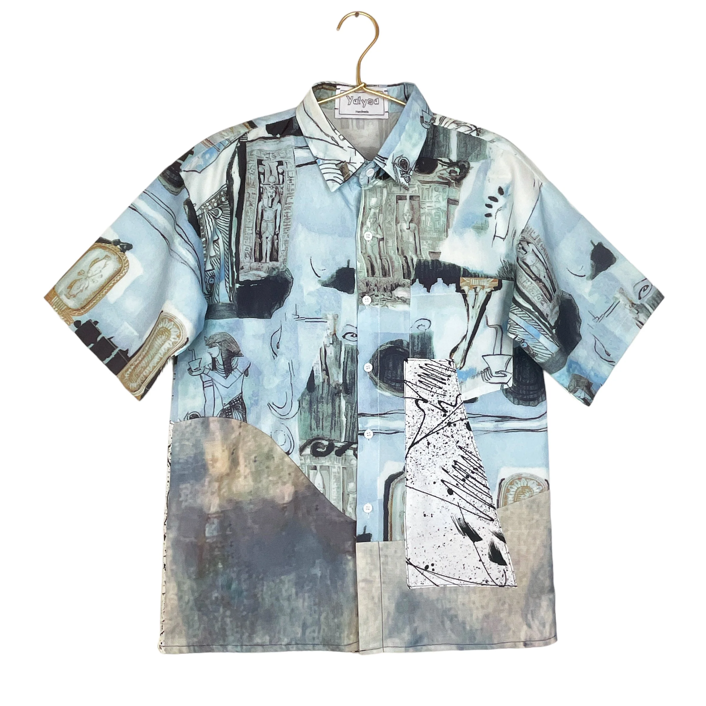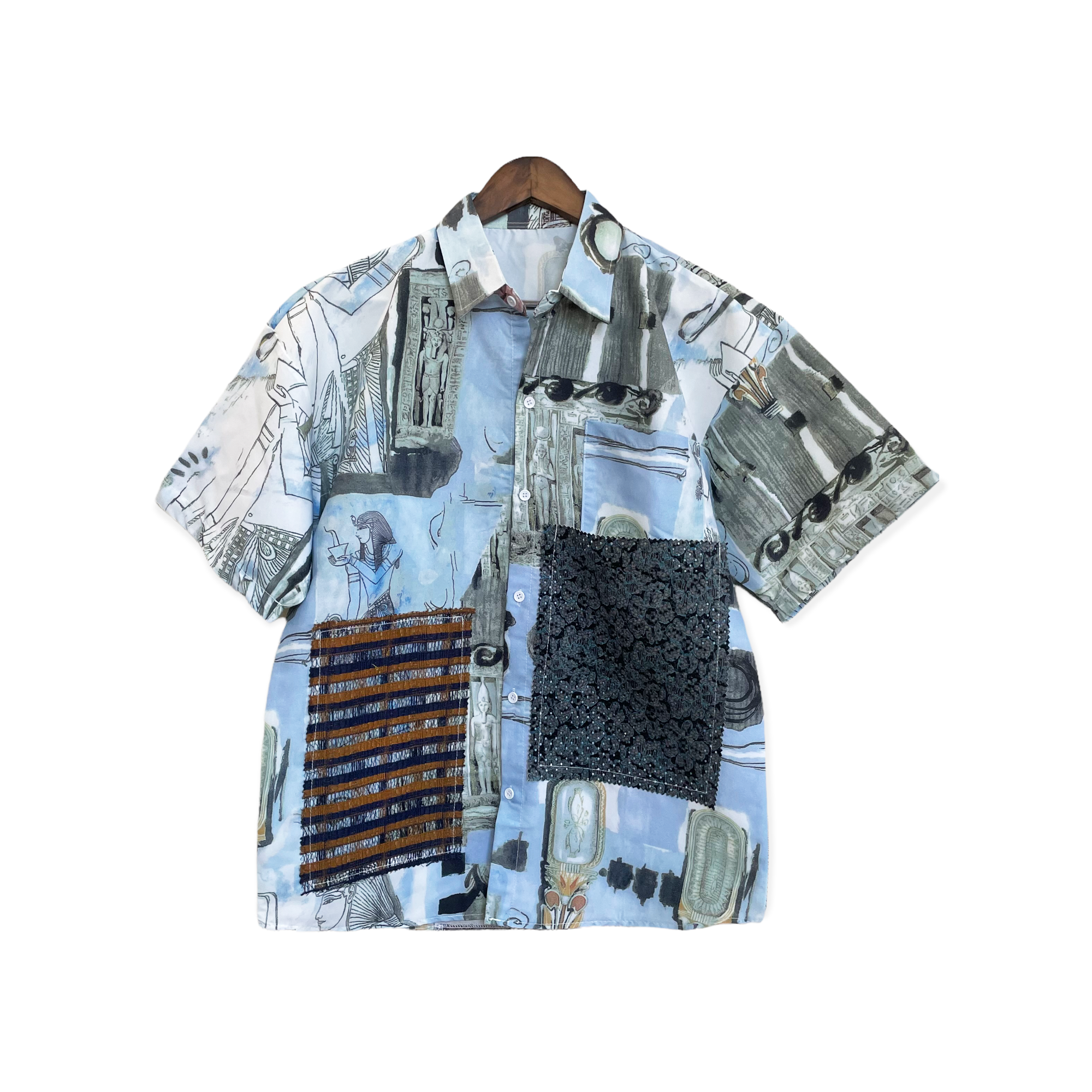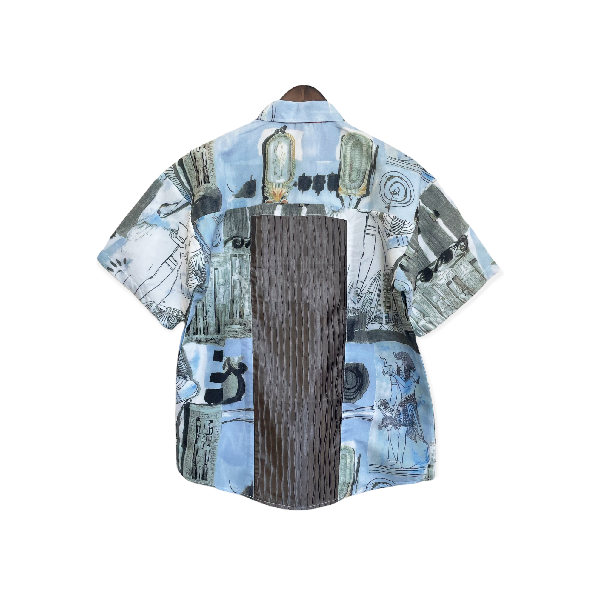 Egypt Sketches With Black Flowers Print Short Sleeves Shirt