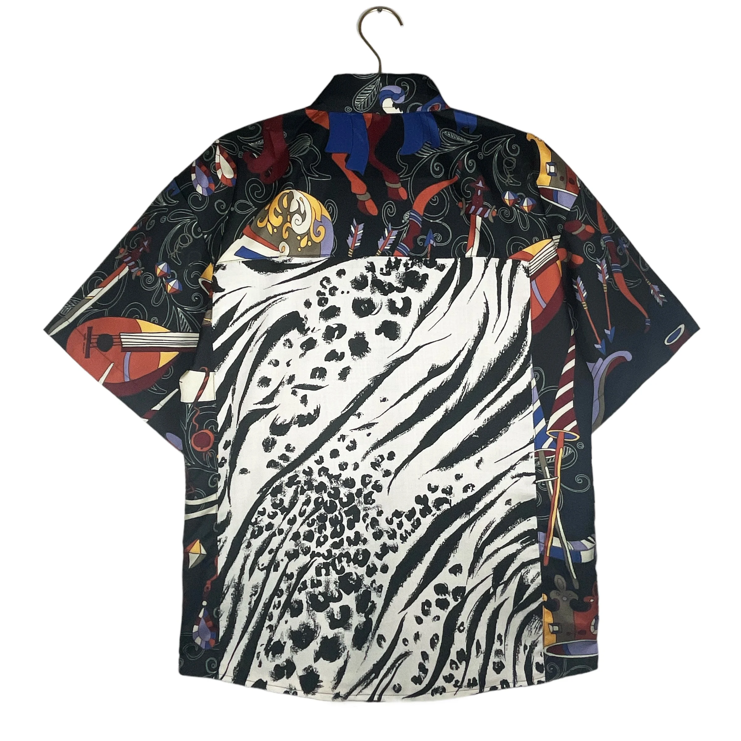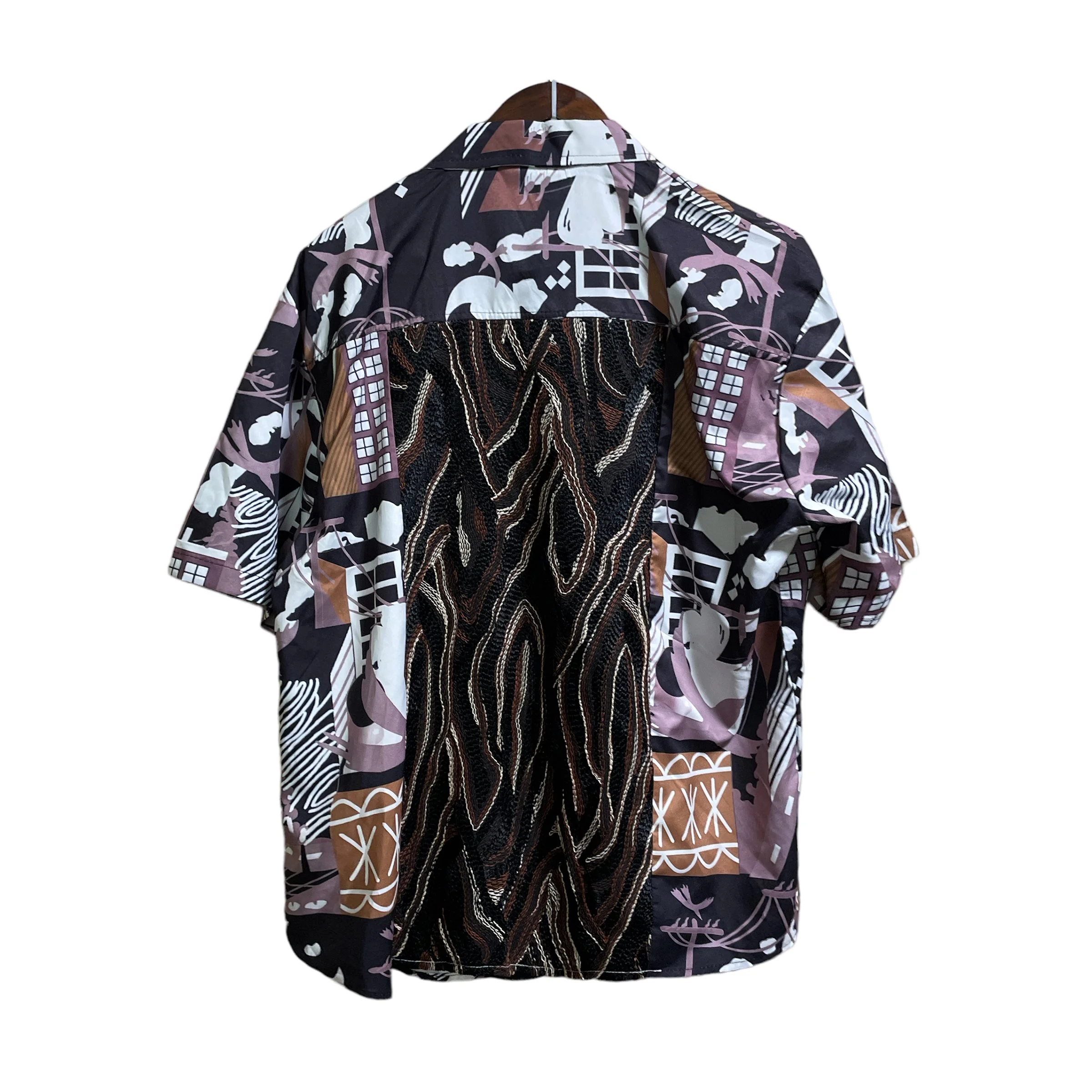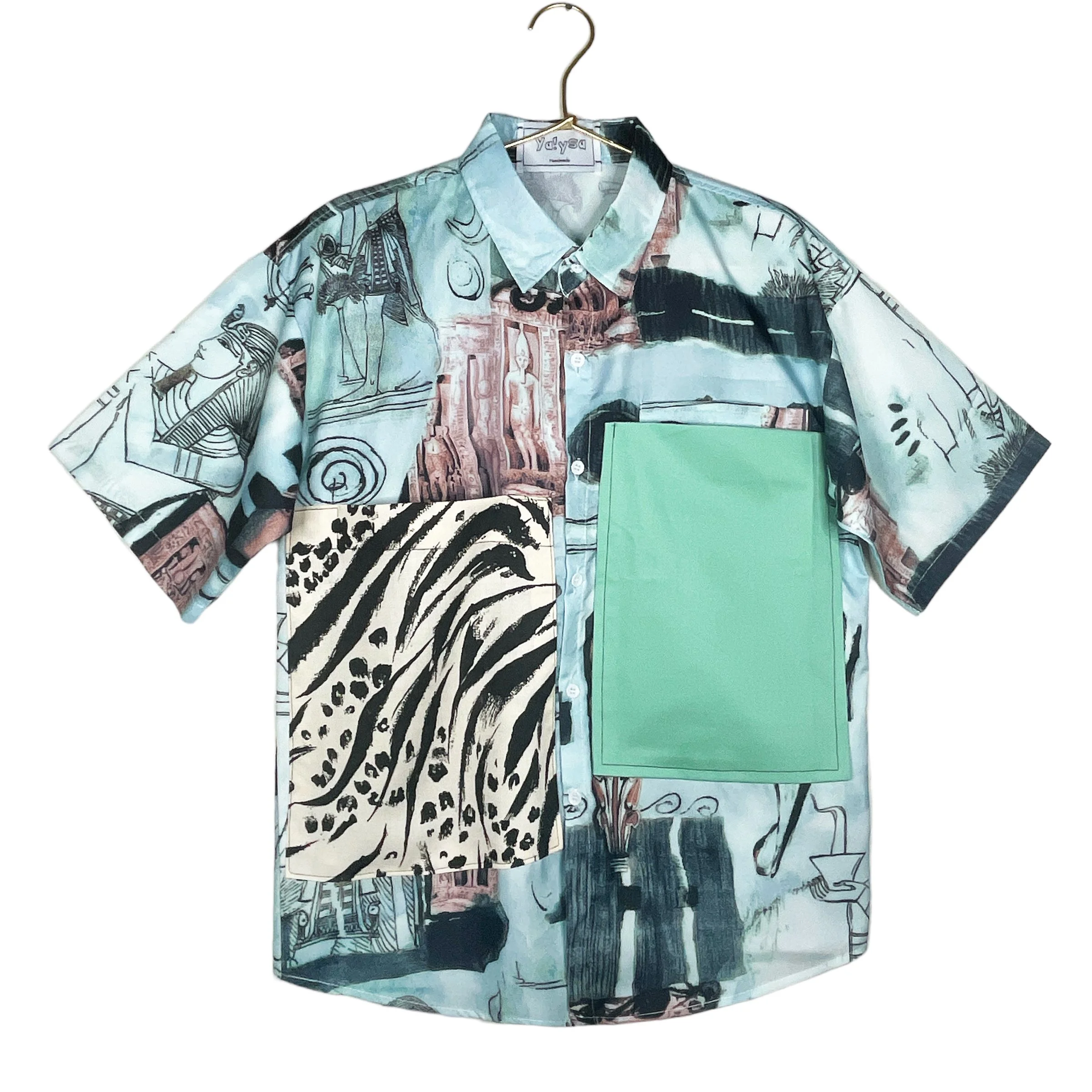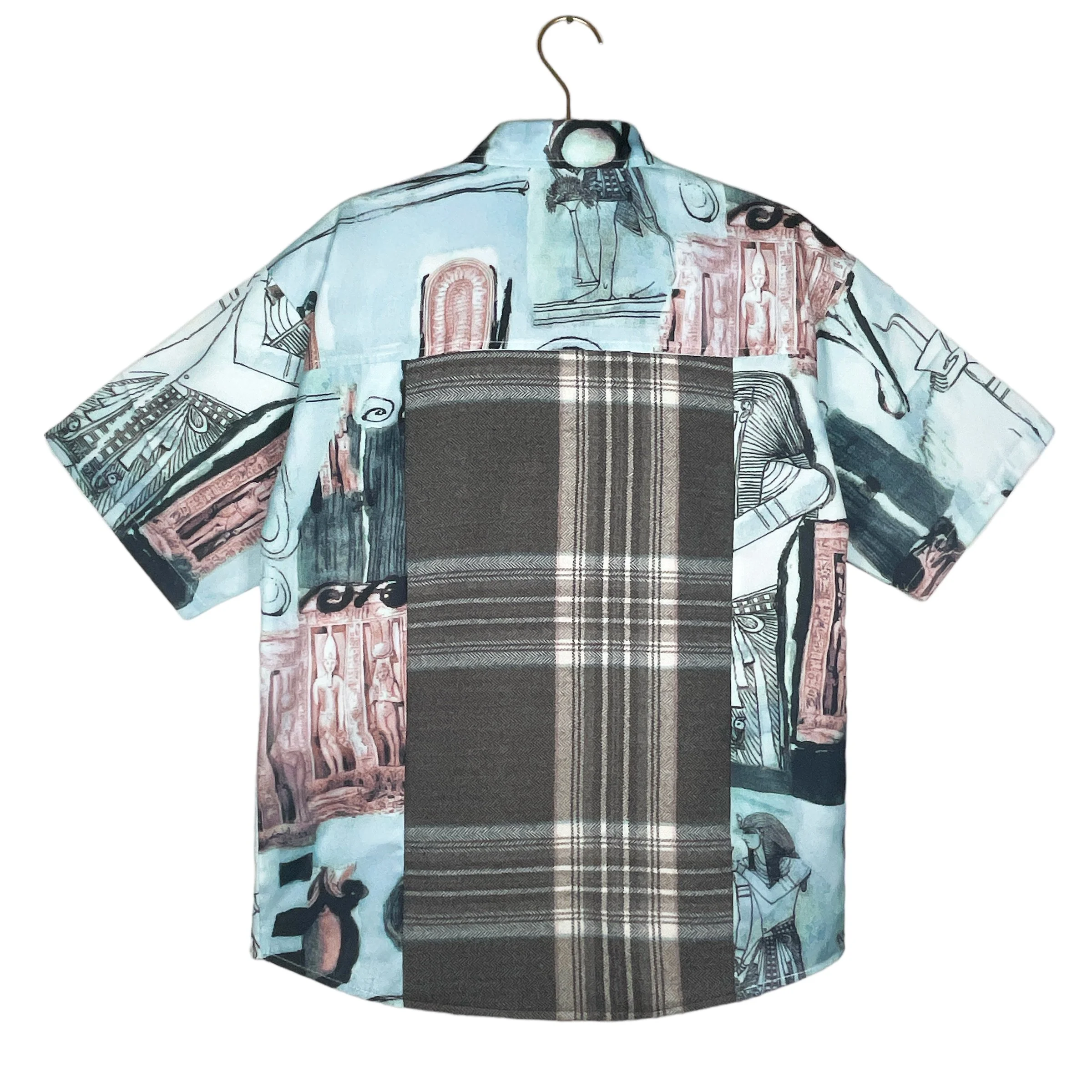 Egypt Sketches With Black Flowers Print Short Sleeves Shirt