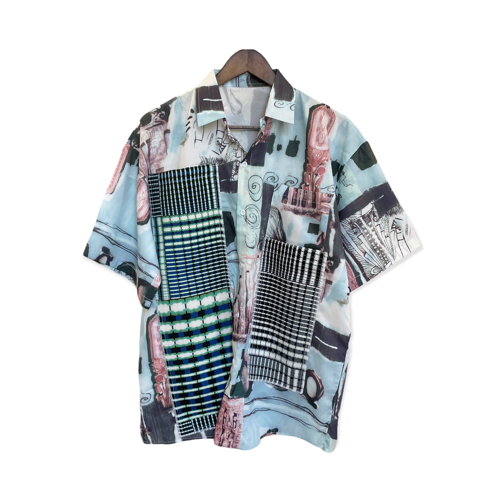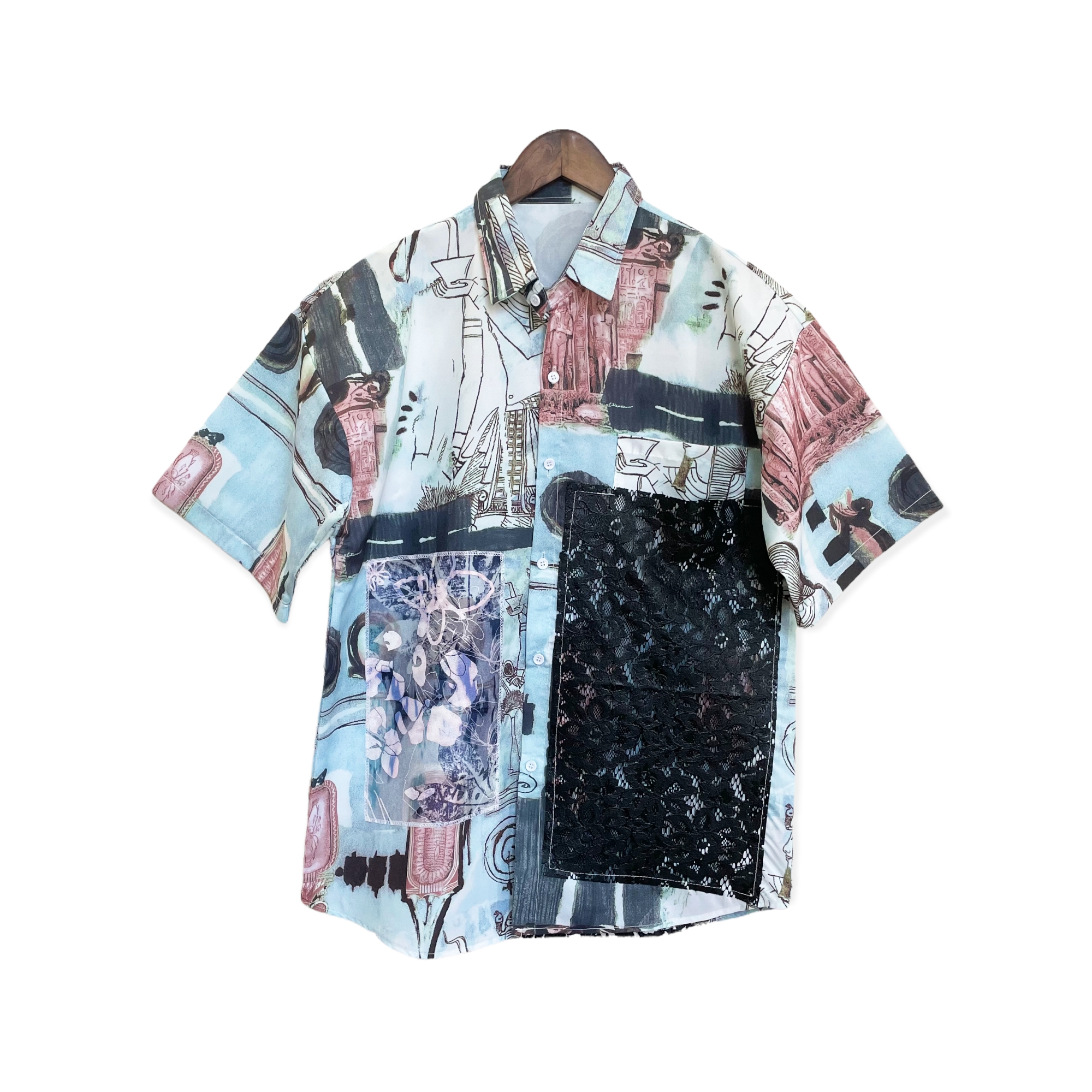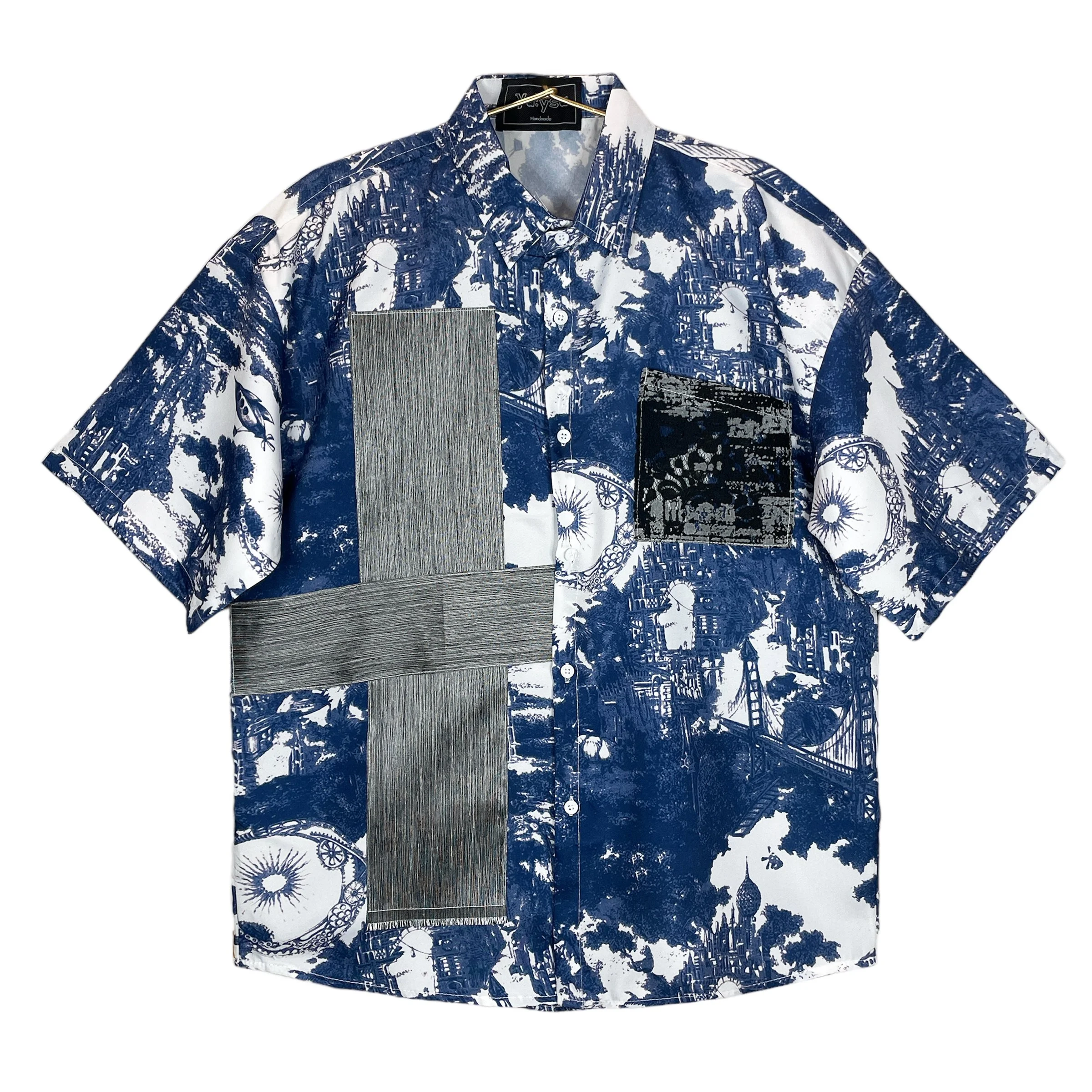 Kids City Print Short Sleeves Handmade Sky Blue Shirt