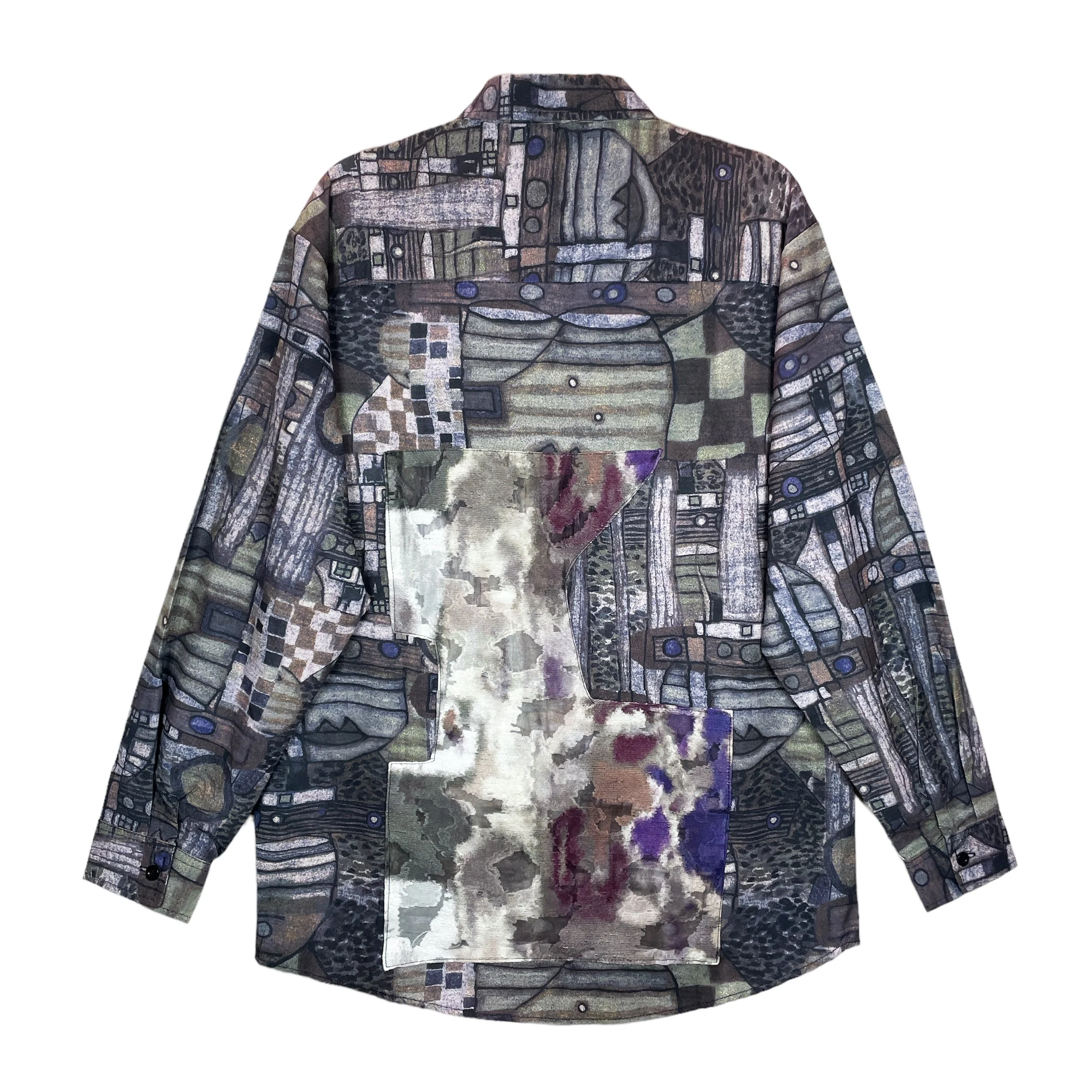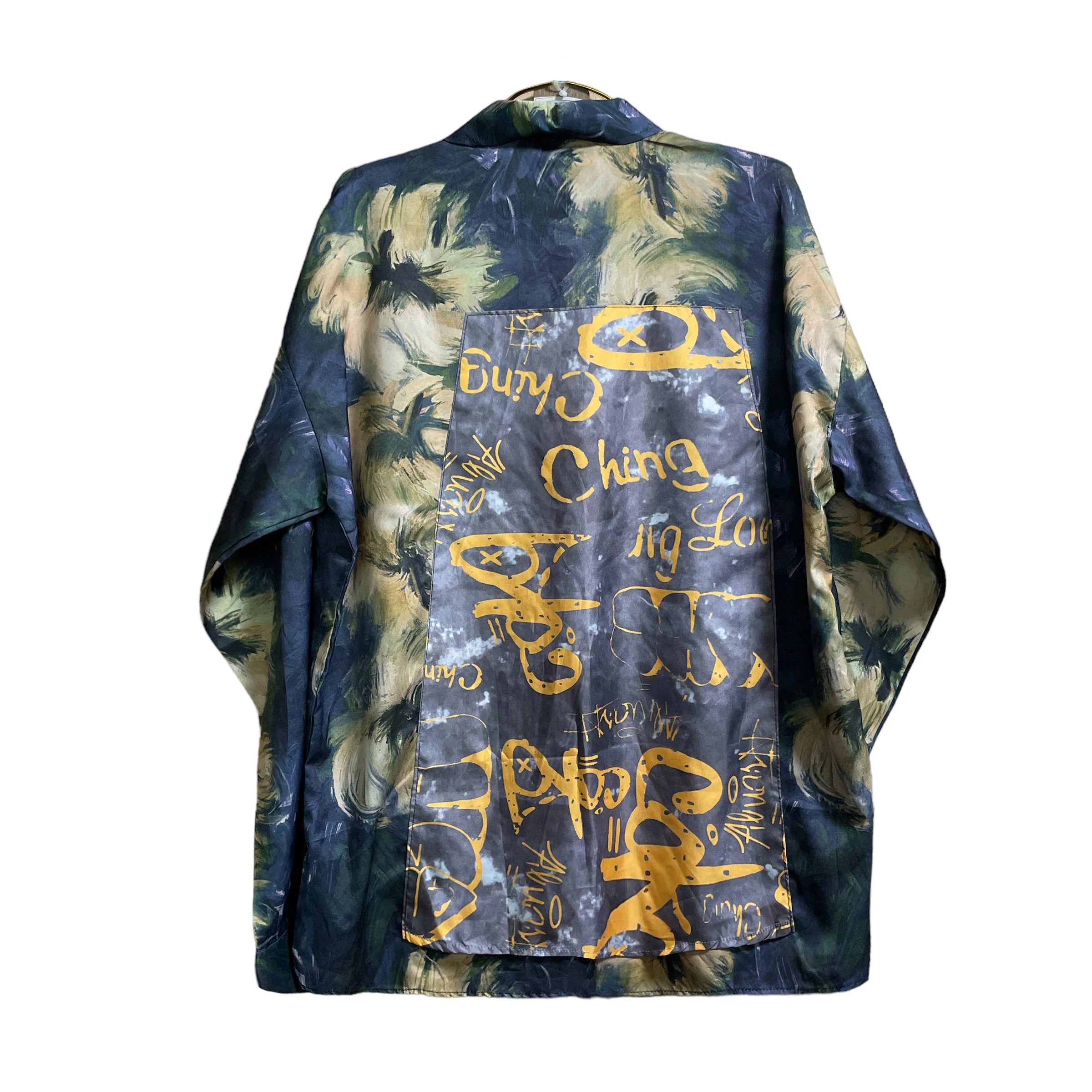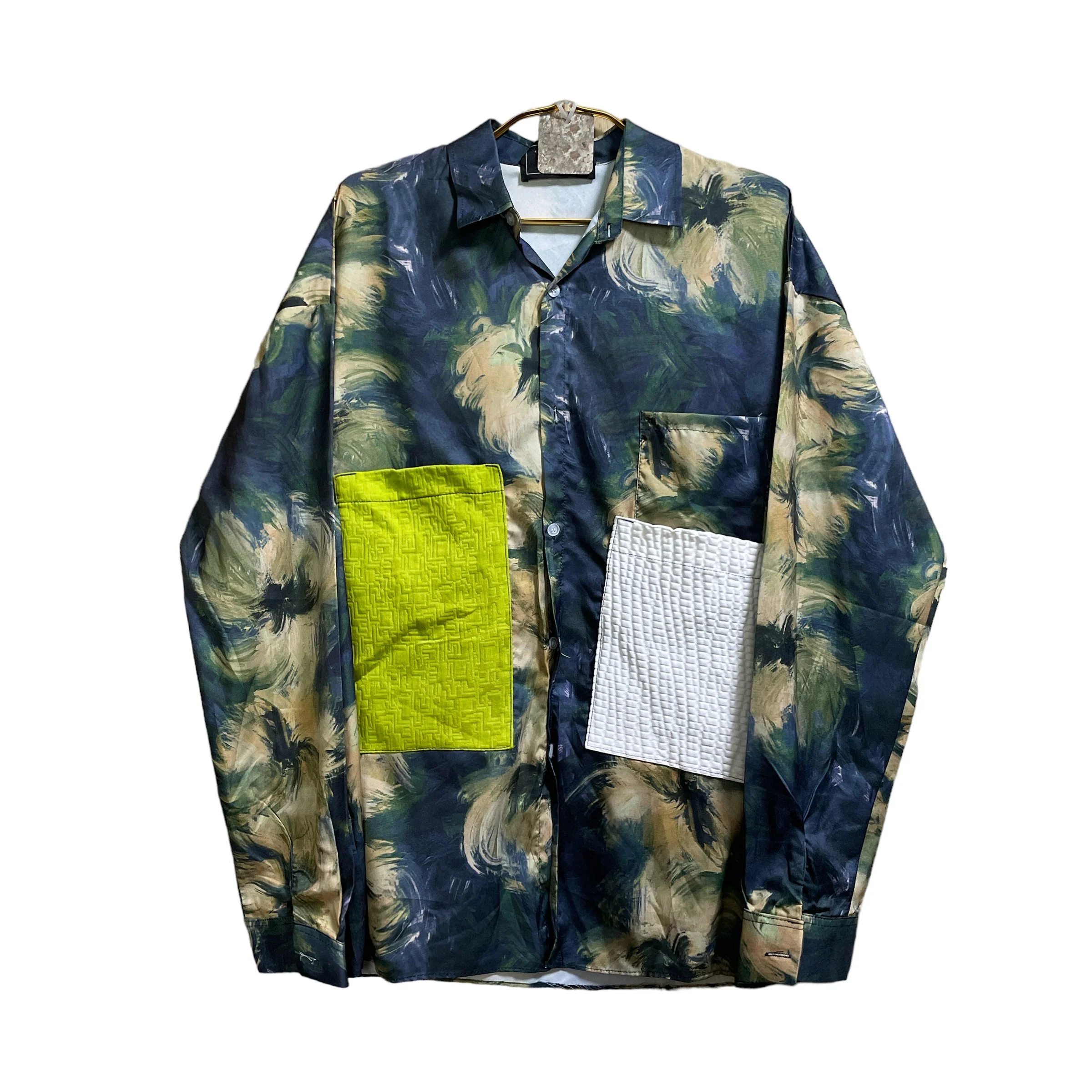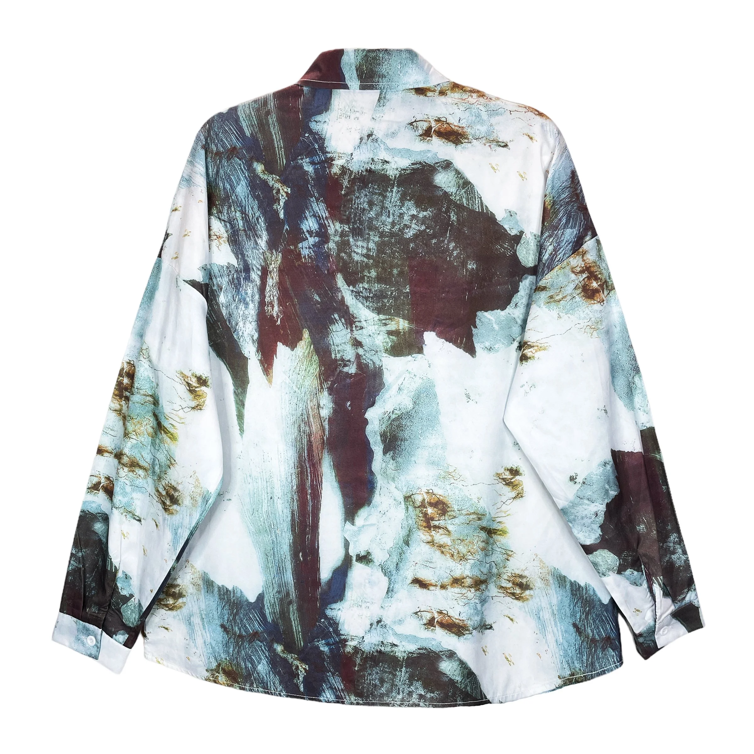 Marble Texture Print Long Sleeves Green Shirt Summer