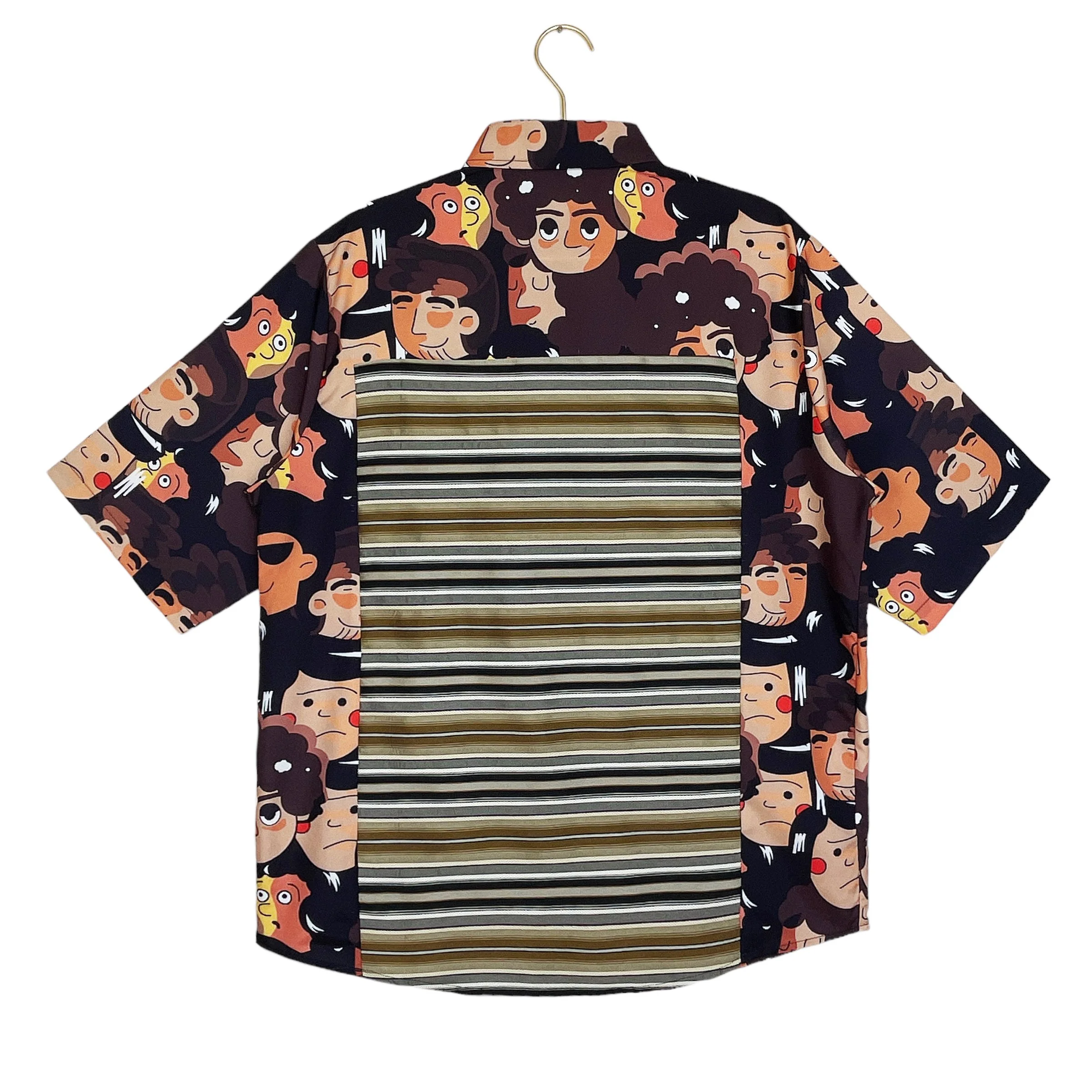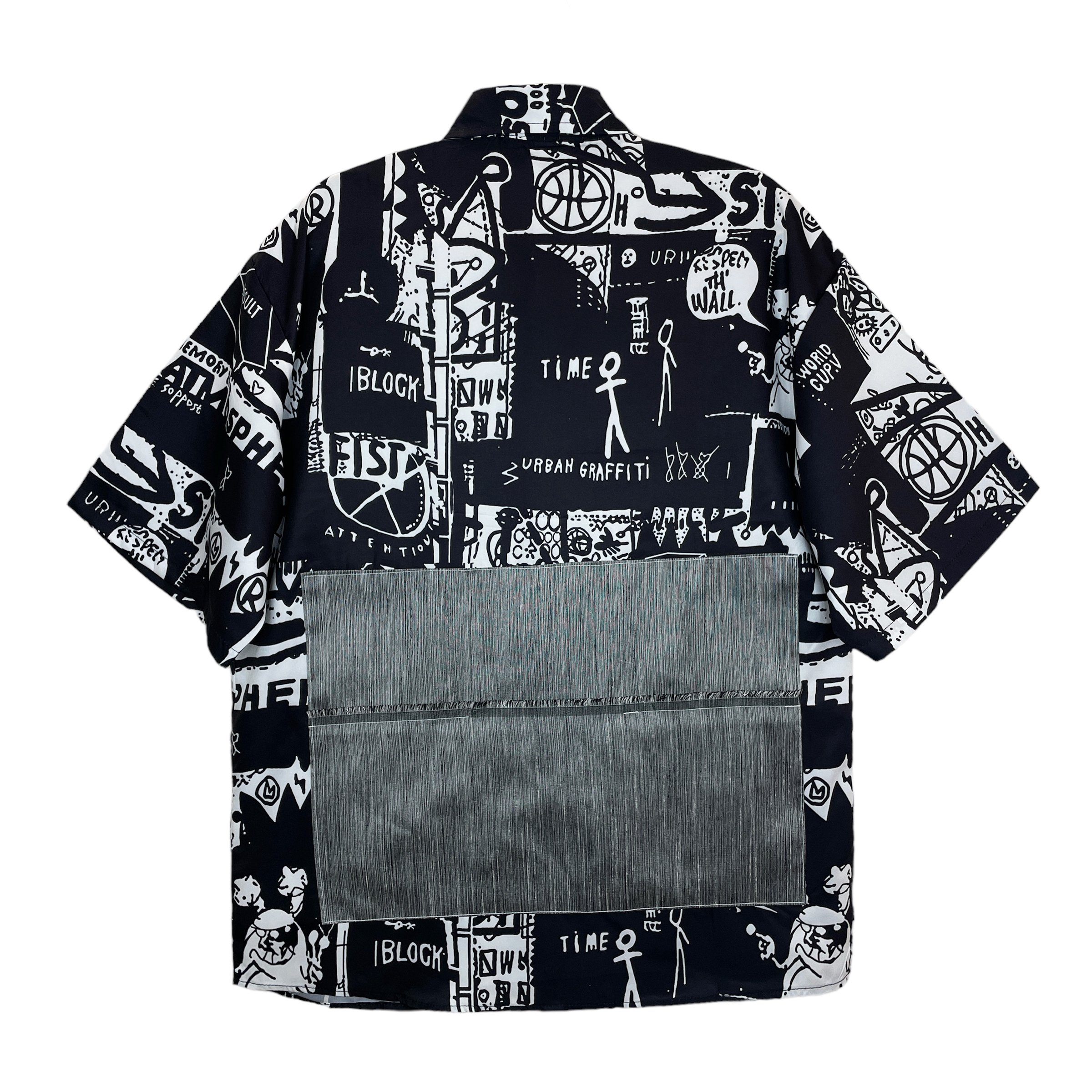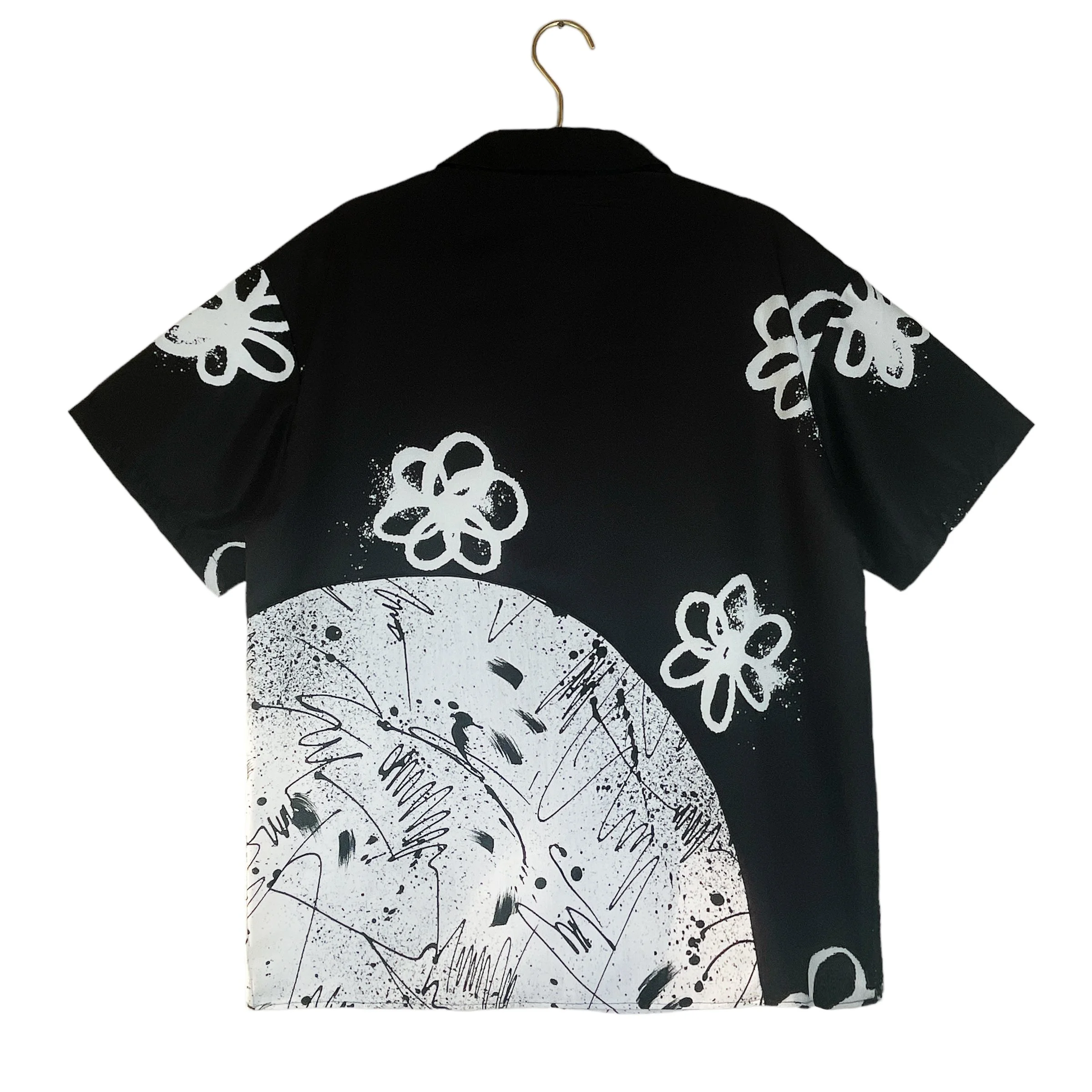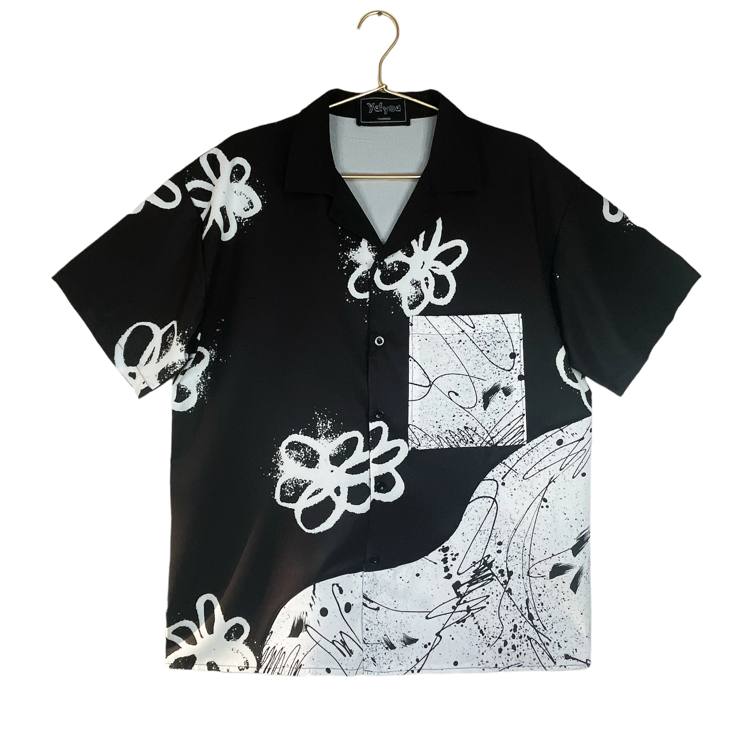 Ya!ysa Black Comic Print Short Sleeves Handmade Black Shirt