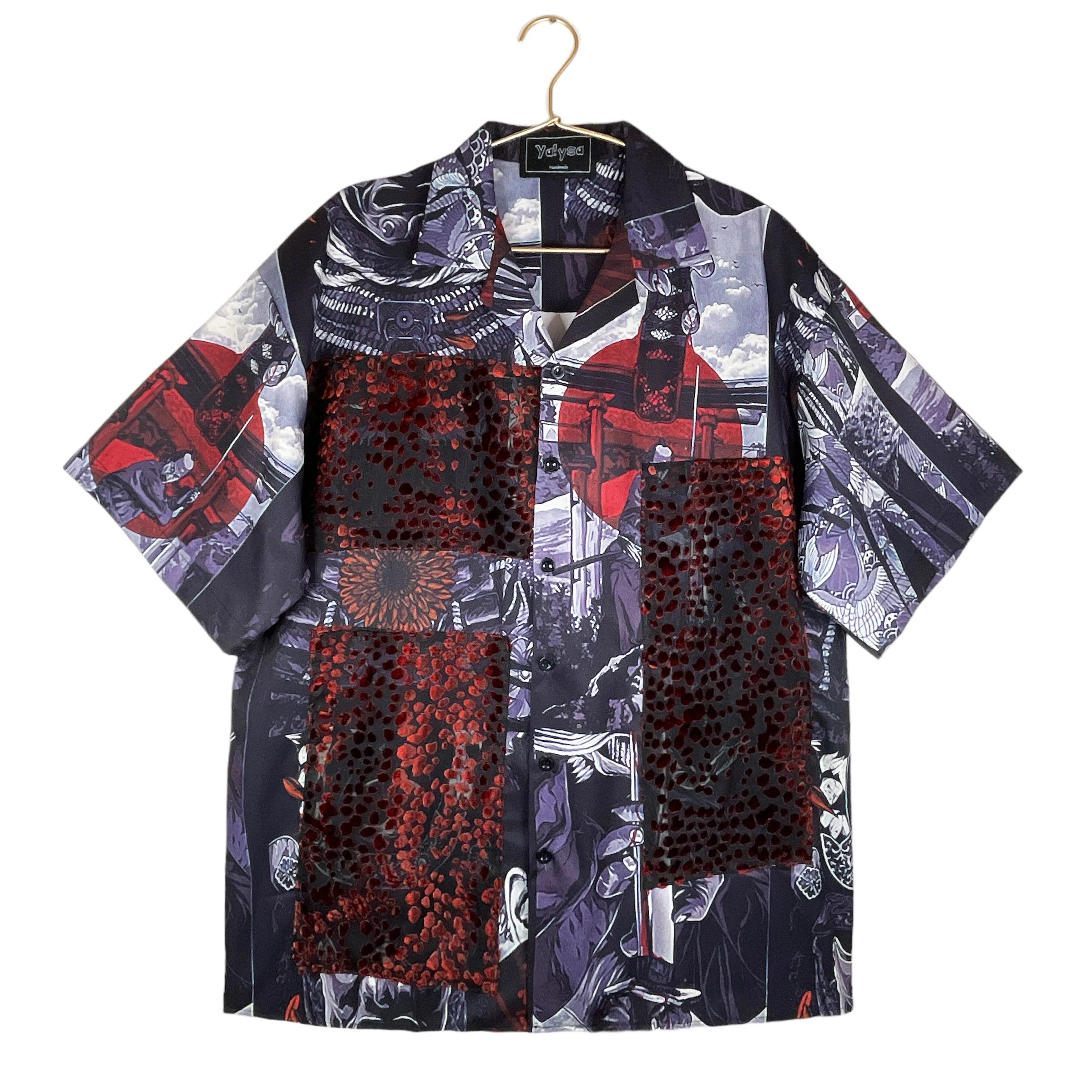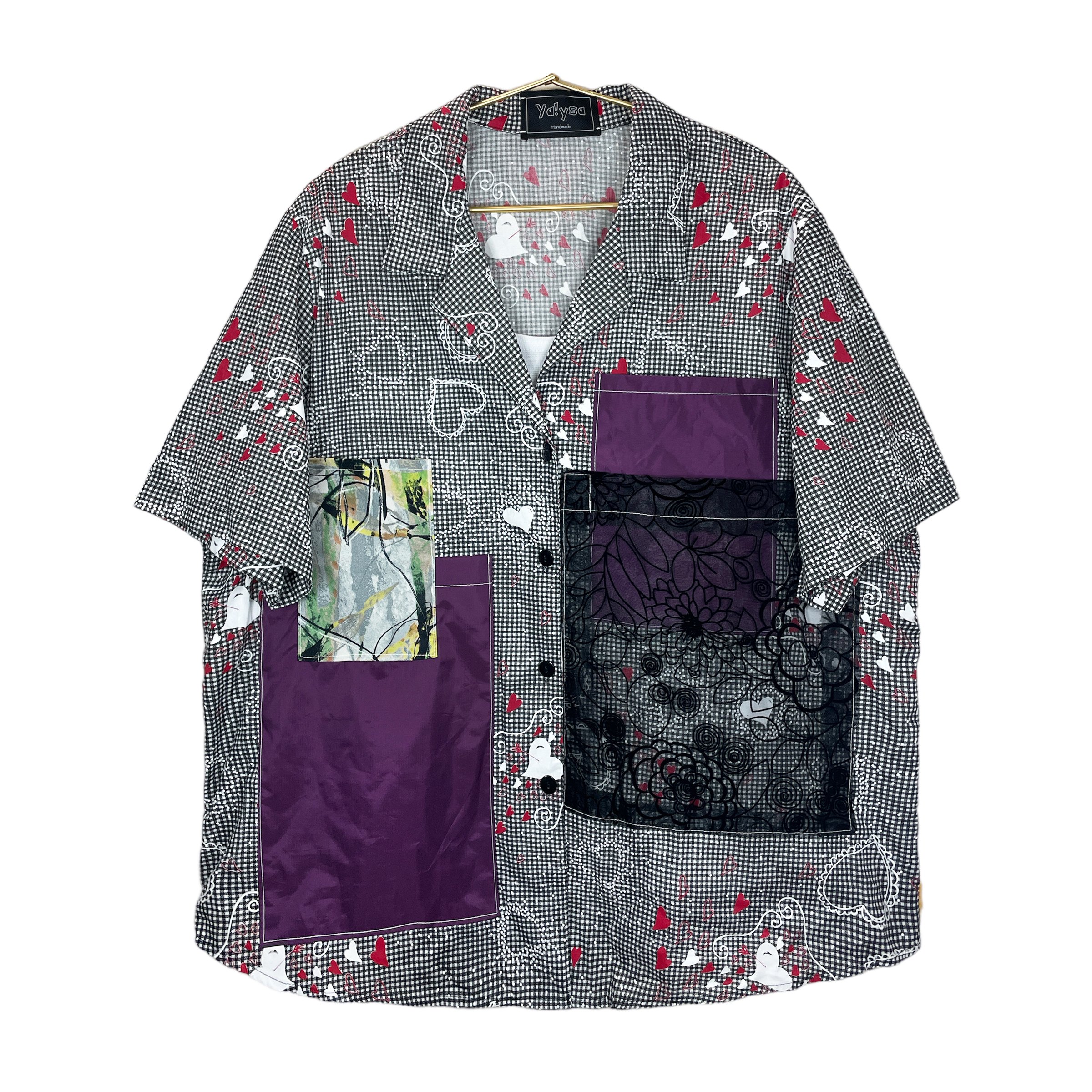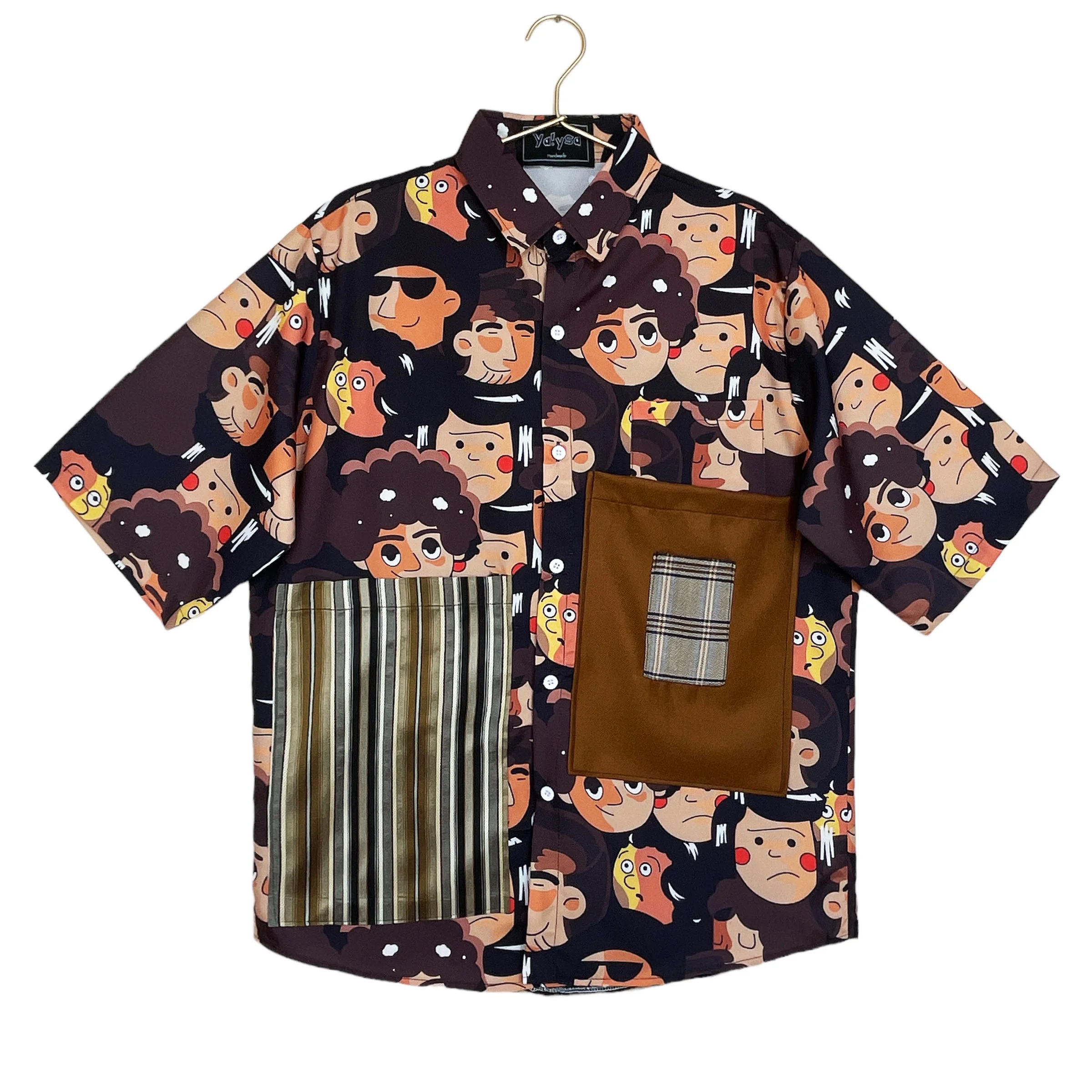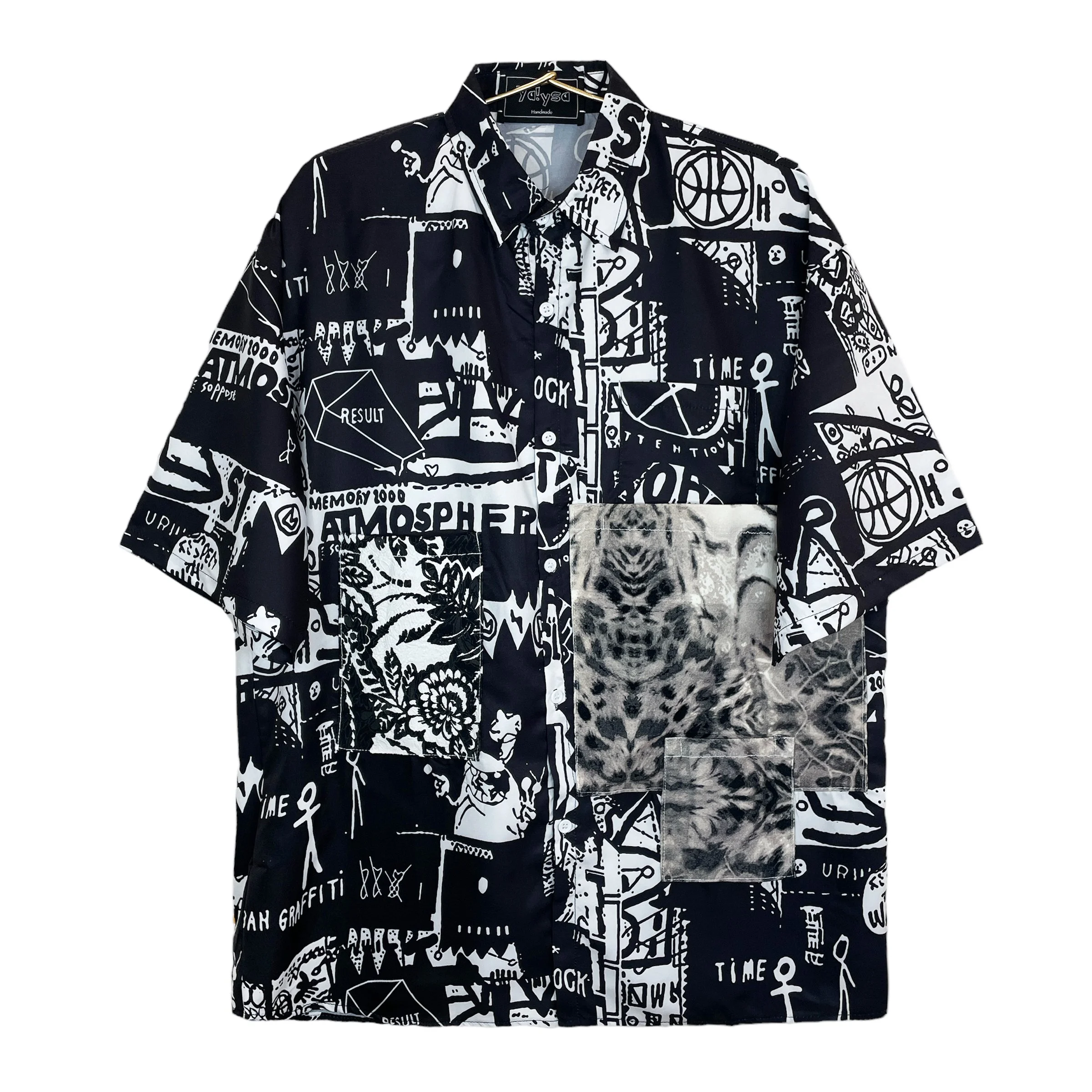 Ya!ysa Black Comic Print Short Sleeves Handmade Black Shirt