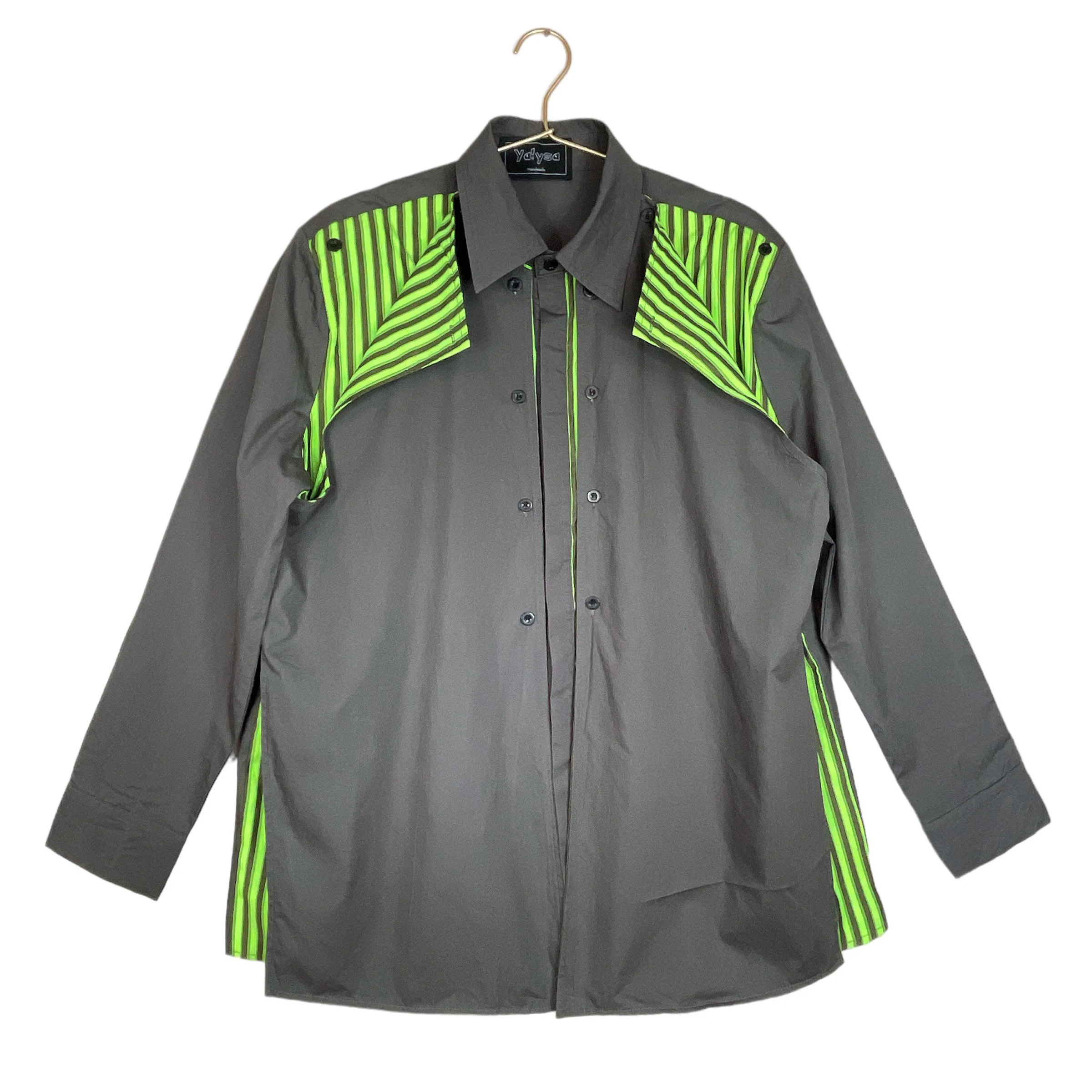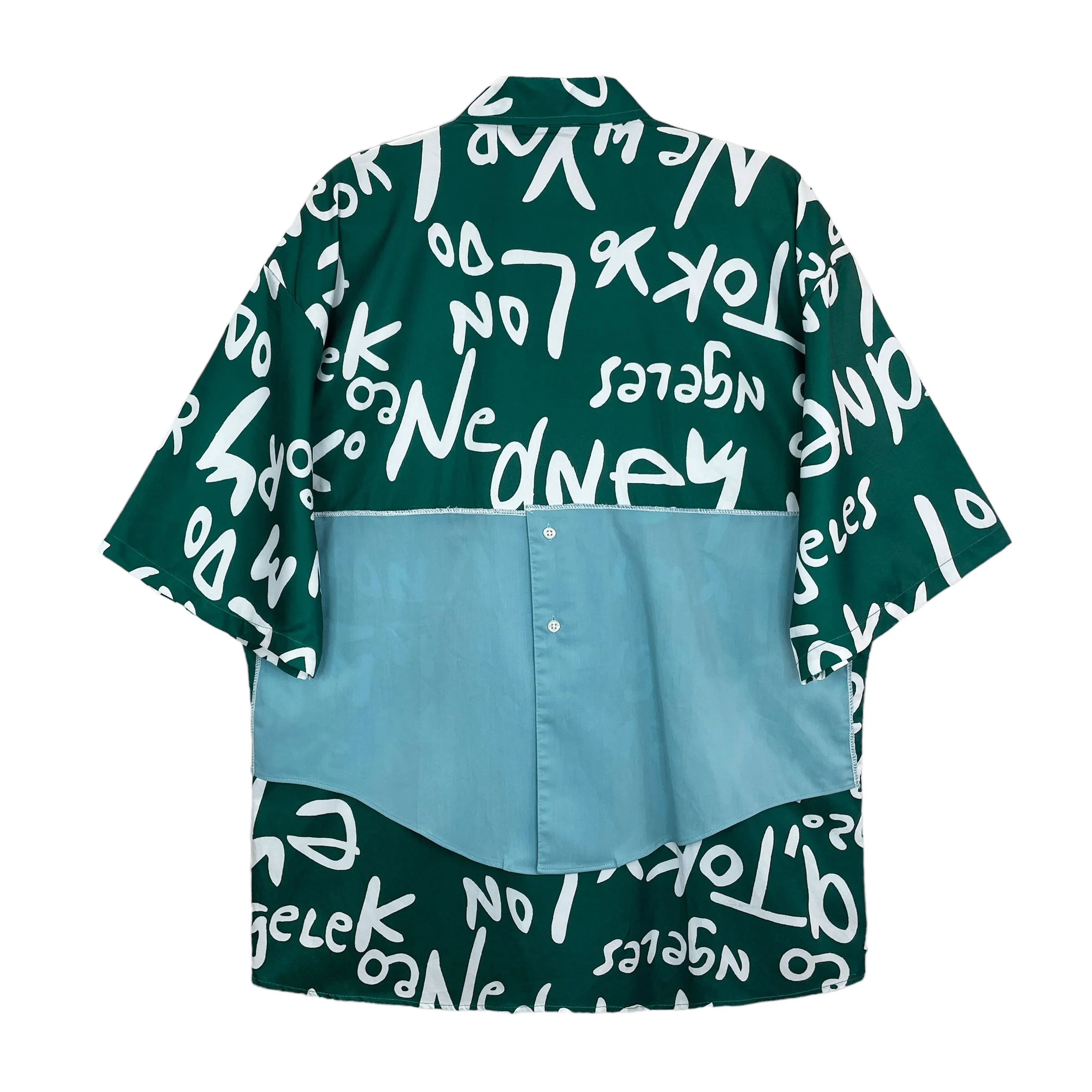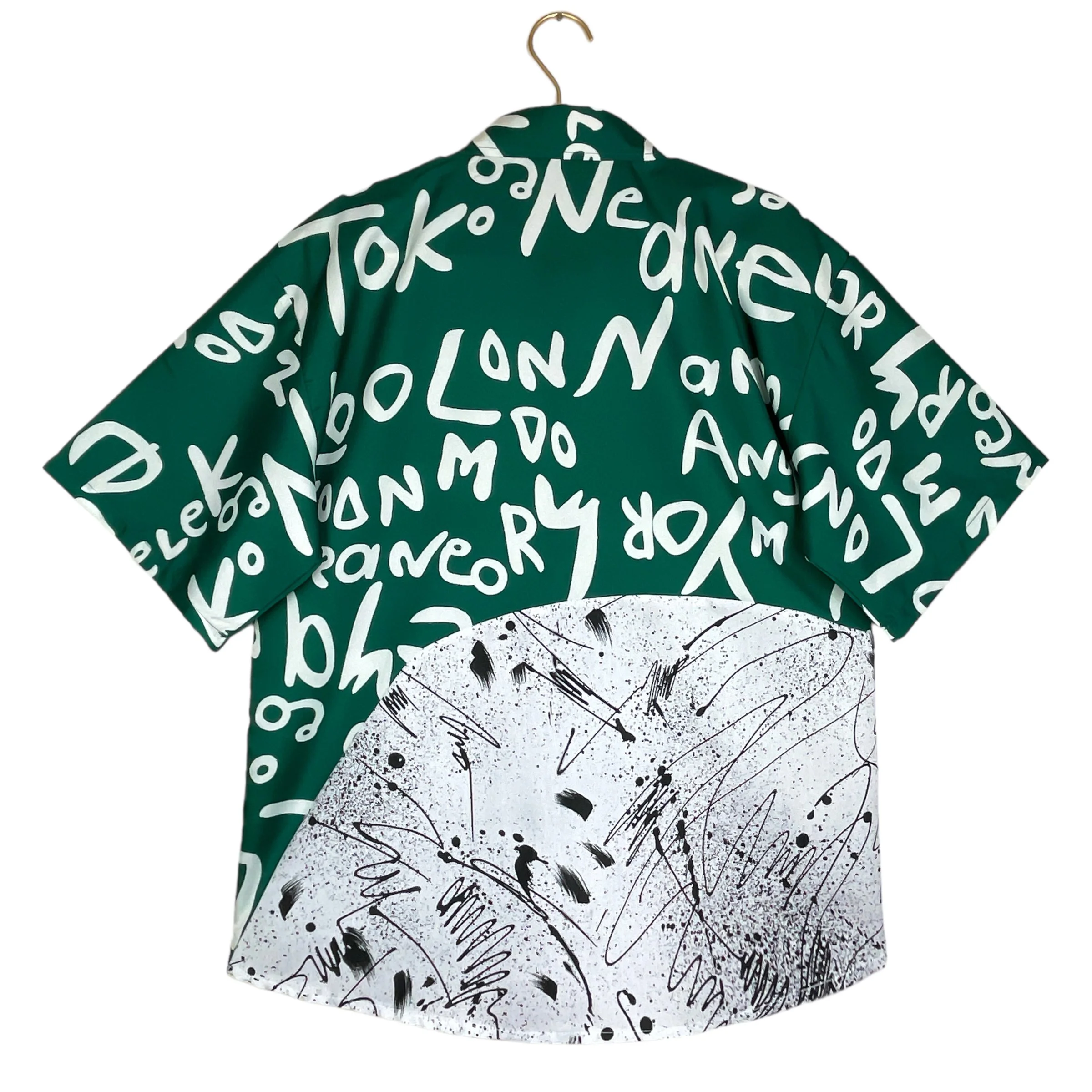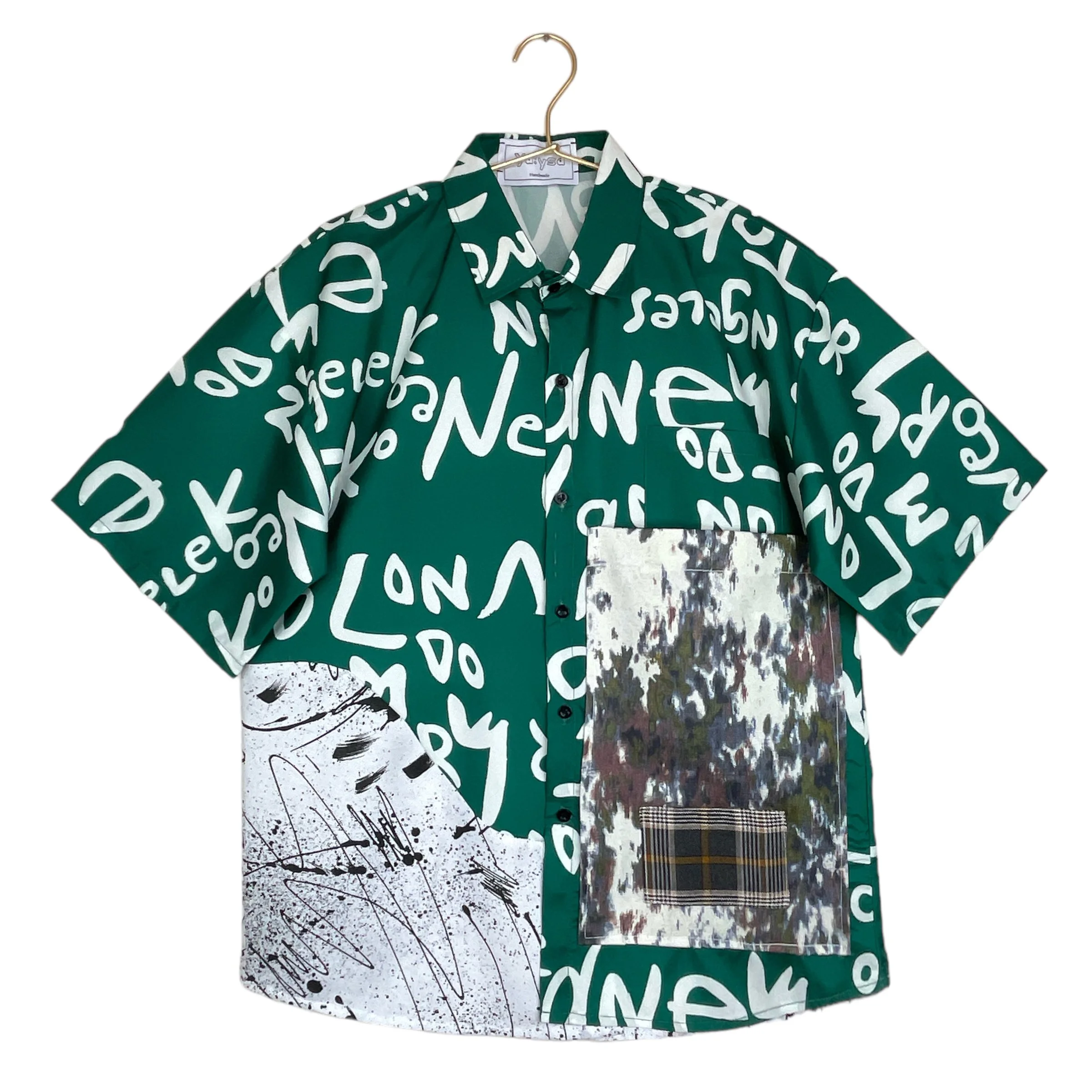 UFO and Rockets Print Short Sleeves Handmade Green Shirt