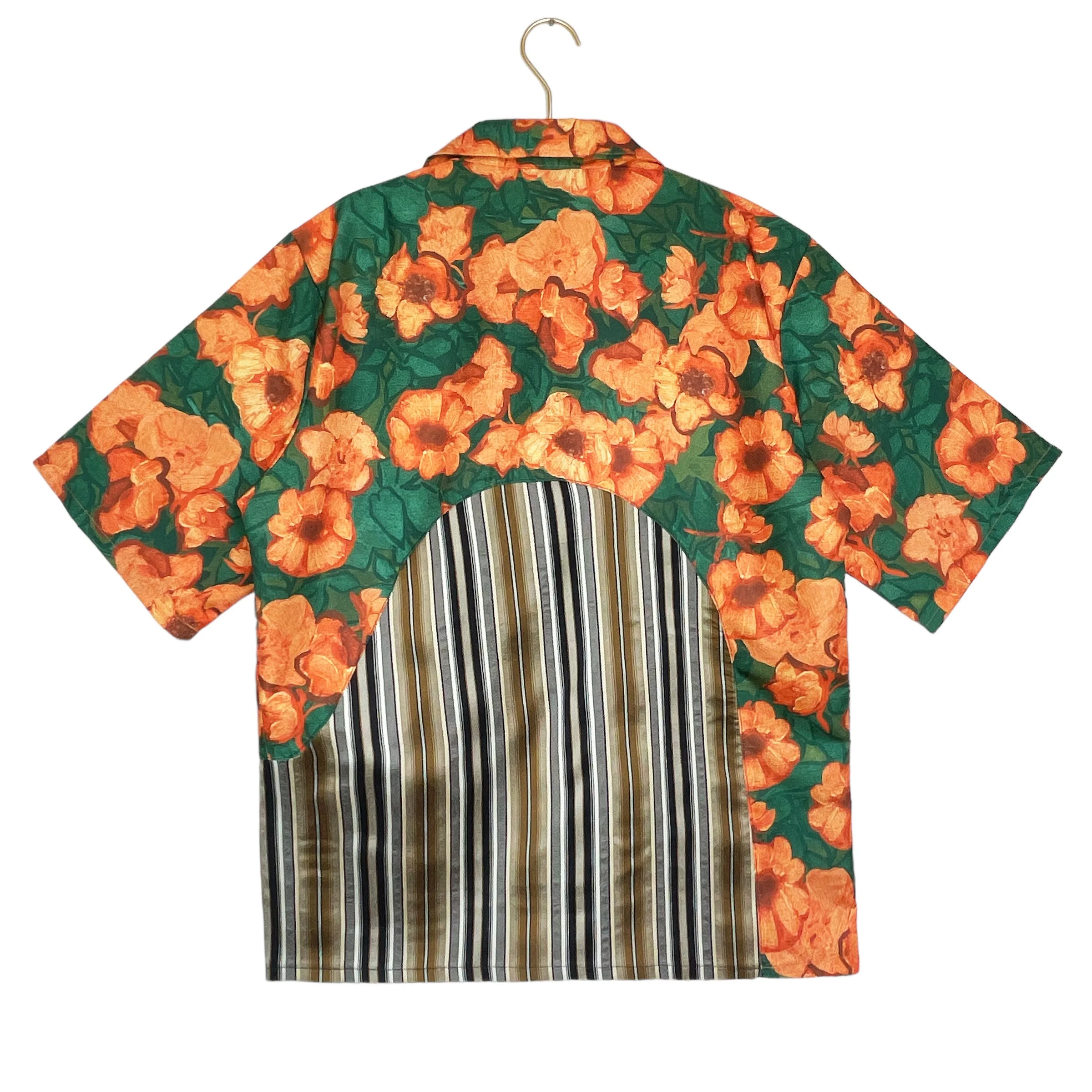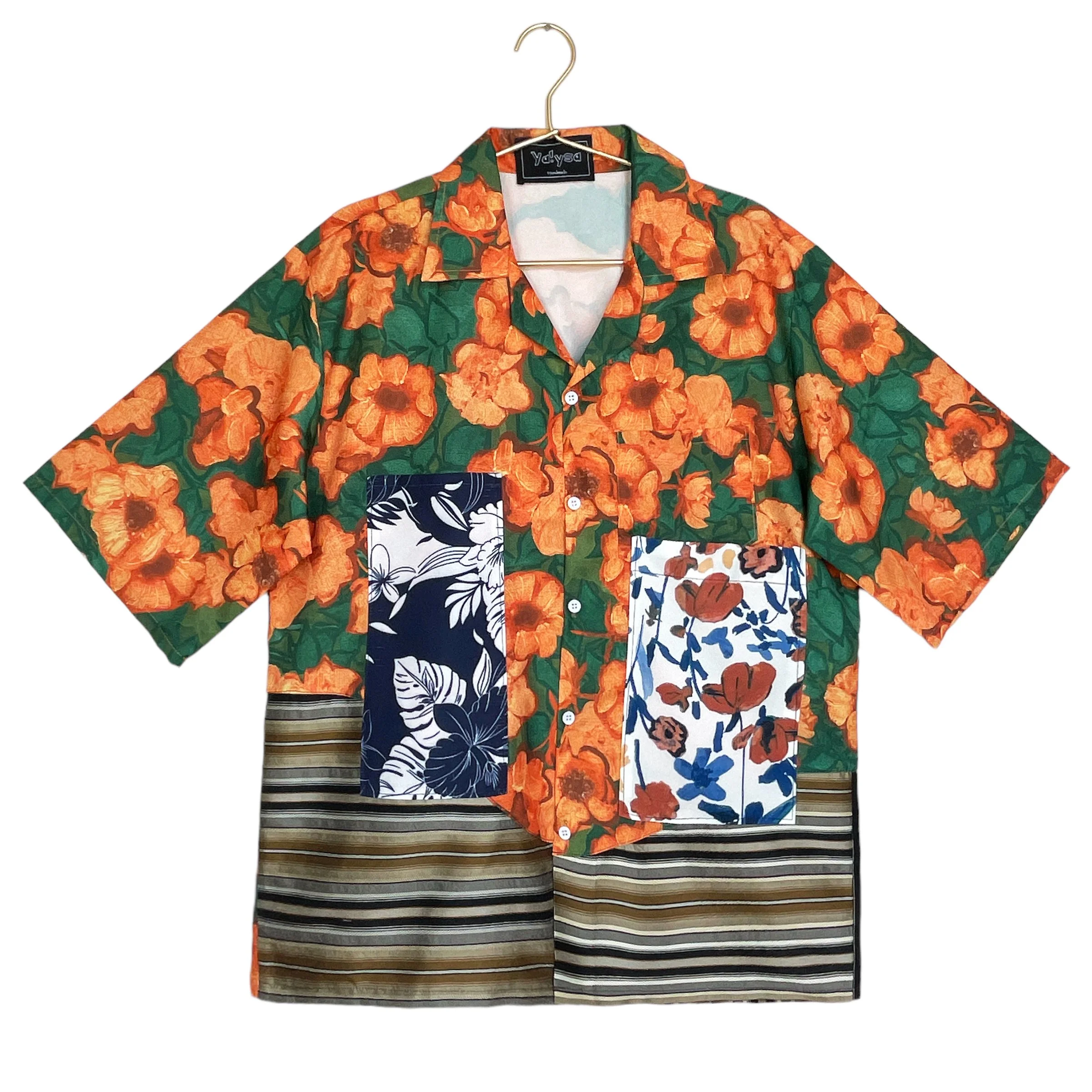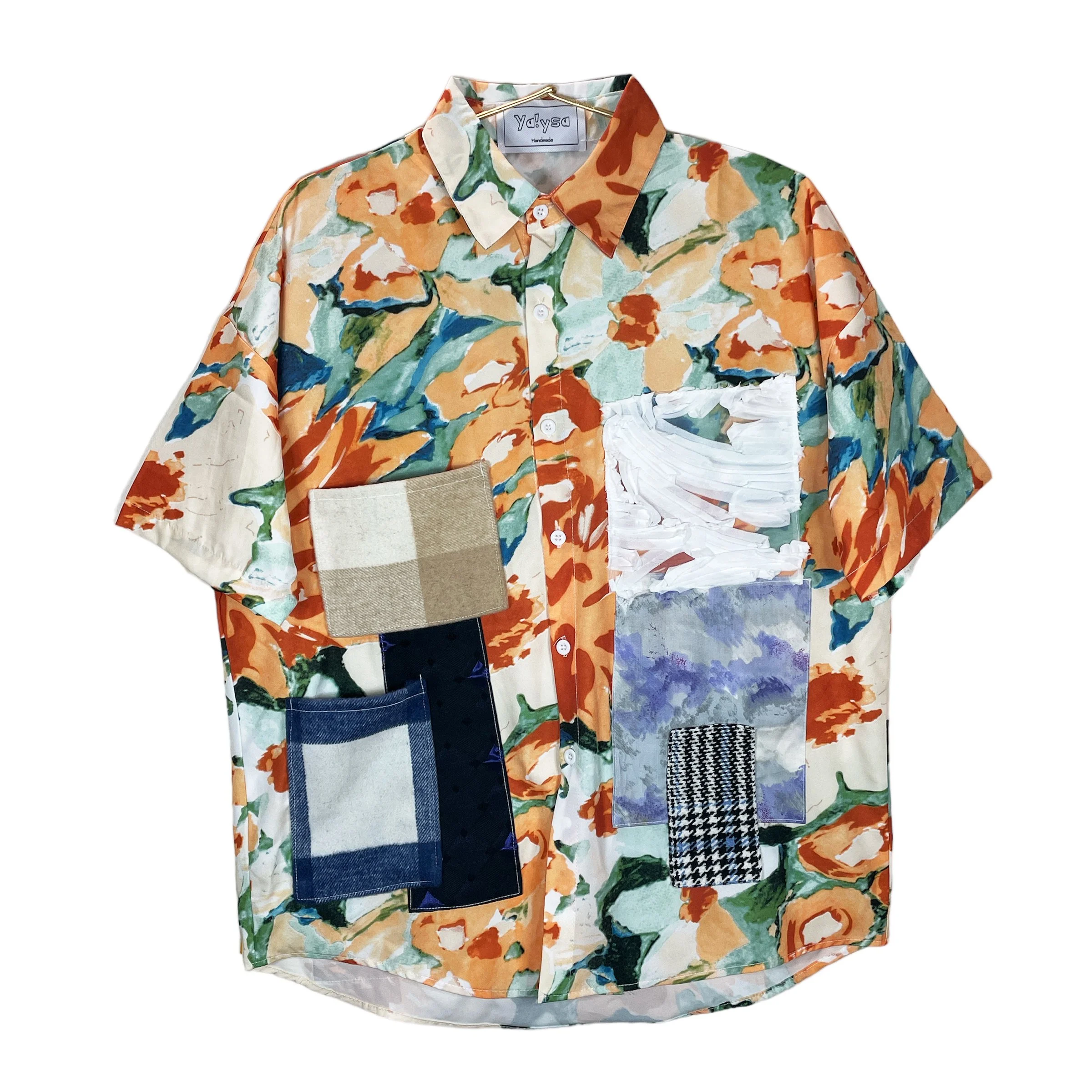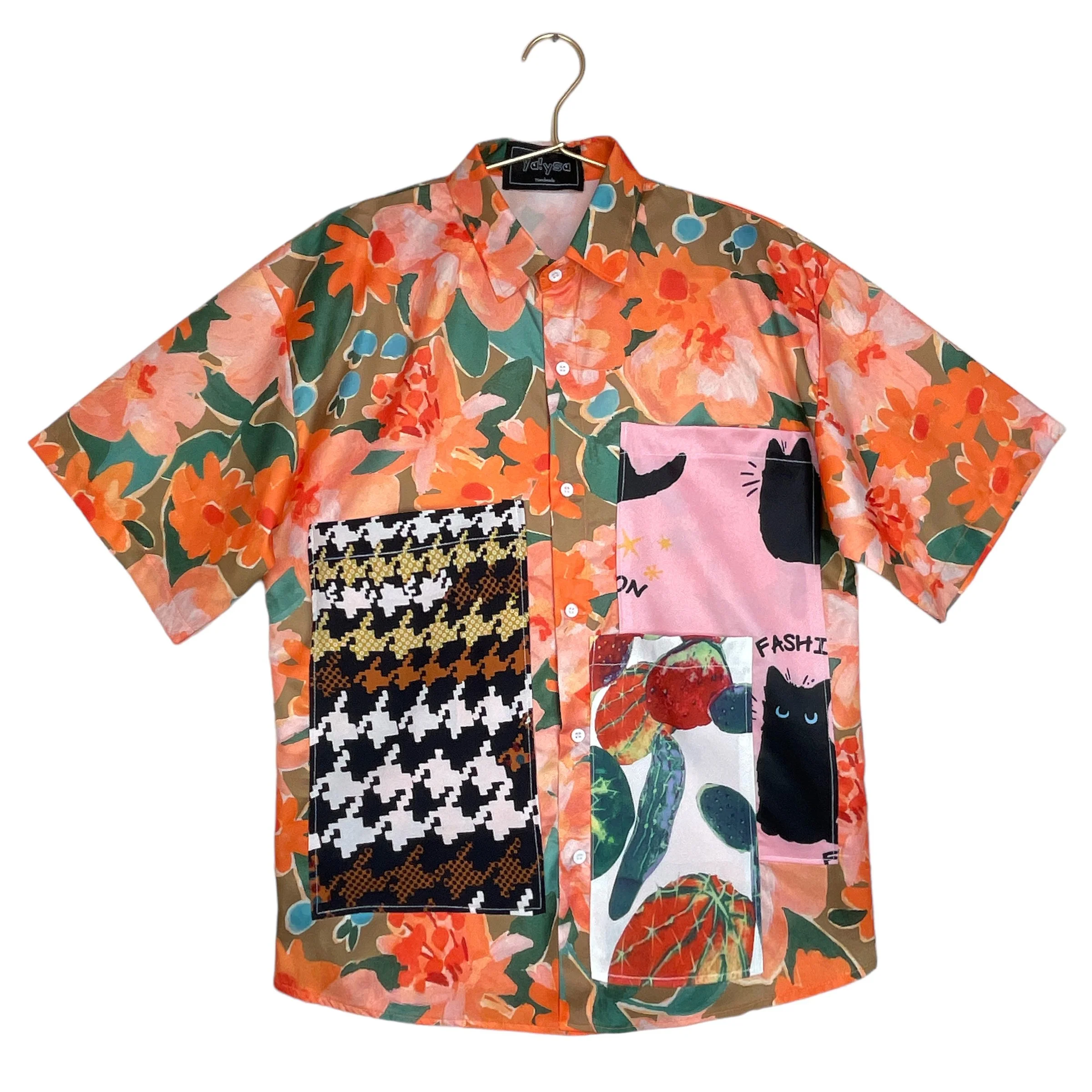 Orange Daisy Print Short Sleeves Handmade Shirt