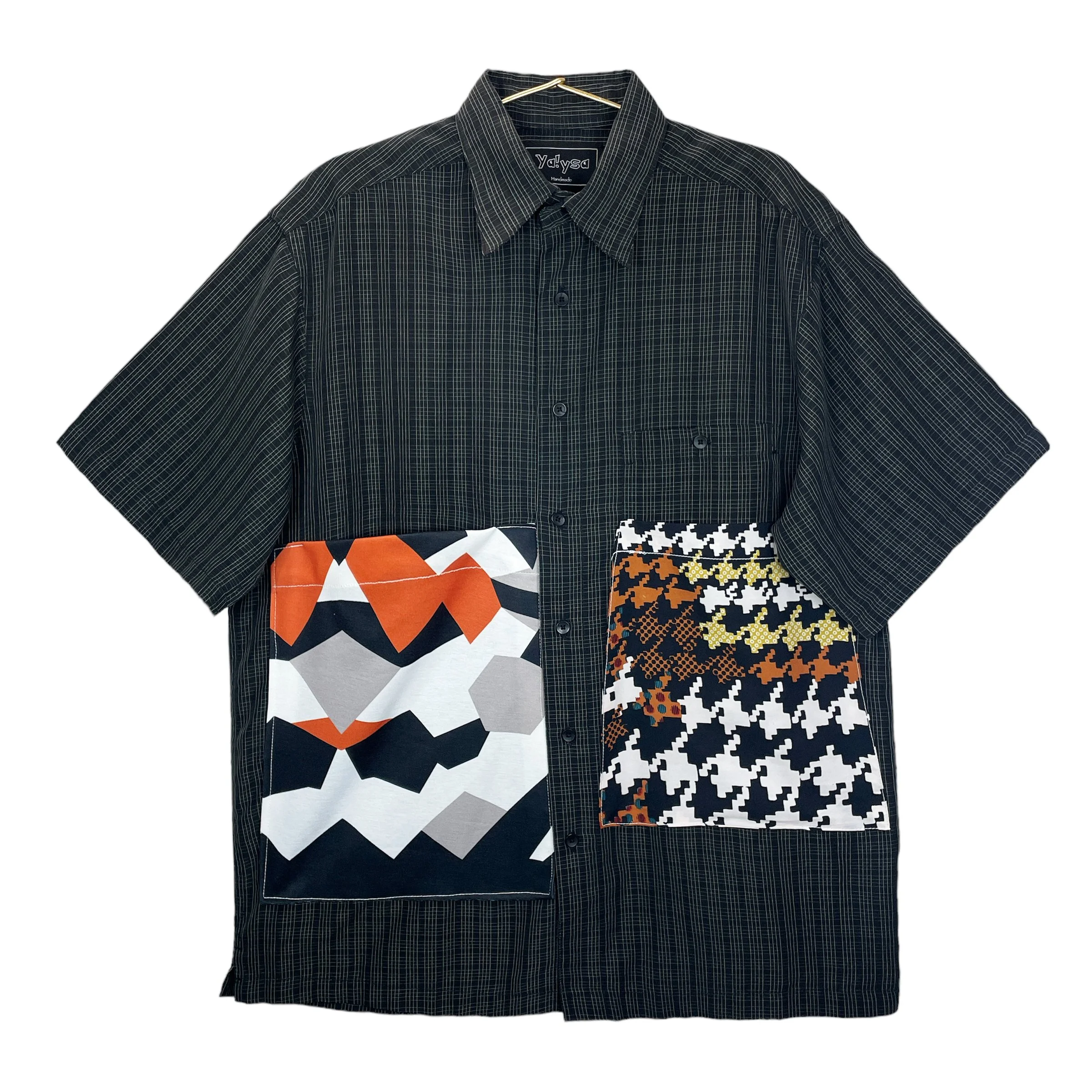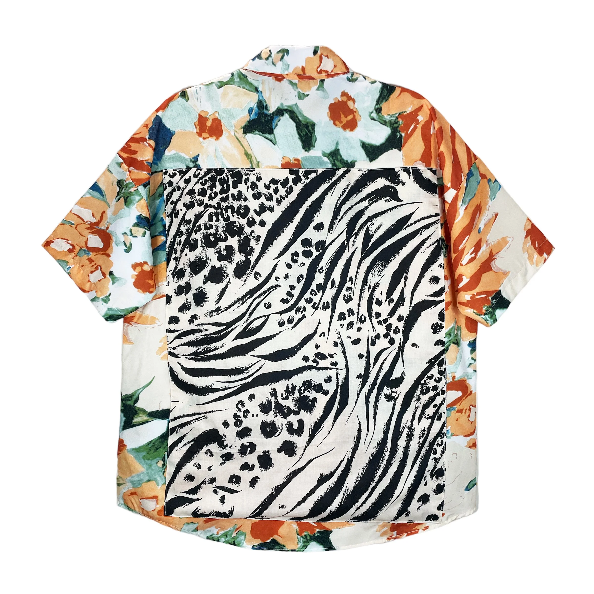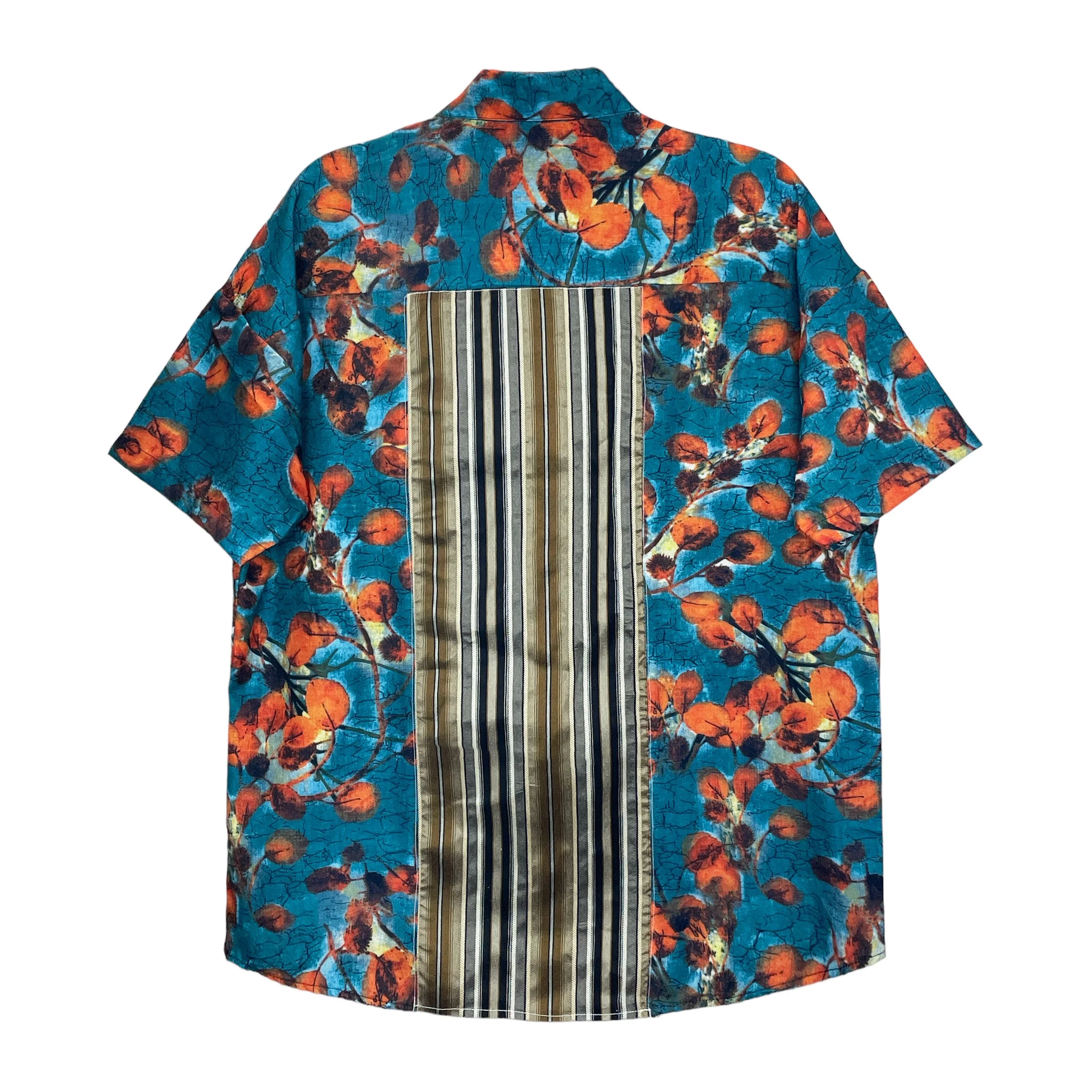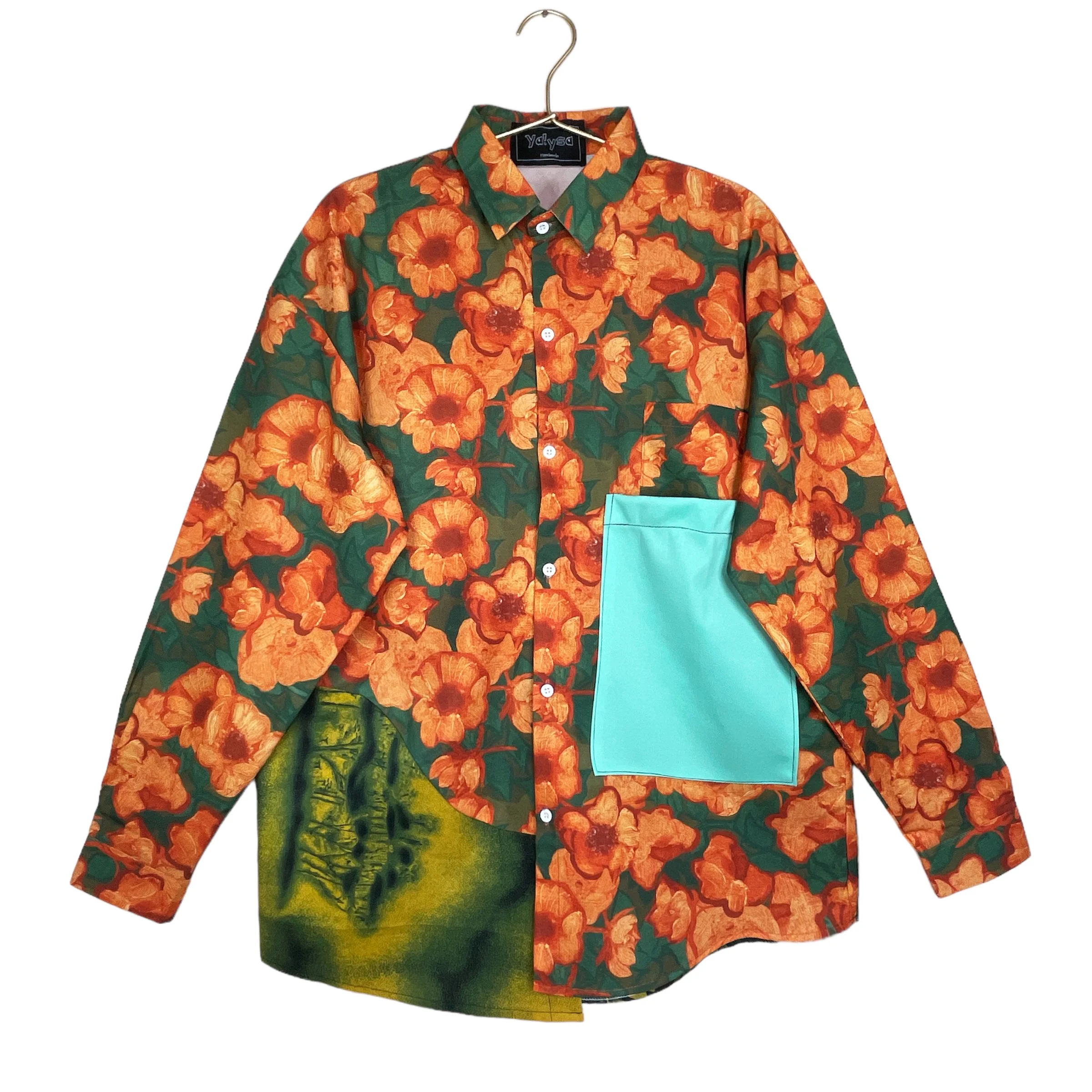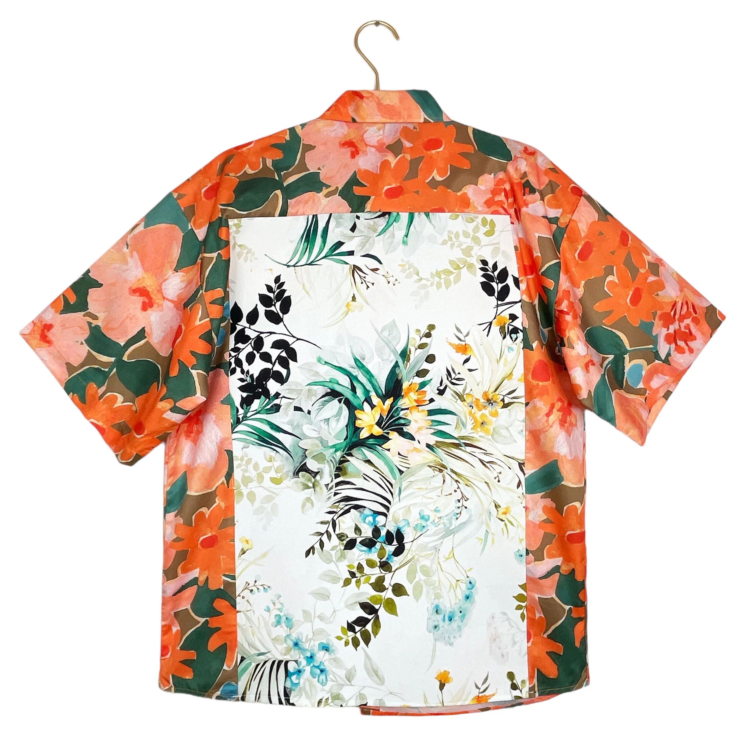 Orange Daisy Print Short Sleeves Handmade Shirt