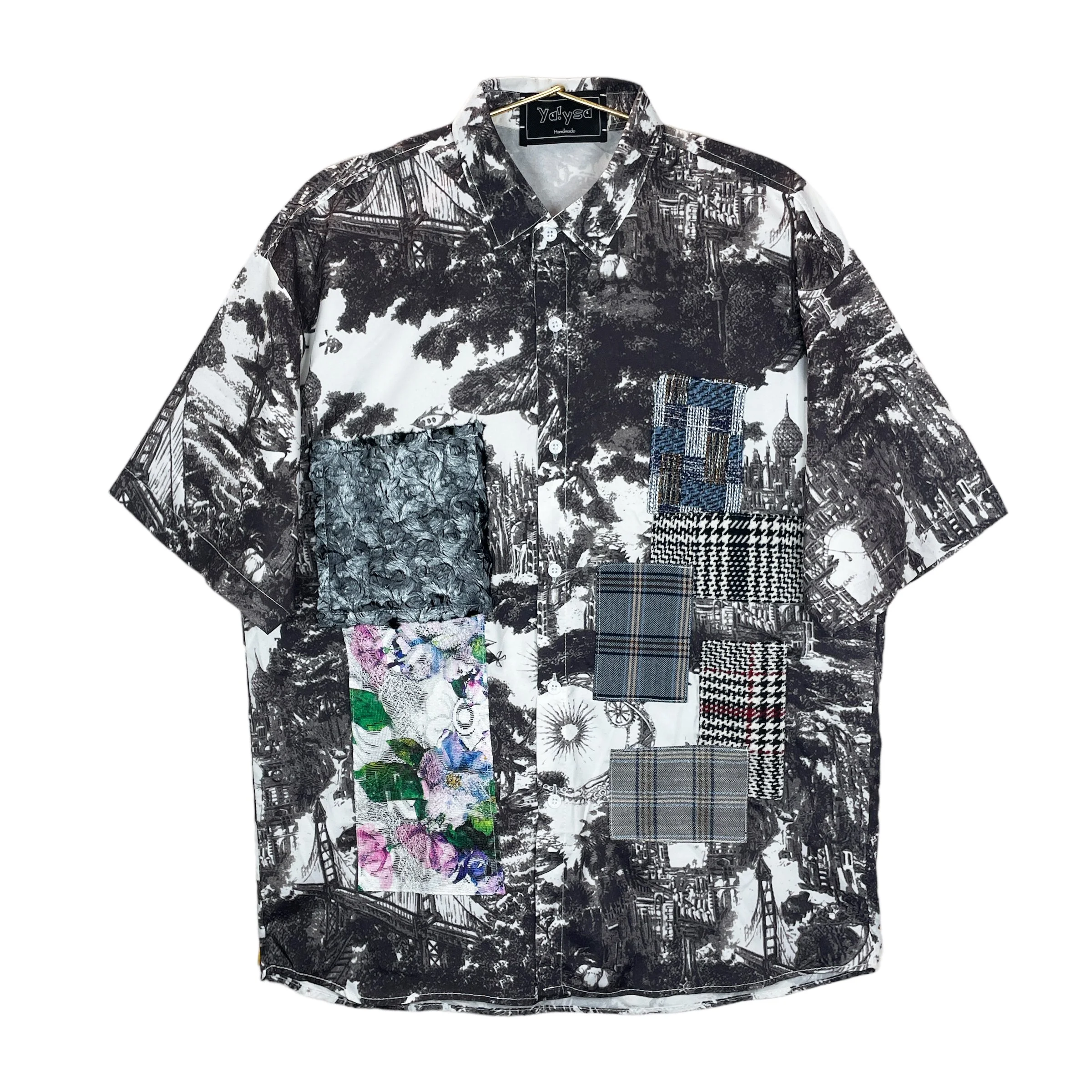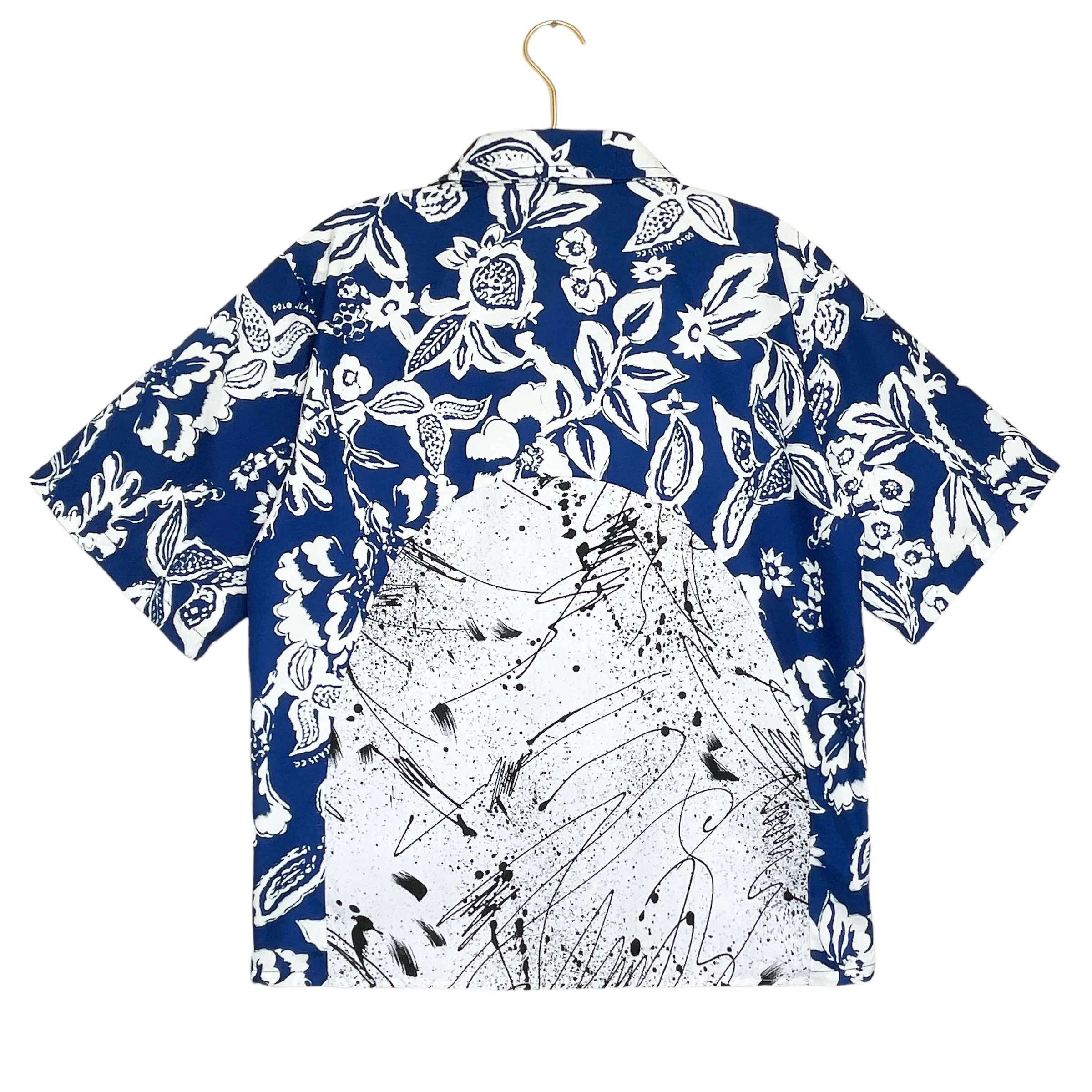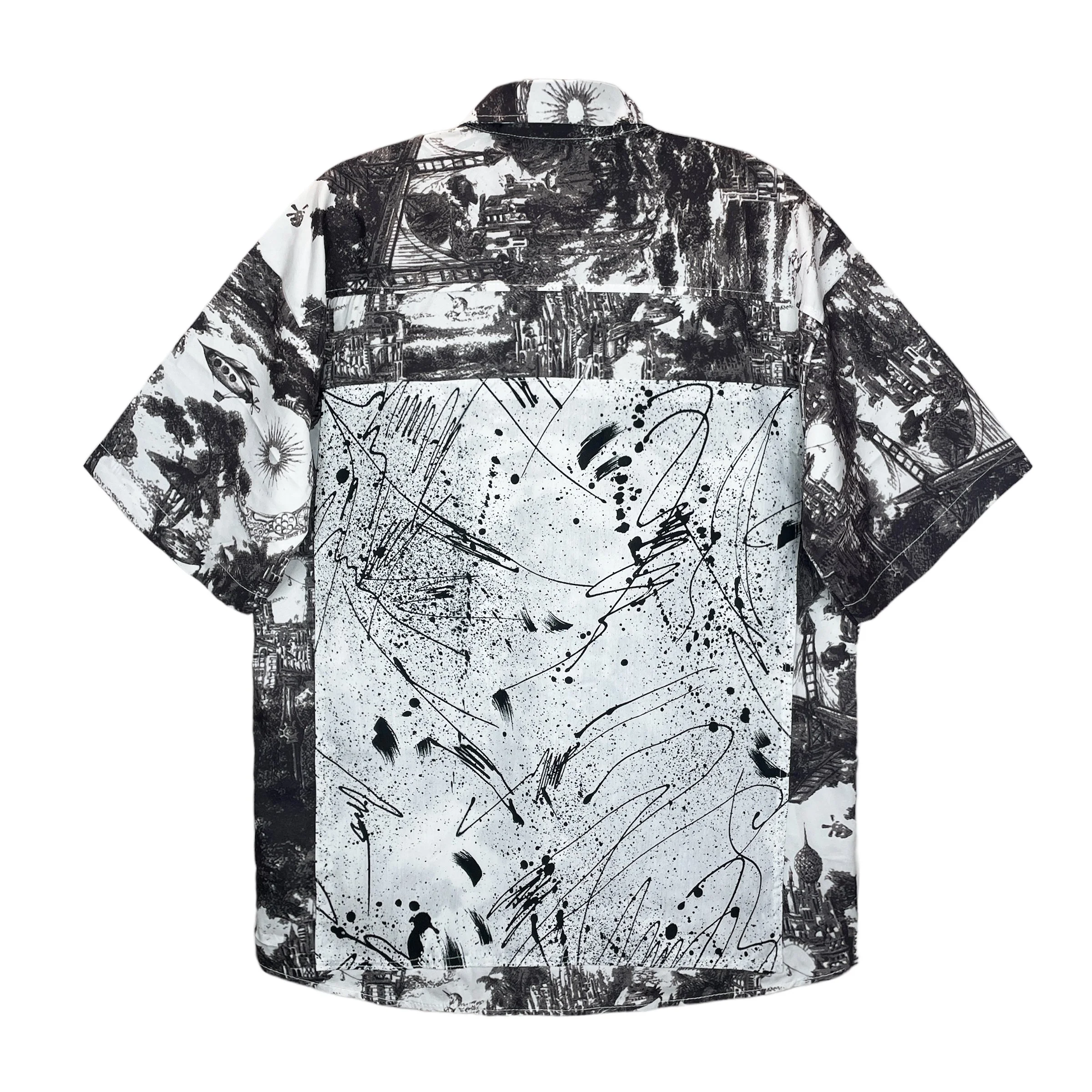 Ya!ysa Chinese Ink Painting Print Short Sleeves Handmade White Shirt