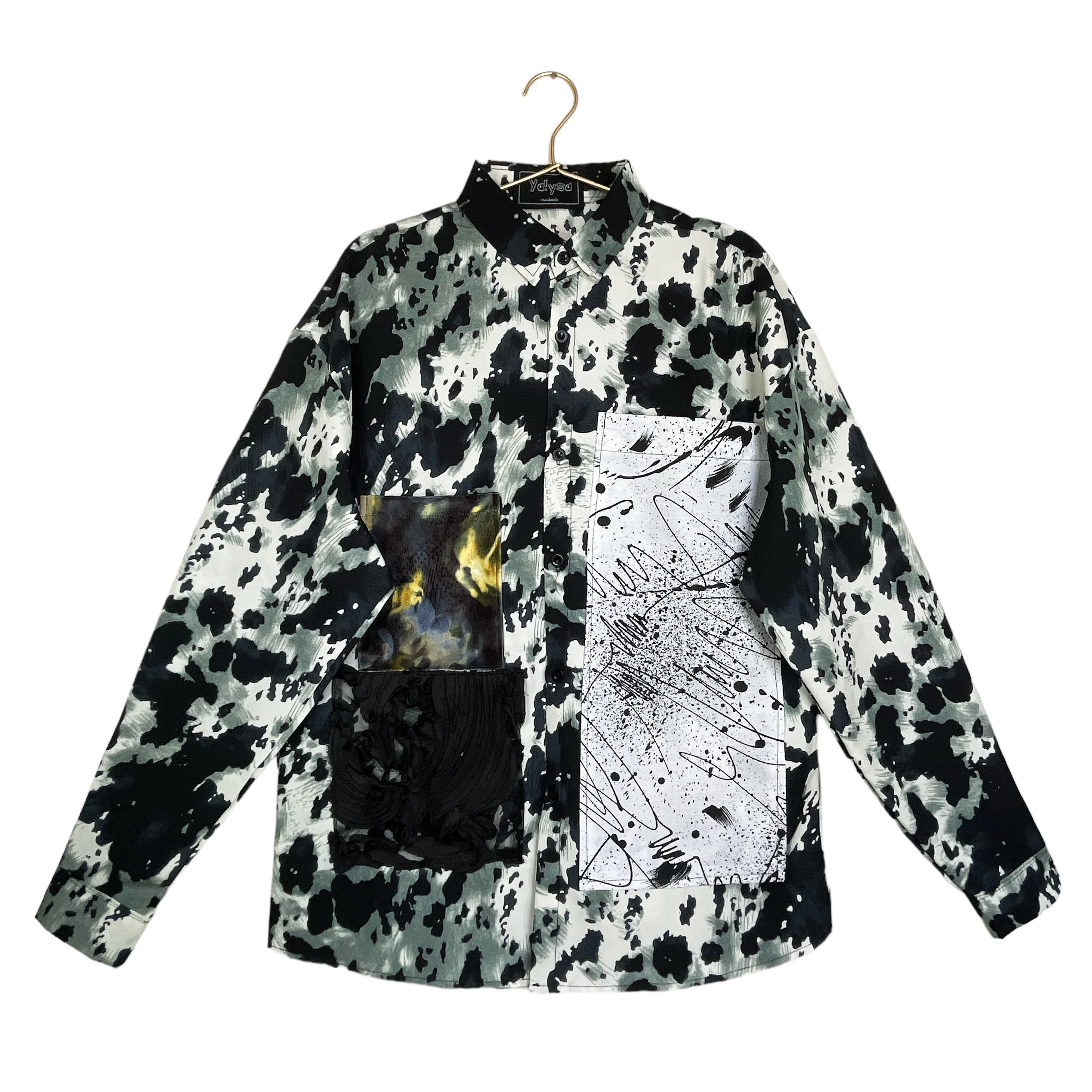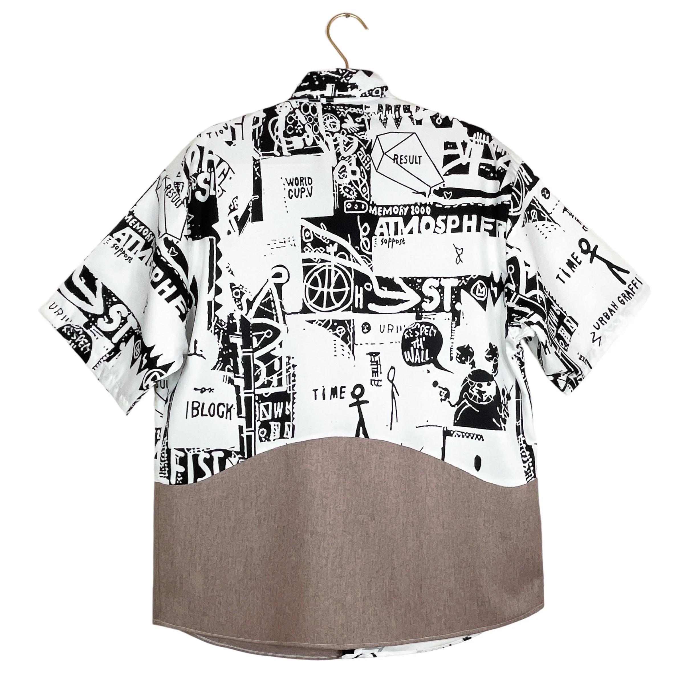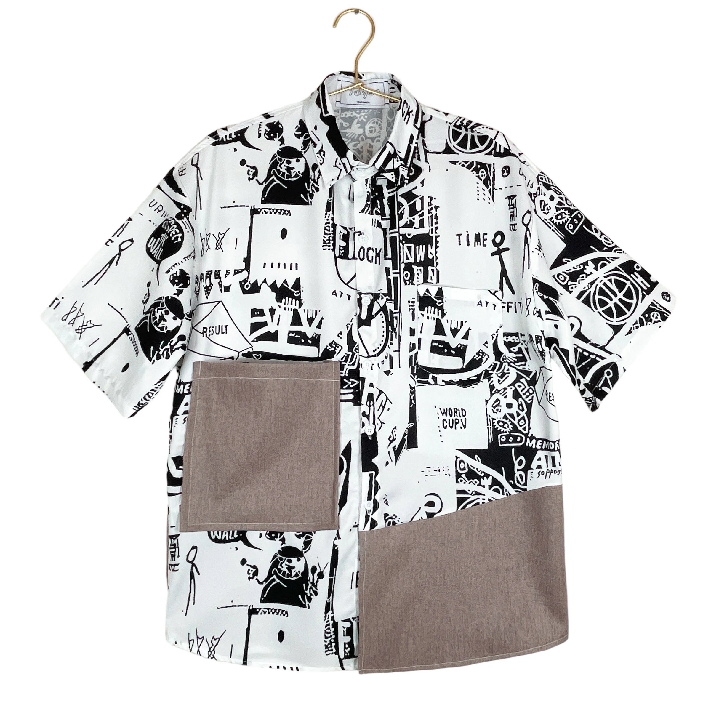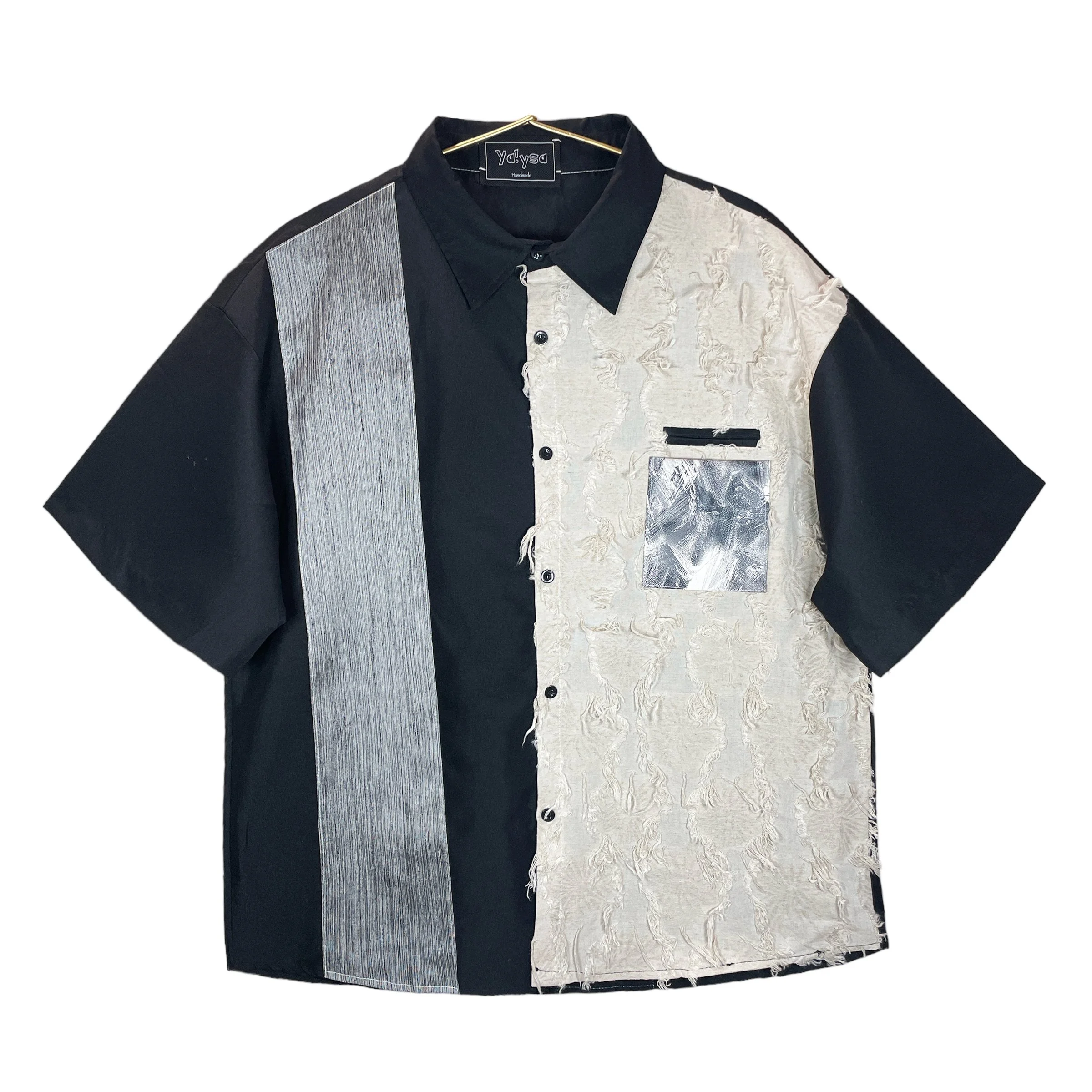 Ya!ysa Chinese Ink Painting Print Short Sleeves Handmade White Shirt