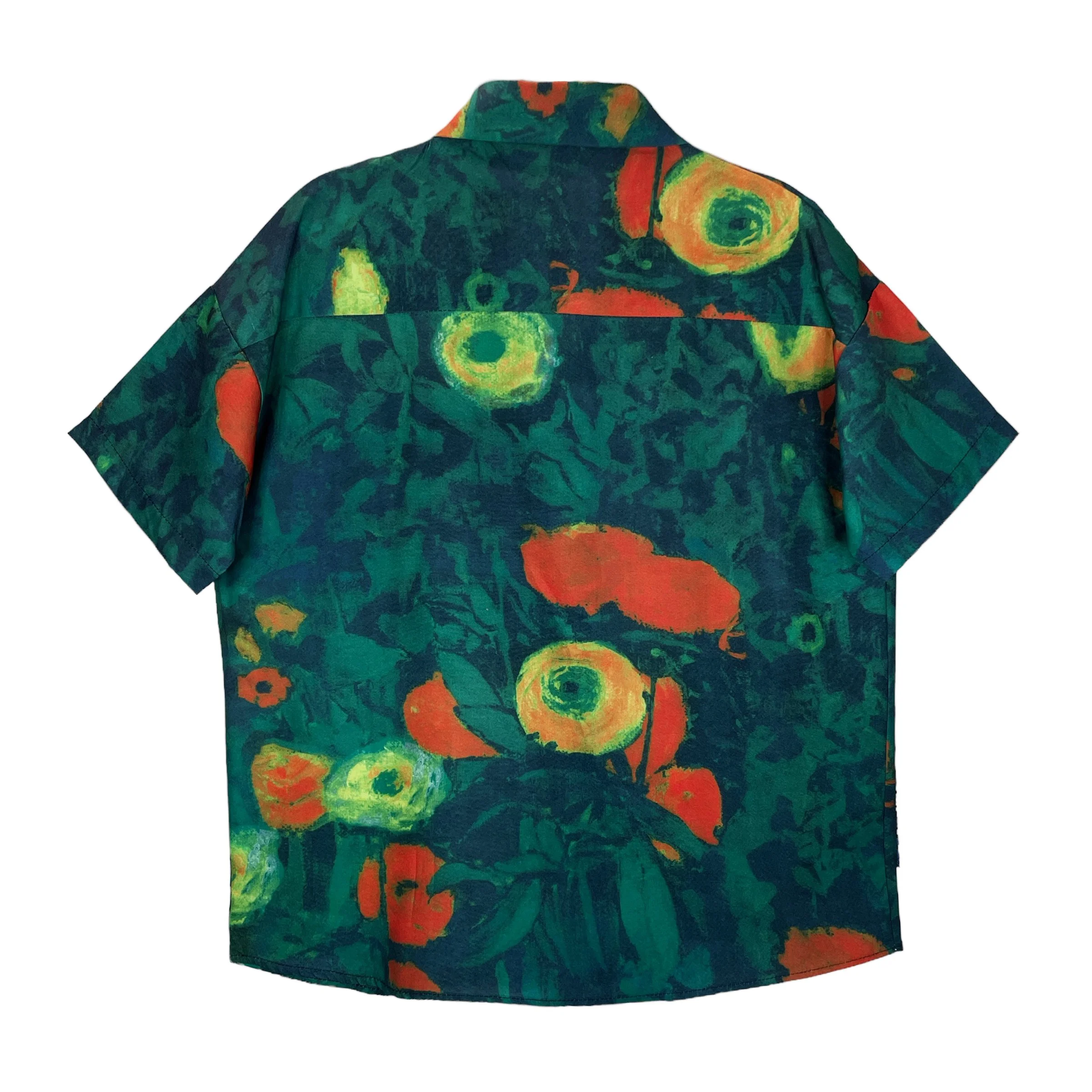 Green Oil Painting Flower Print Short Sleeves Shirt Summer