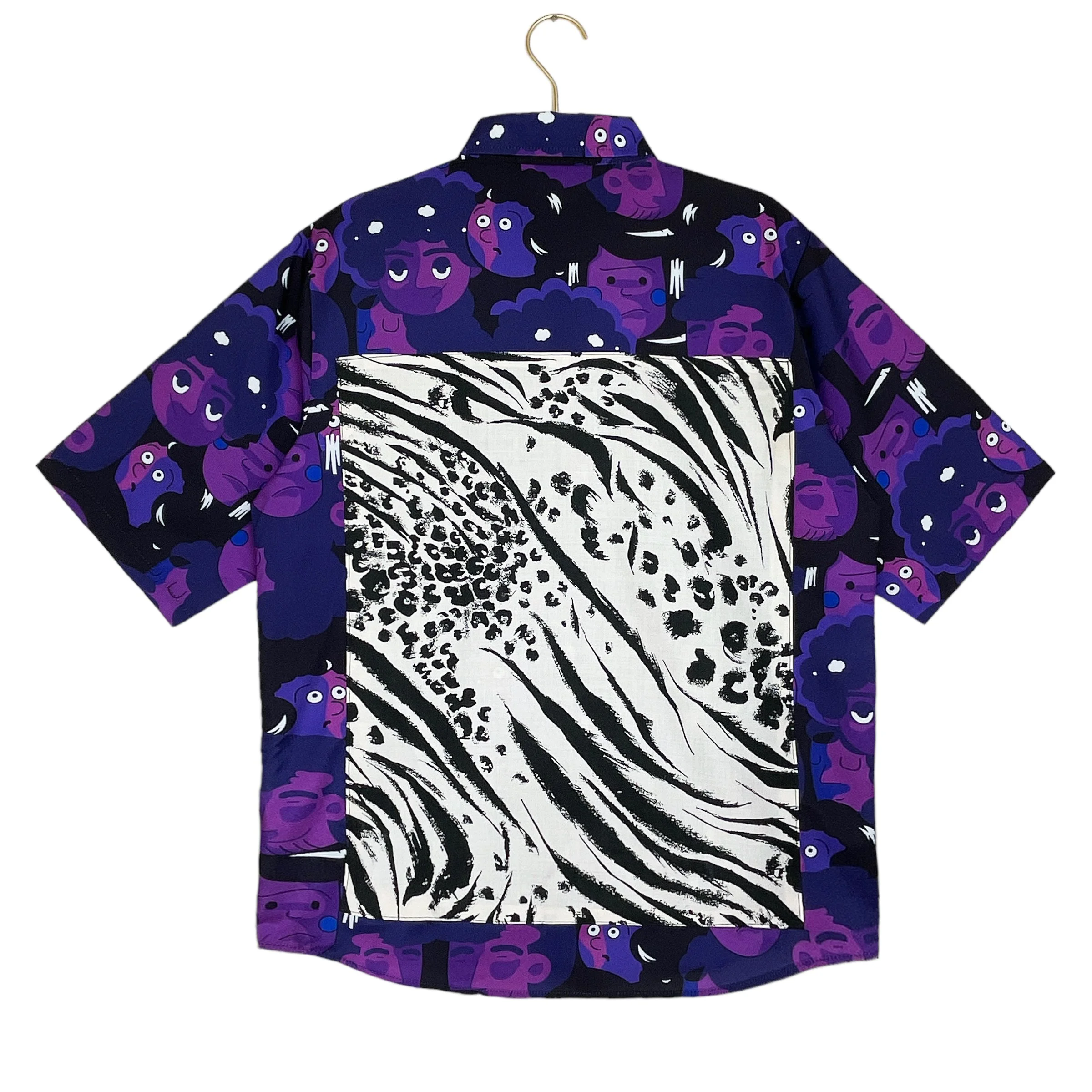 Purple Actors Print Short Sleeves Handmade Black Shirt