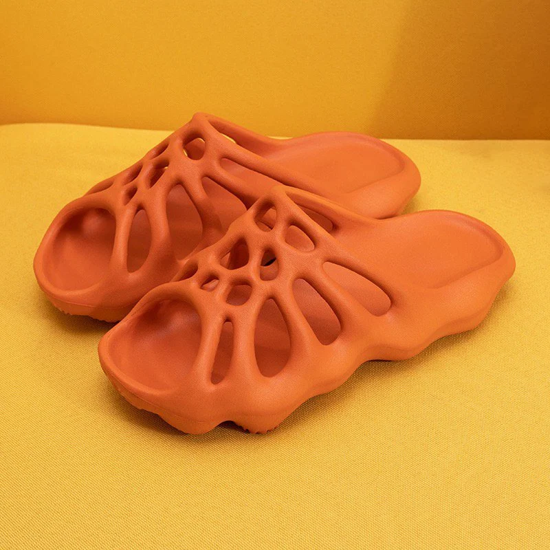 EVA stands for Ethylene-Vinyl Acetate, a plastic created to have rubber-like properties. However, it is softer and far more flexible than rubber. This allows for easy sole molding & construction but, more importantly, an extremely comfortable sole to walk in.