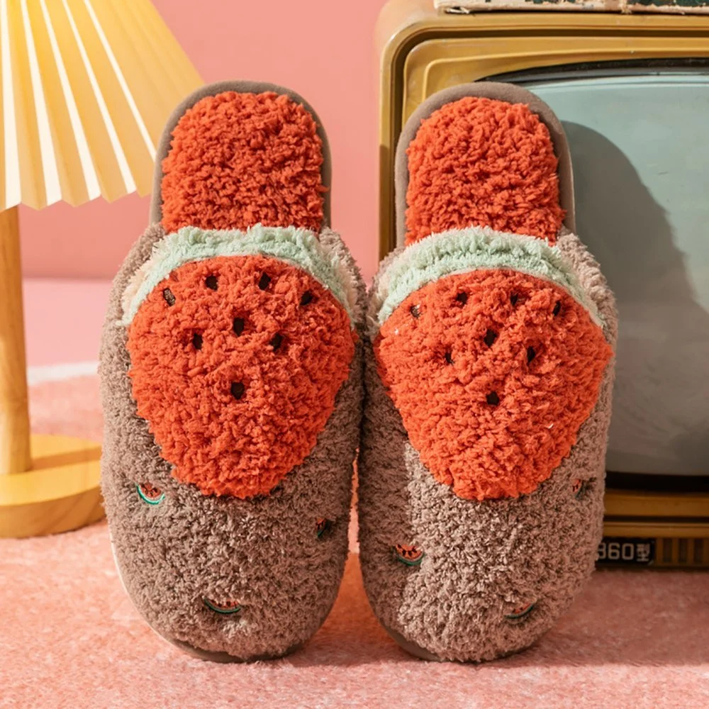 Fluffy Fruits Embroidery Non-slip Soft Platform Sandal